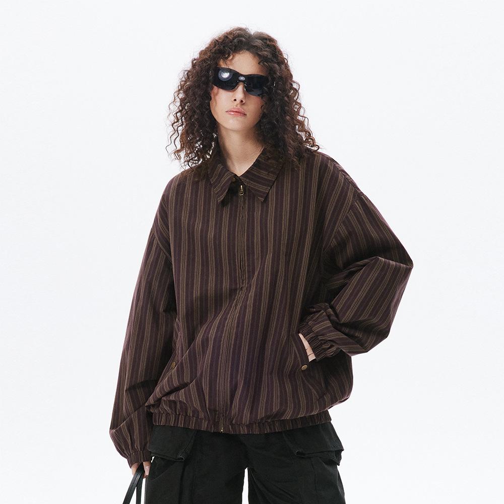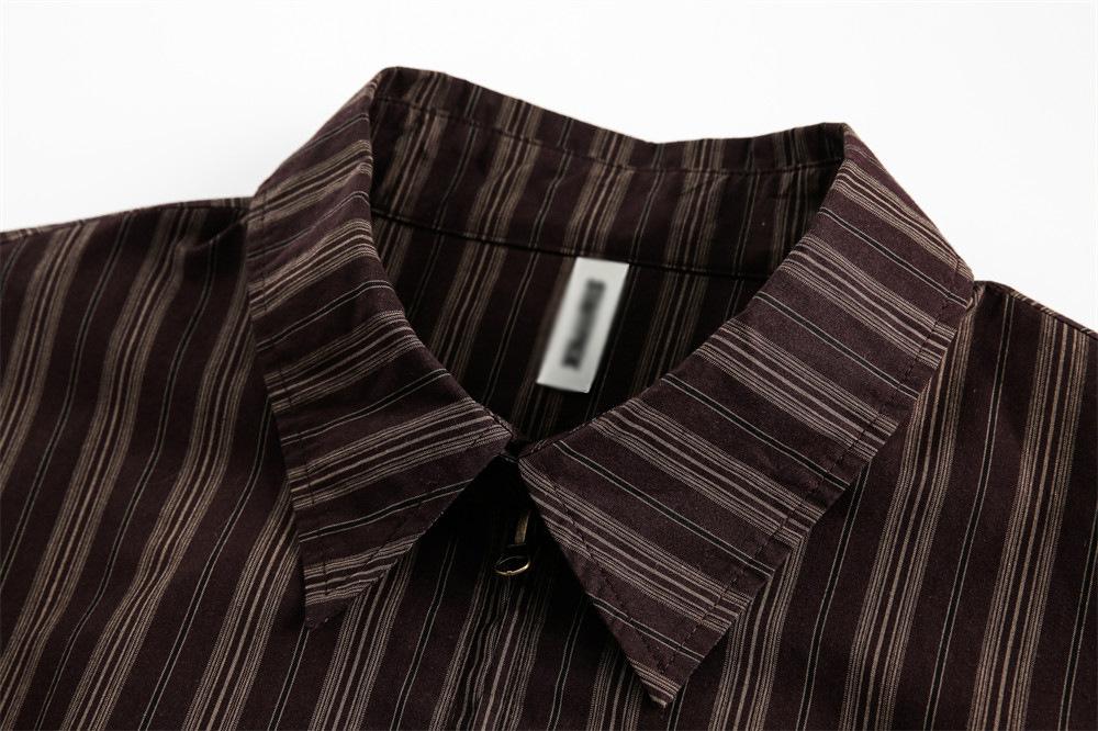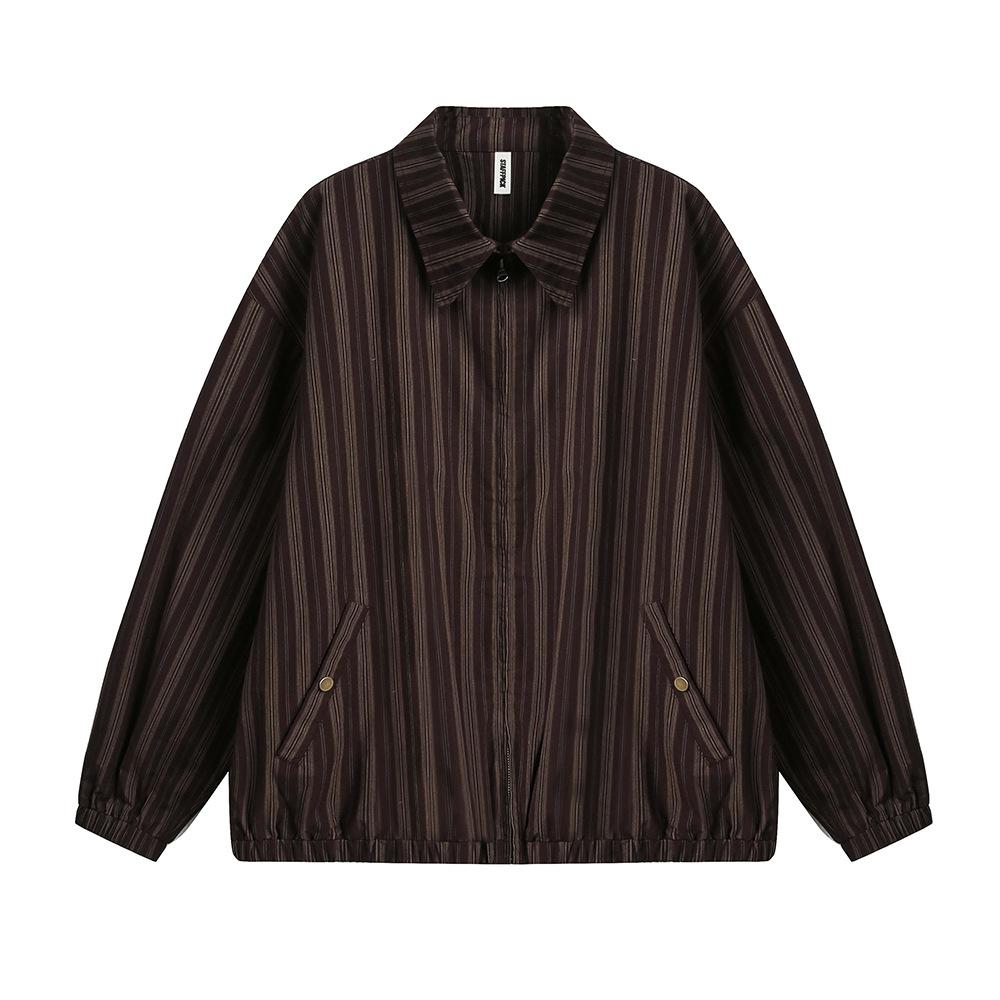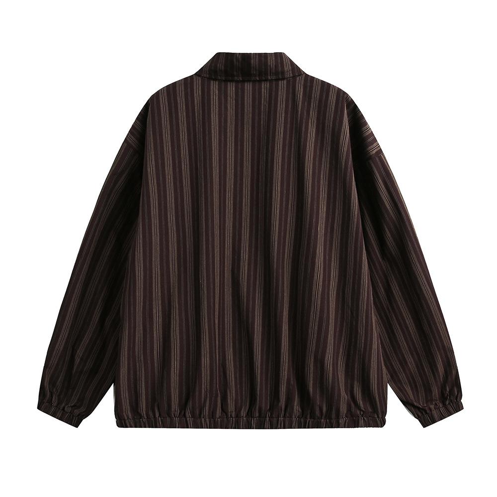 Chaqueta de Trabajo Holgada de Rayas Verticales Retro Estilo Americano para Hombre y Mujer con Solapa y Cremallera de Marca de Moda para Uso Casual de Primavera y Otoño