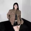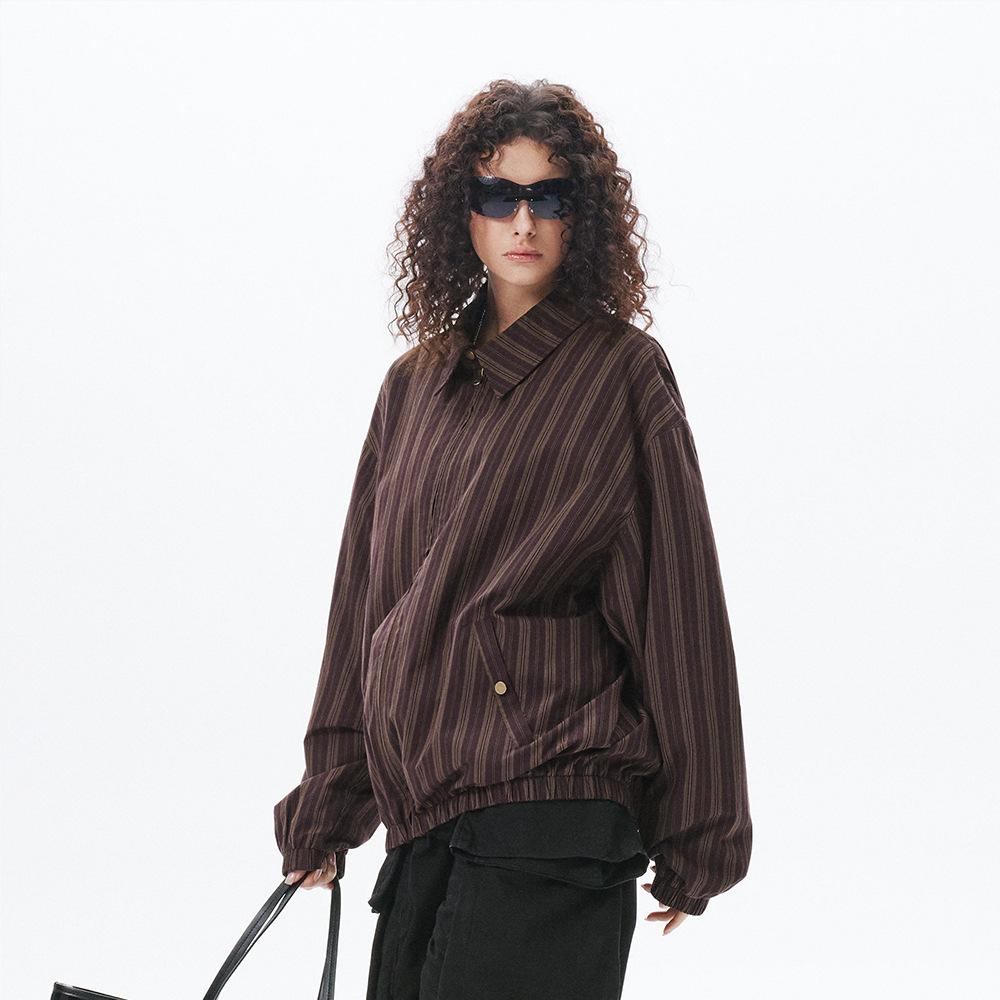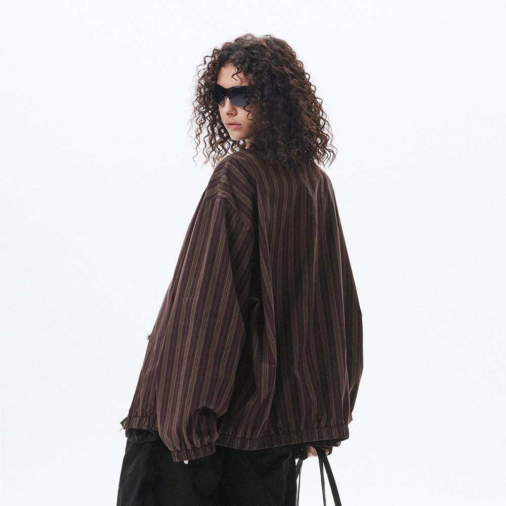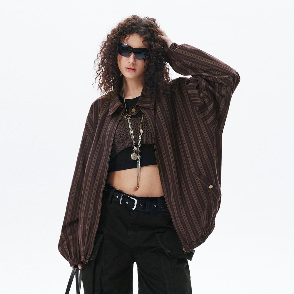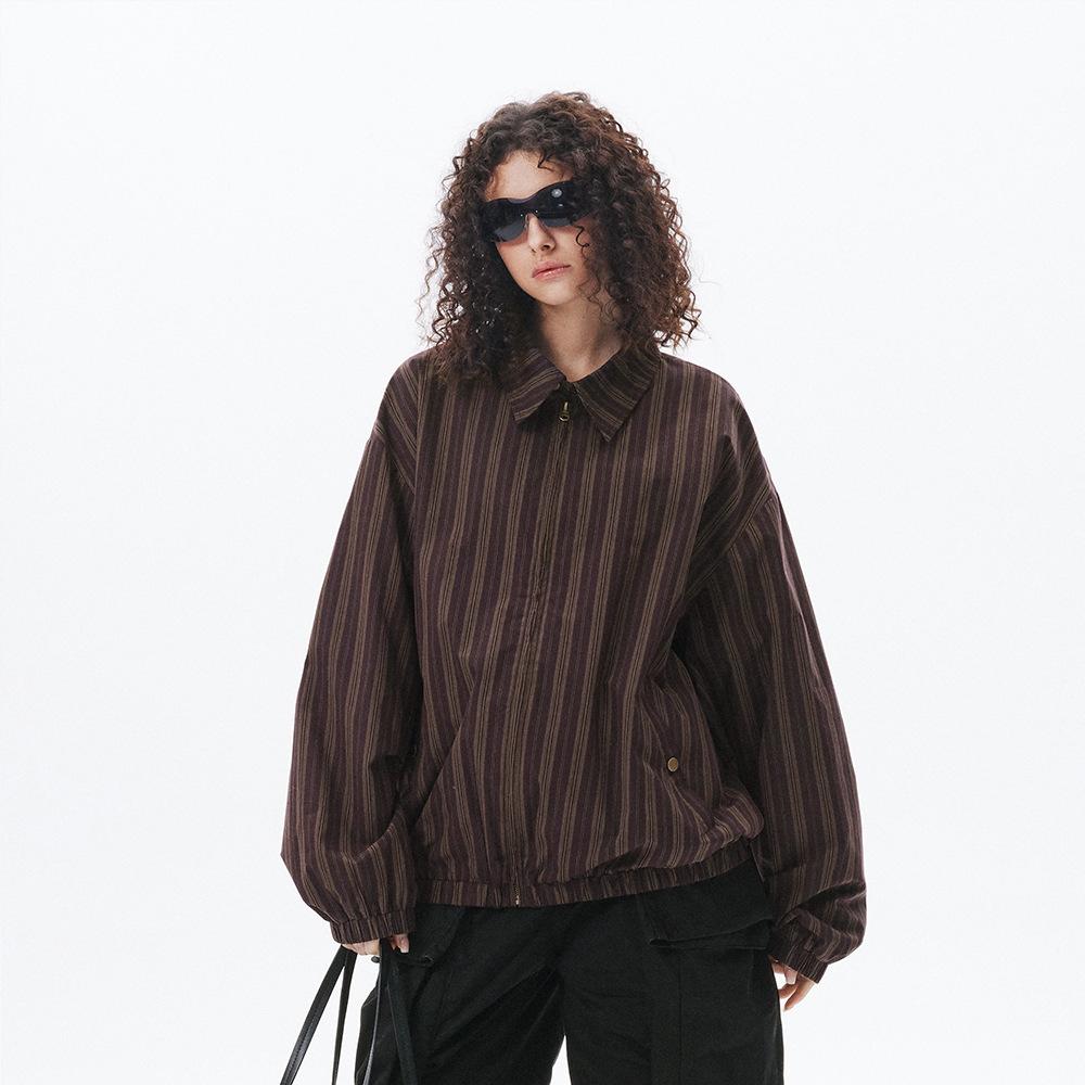 Chaqueta de Trabajo Holgada de Rayas Verticales Retro Estilo Americano para Hombre y Mujer con Solapa y Cremallera de Marca de Moda para Uso Casual de Primavera y Otoño