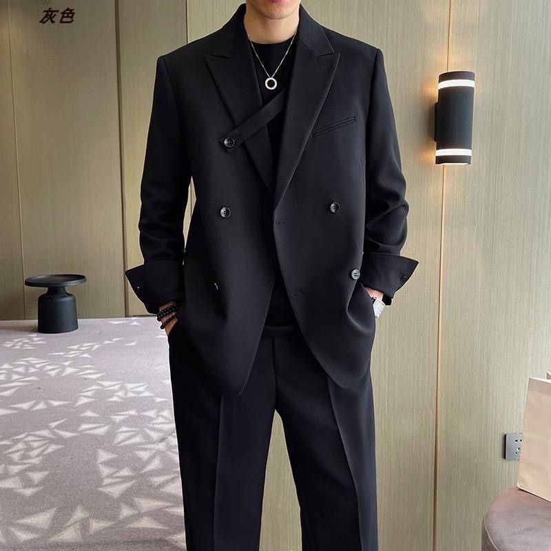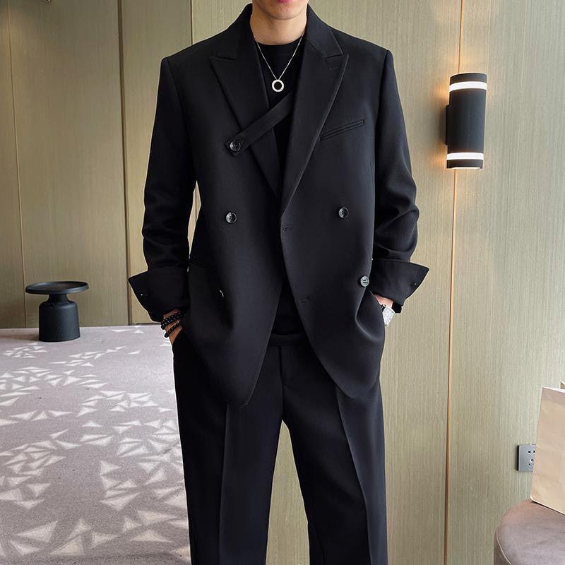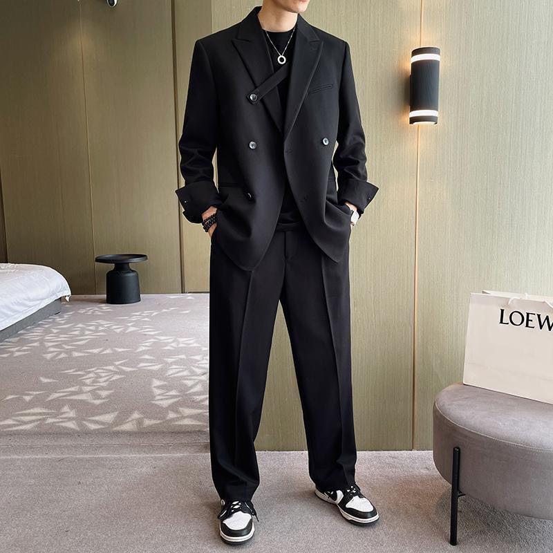 Conjunto de traje, diseño ligero y holgado, traje casual coreano de doble botonadura, chaqueta elegante de alta gama
