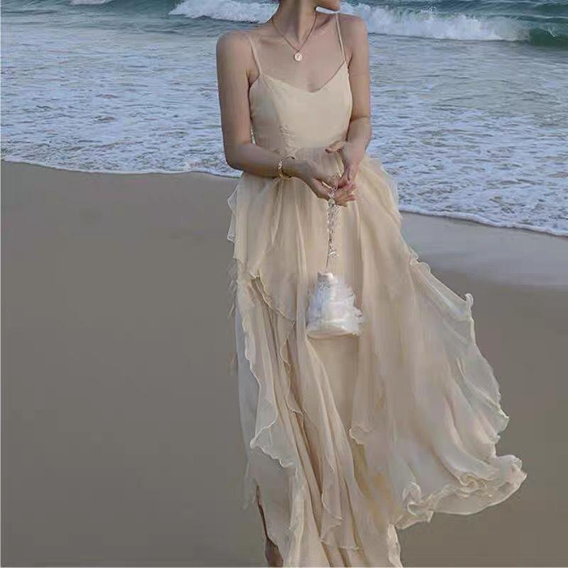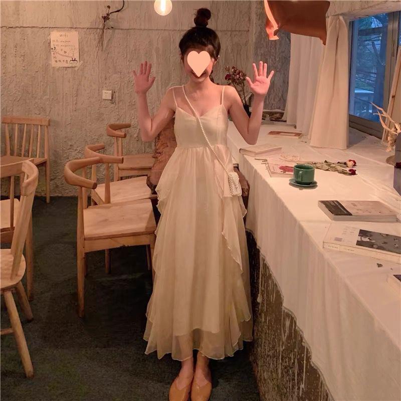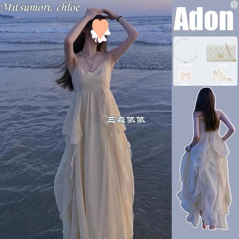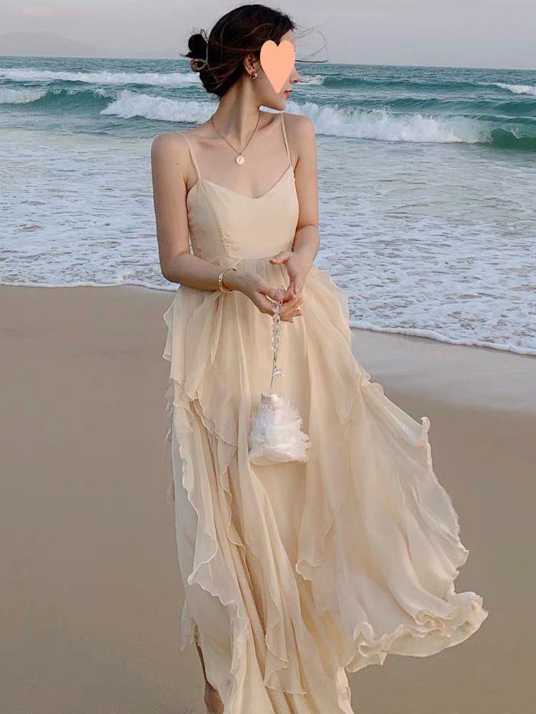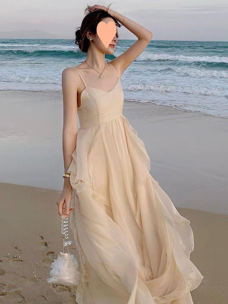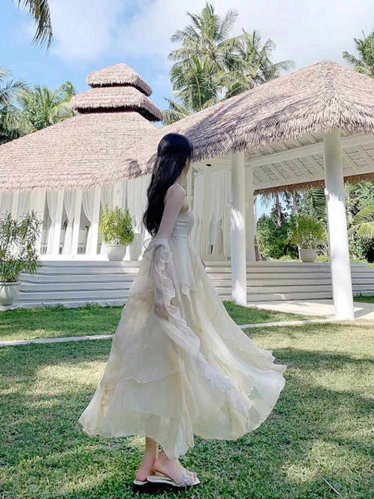Vestido de Hada Vestido de Tirantes Vestido de Vacaciones en la Playa de Verano Vestido Largo Nuevo Blanco Sanya