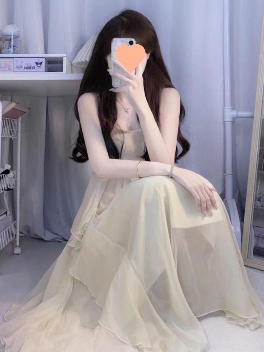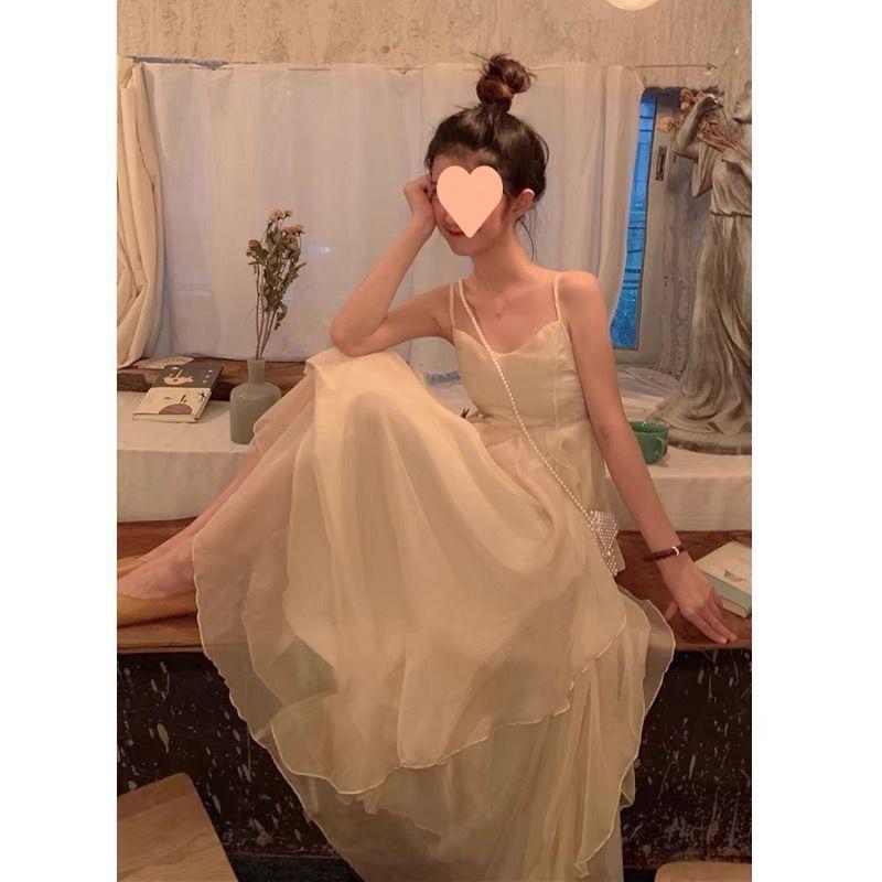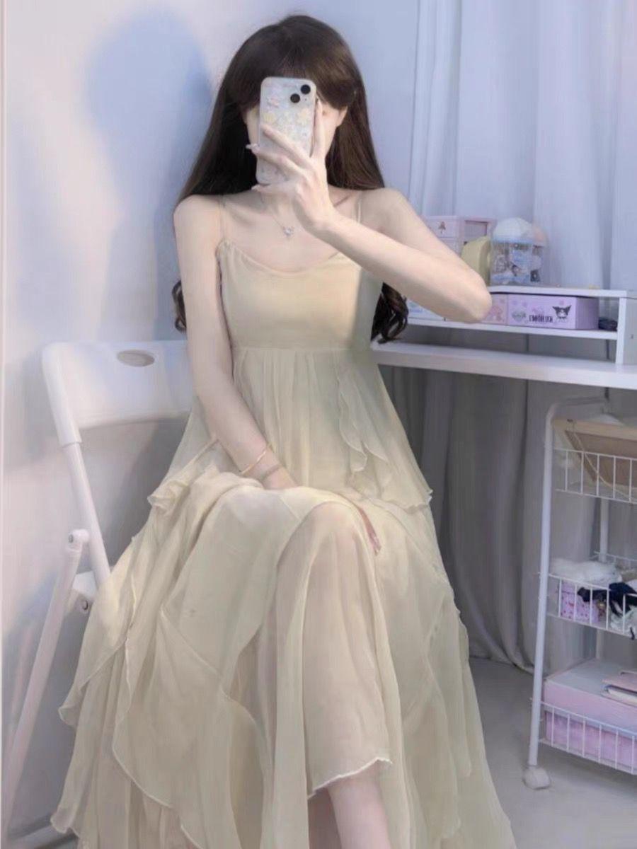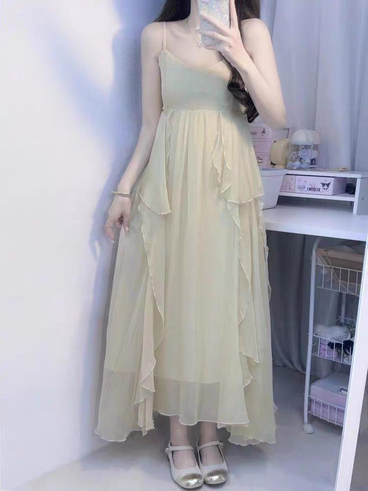 Vestido de Hada Vestido de Tirantes Vestido de Vacaciones en la Playa de Verano Vestido Largo Nuevo Blanco Sanya