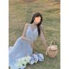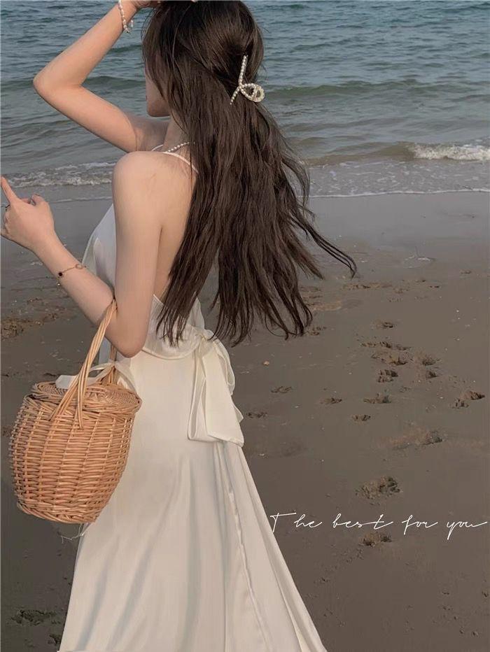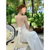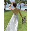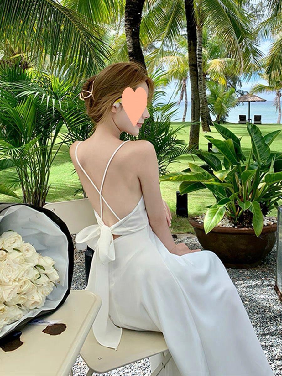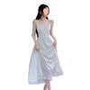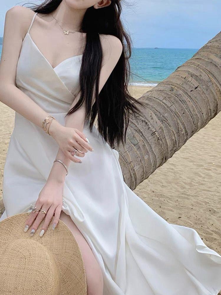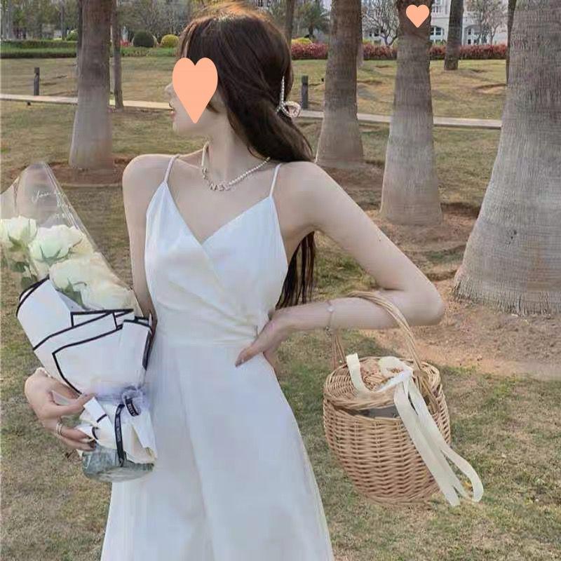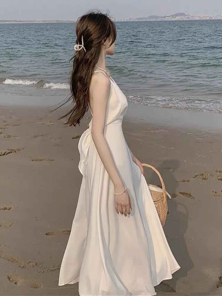 Verano 2025 Nuevo Vestido Blanco de Mujer de Largo Medio con Falda de Lazo y Cuello en V [Doble Capa con Forro]