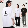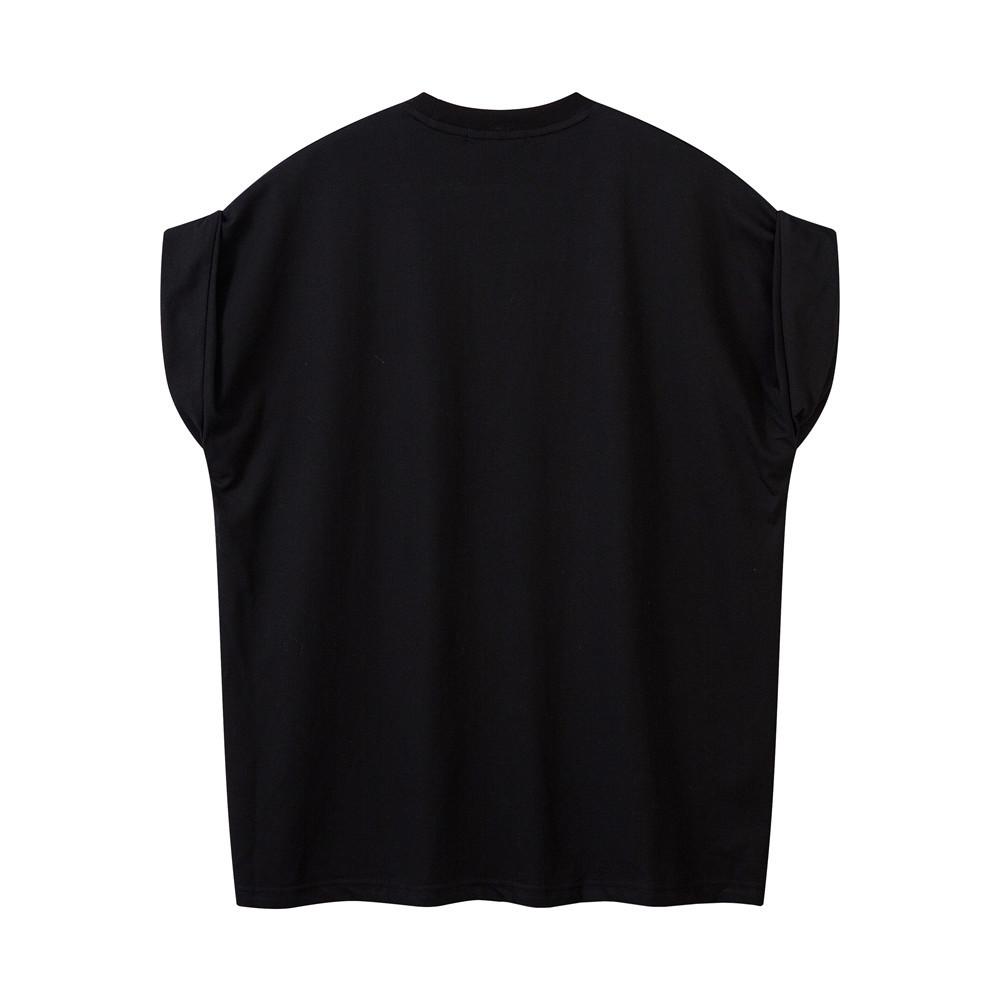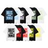 Camiseta de manga corta con puños plegables y estampado de letras para hombre, estilo informal, transpirable, holgada, de marca moderna, estilo hip-hop, con cuello redondo.