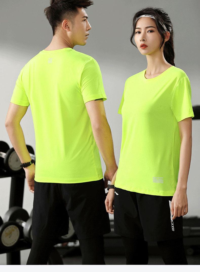 Camiseta deportiva de cuello redondo de secado rápido con estampado de logotipo fijo, de seda de hielo, de manga corta, para trabajo, para campañas publicitarias, fina y transpirable.