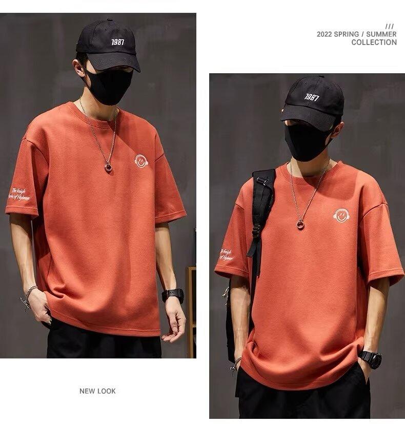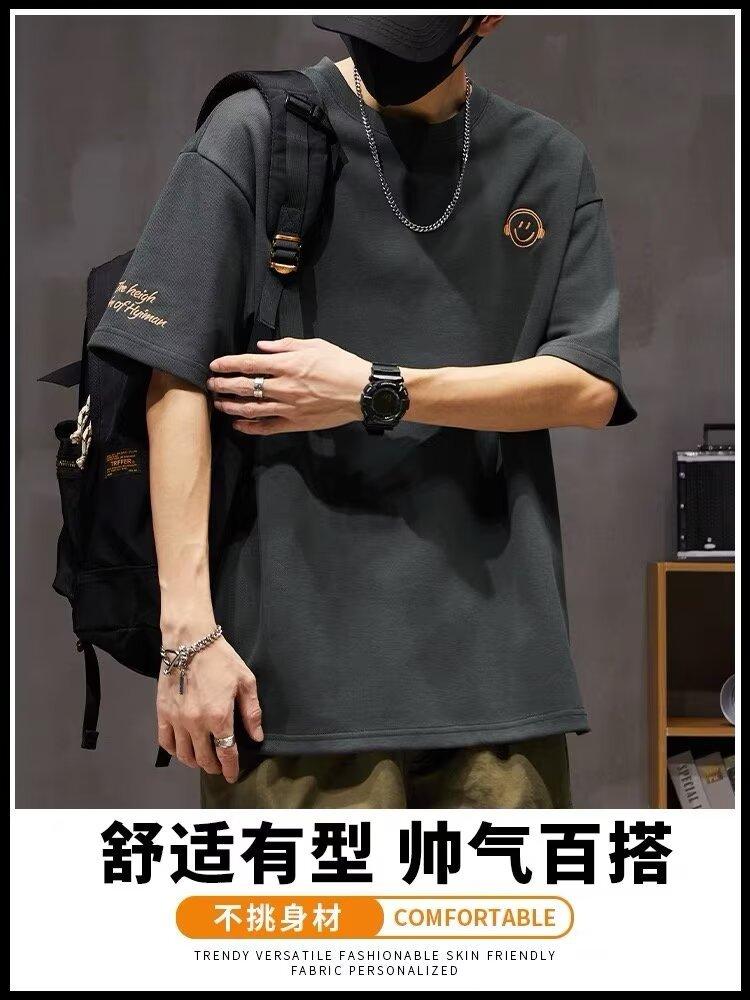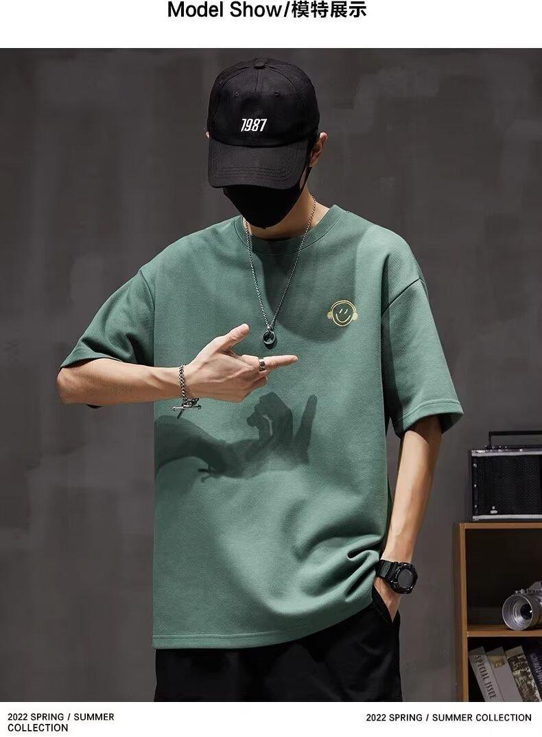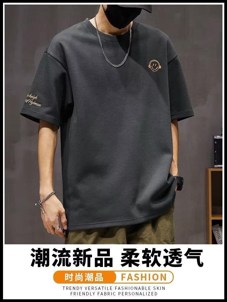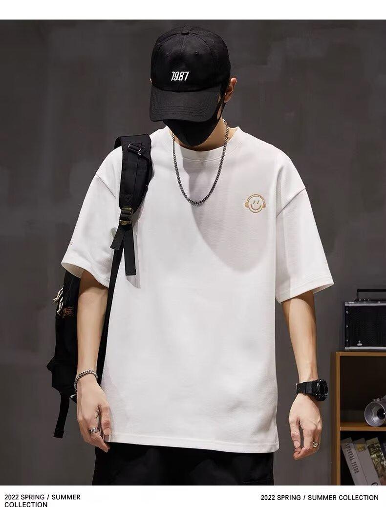 Camiseta de manga corta de verano para hombre, novedad de 2025, holgada, de talla grande, con estampado de caritas sonrientes, top de moda, camiseta adelgazante que combina con todo.
