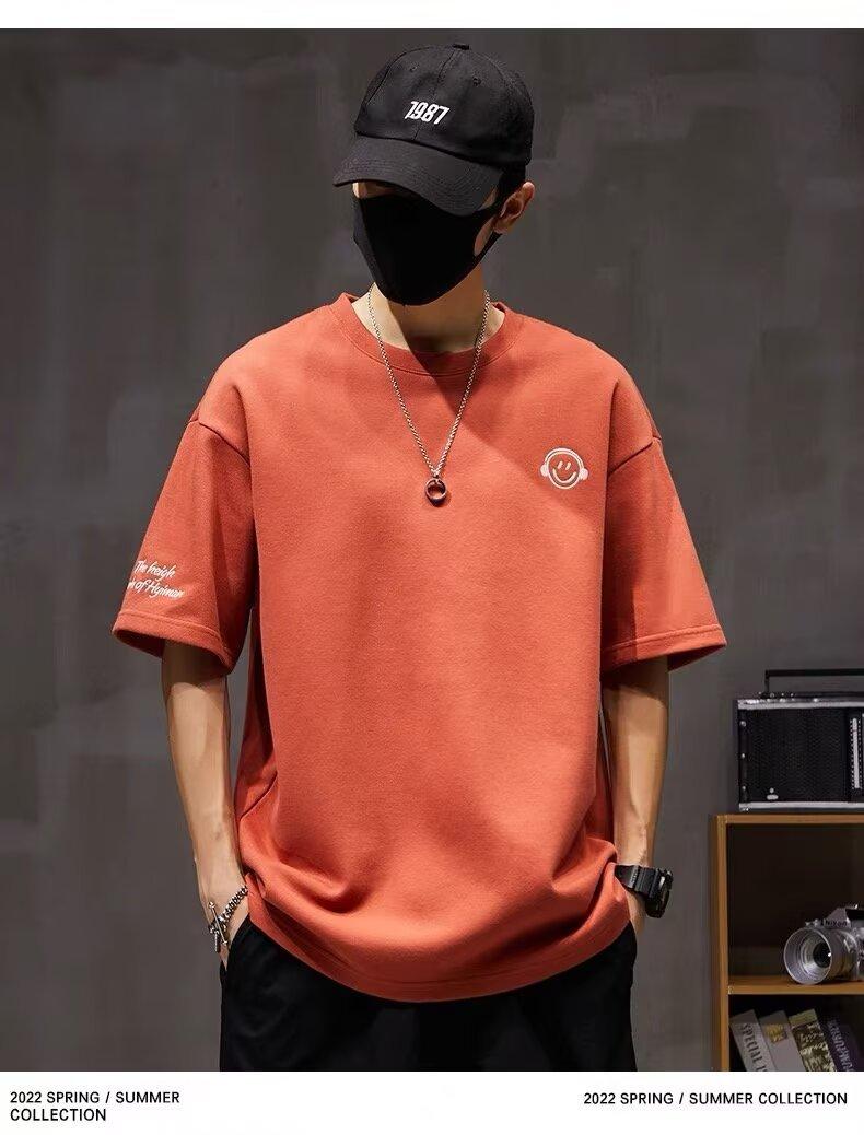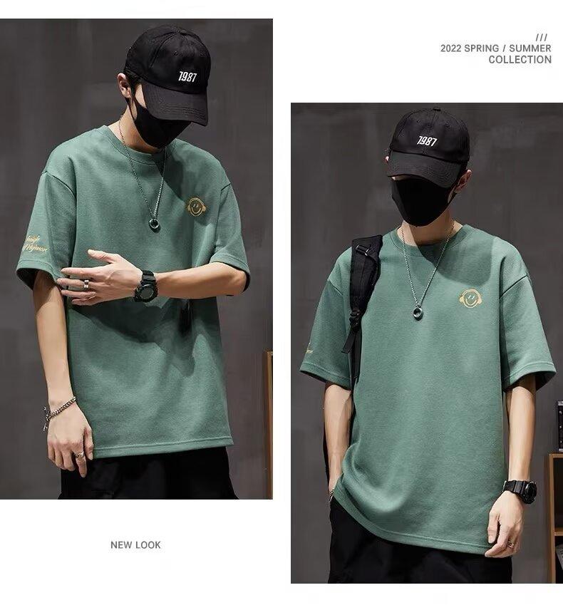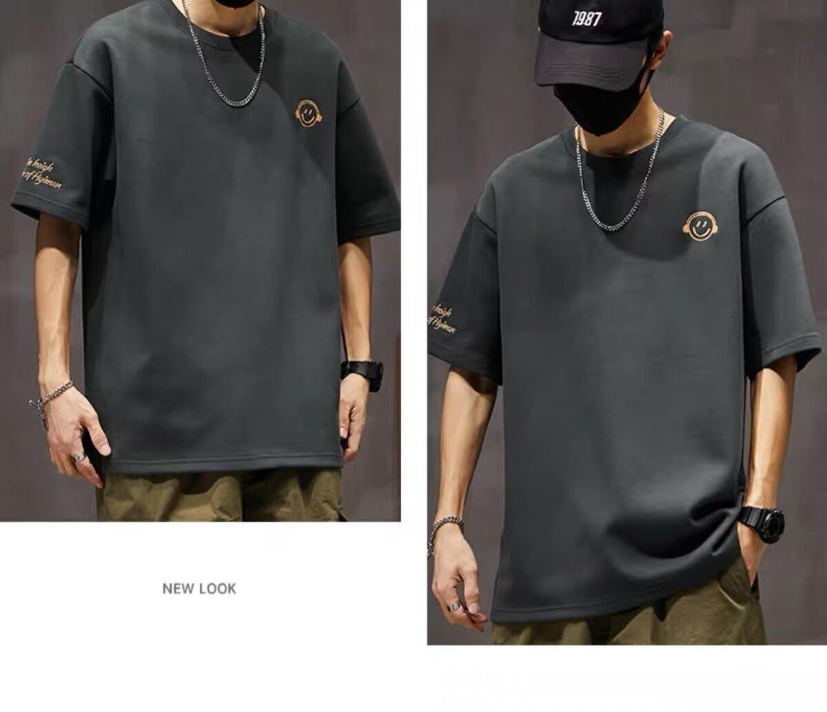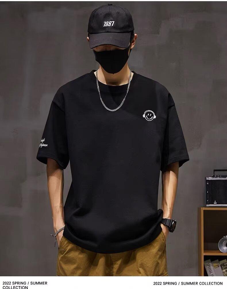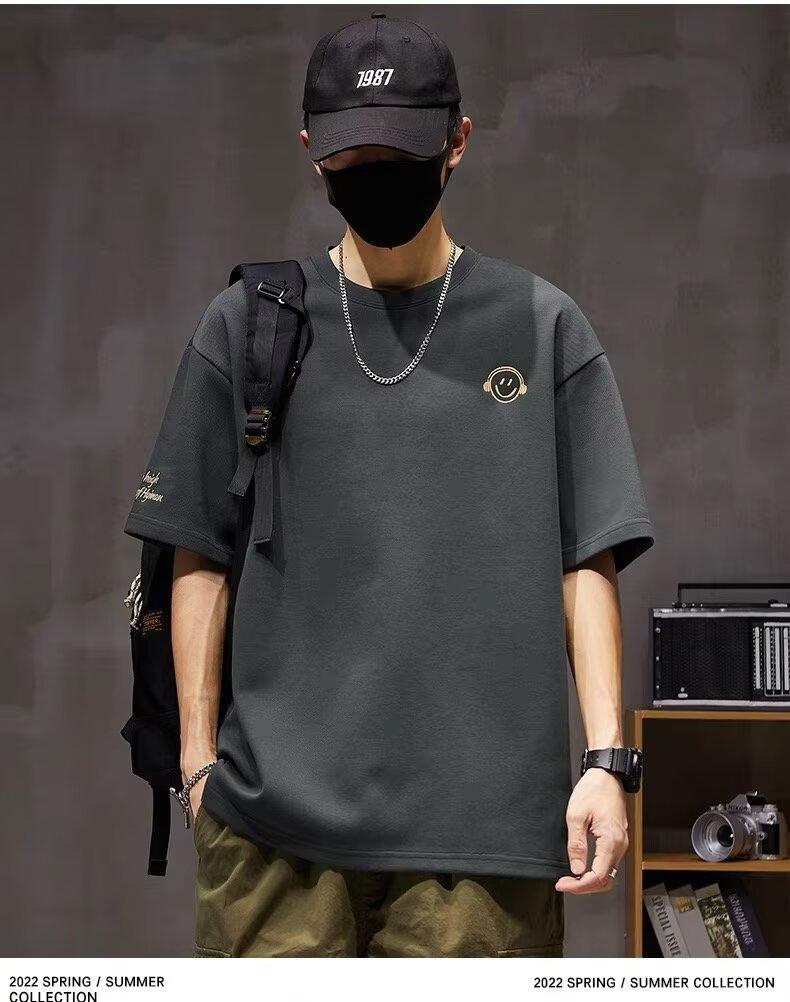 Camiseta de manga corta de verano para hombre, novedad de 2025, holgada, de talla grande, con estampado de caritas sonrientes, top de moda, camiseta adelgazante que combina con todo.
