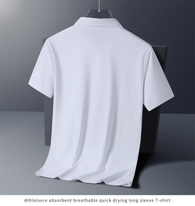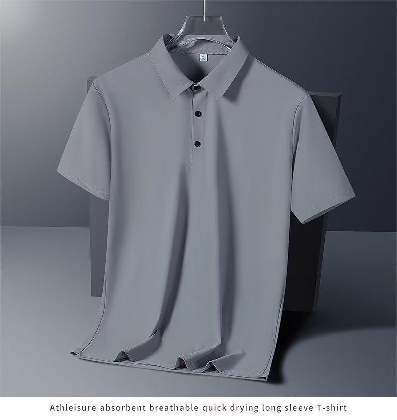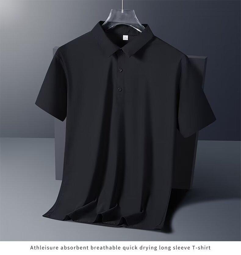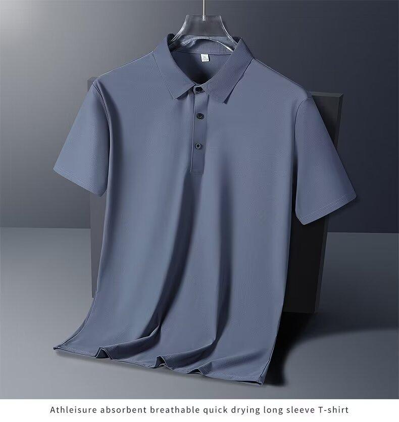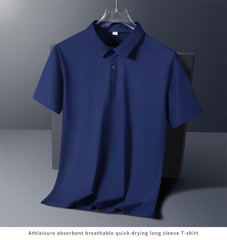 Polo de manga corta sin costuras de seda de hielo para hombre, camiseta de solapa de alta gama de verano 2024, top informal de negocios de secado rápido