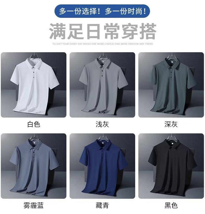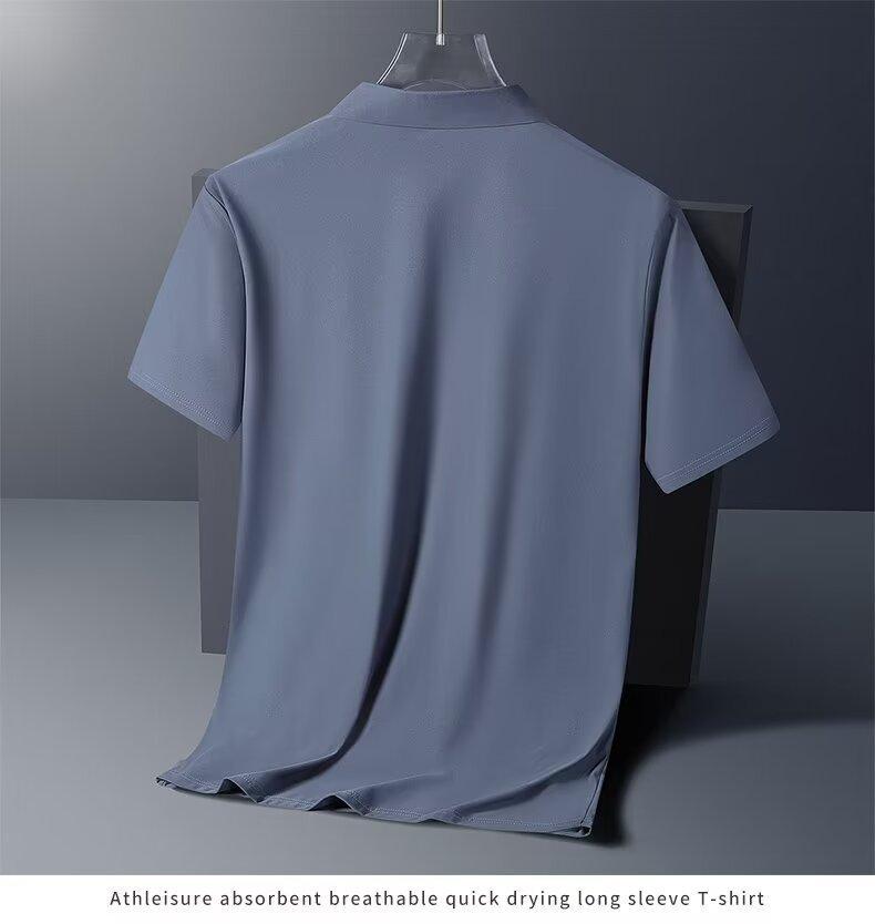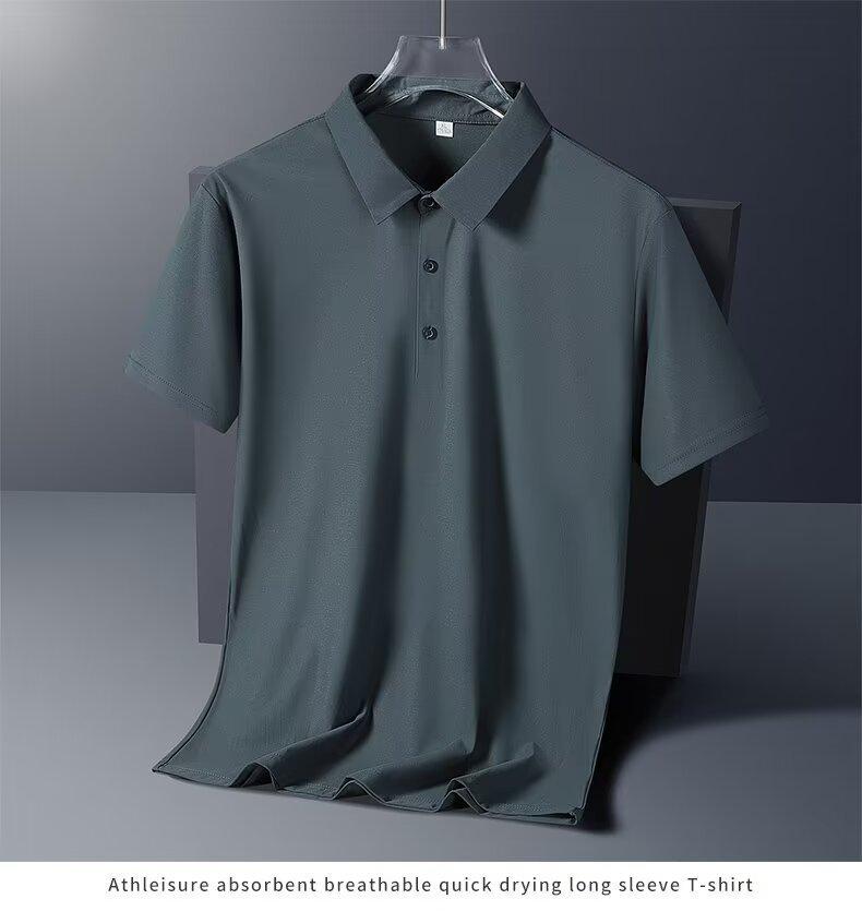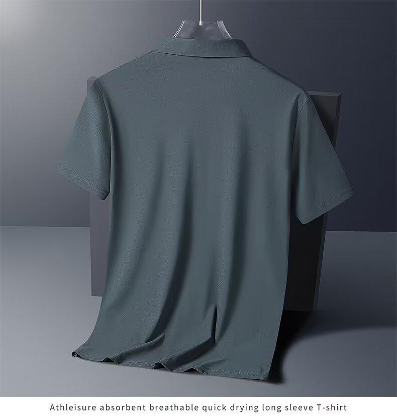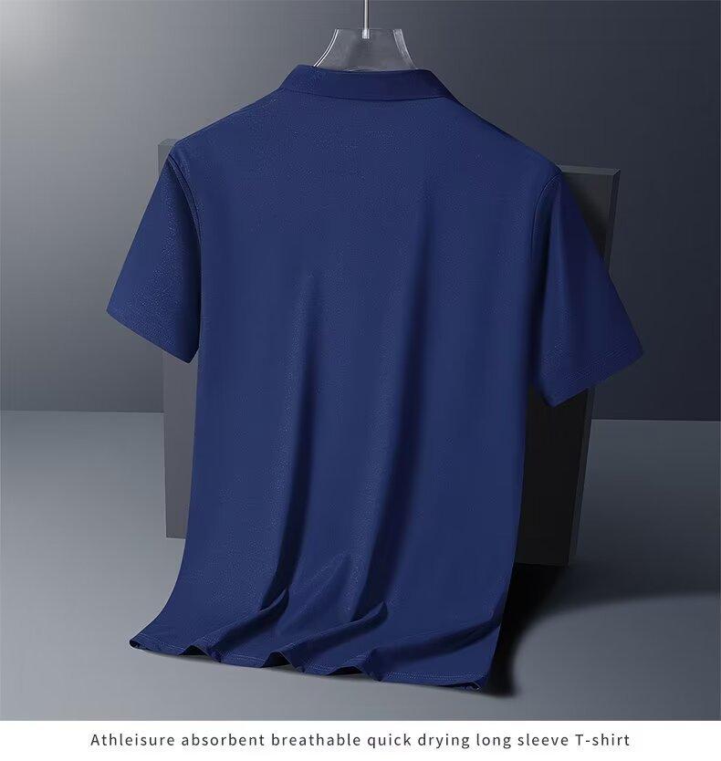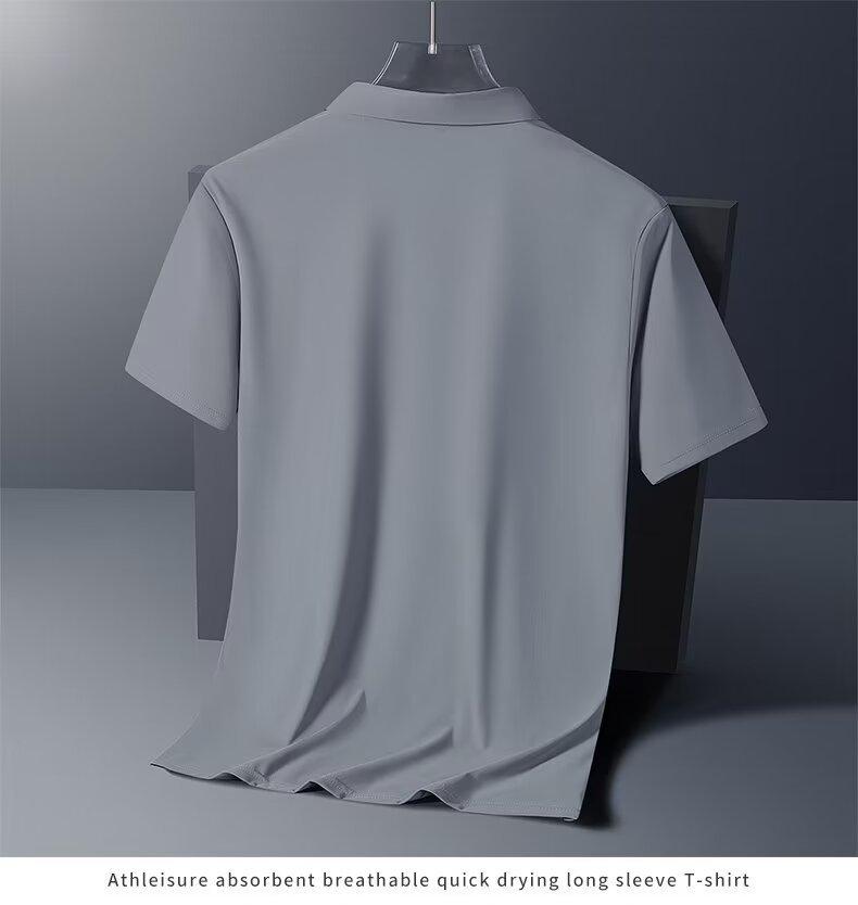 Polo de manga corta sin costuras de seda de hielo para hombre, camiseta de solapa de alta gama de verano 2024, top informal de negocios de secado rápido