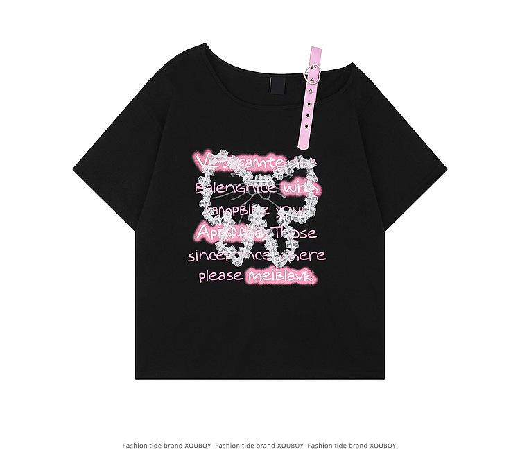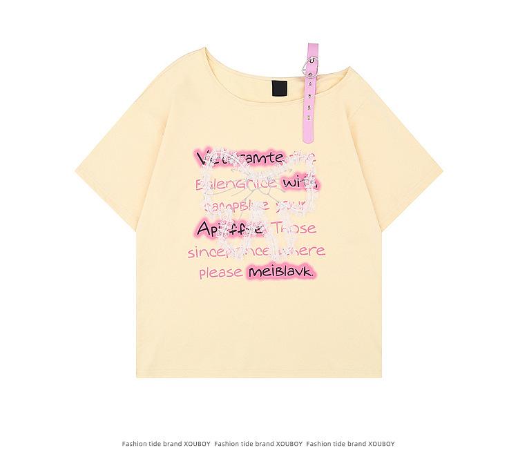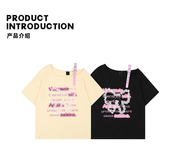 Ropa Camiseta de Manga Corta Retro de Estilo Americano para Hombre Diseño de Verano Nicho Suelto Dulce Chica Picante Top