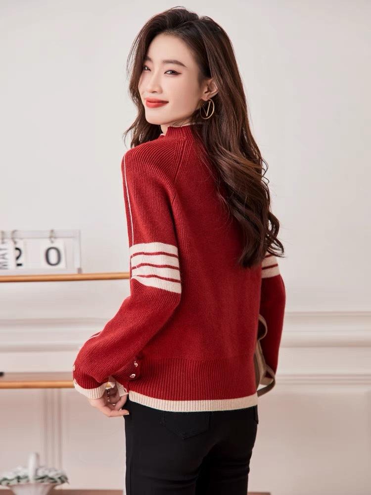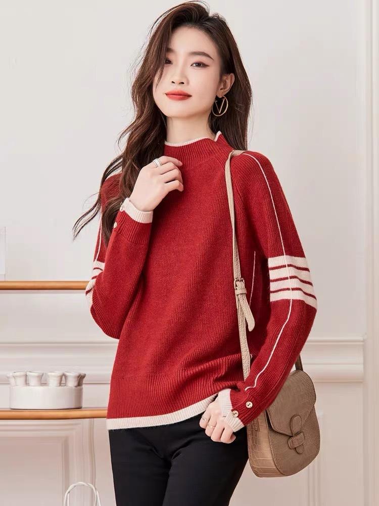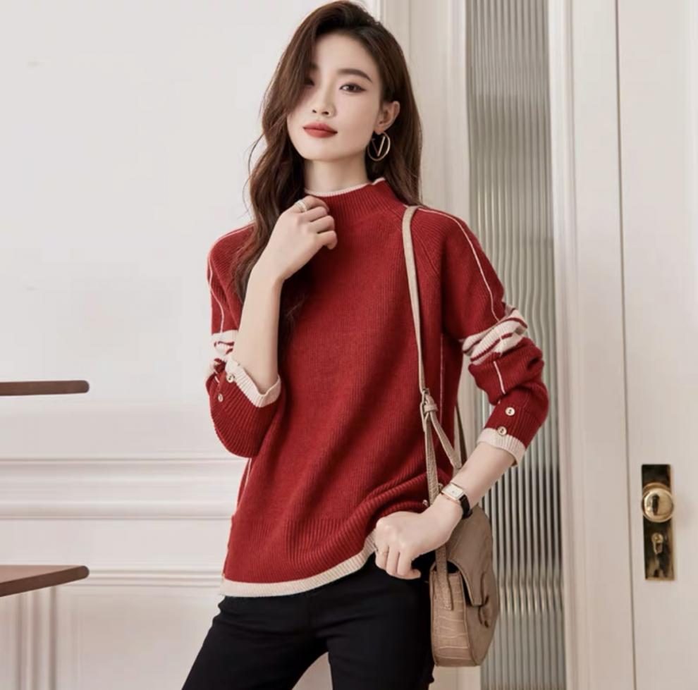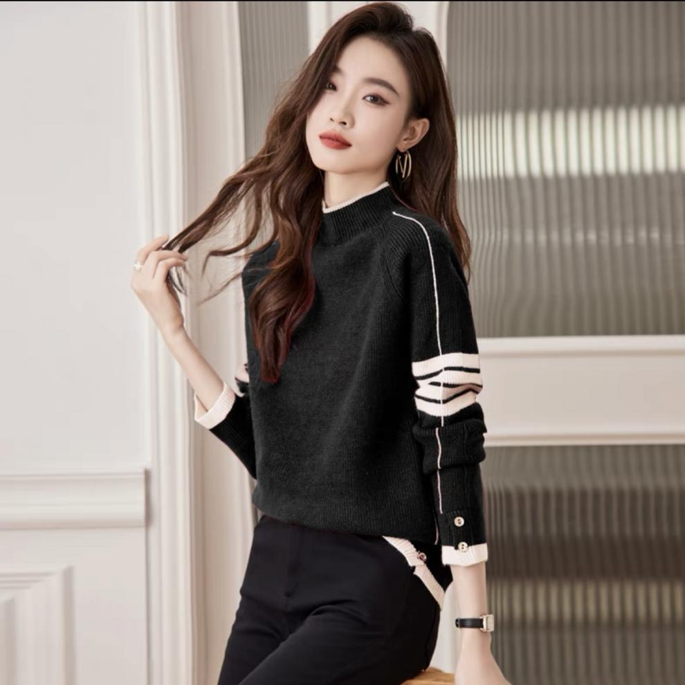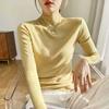 Tejido de Punto de Cuello Medio Tortuga para Mujer Primavera Temprana Otoño e Invierno 2024 Nuevo Estilo Tejido de Punto Popular de Este Año Top Camiseta Base Holgada Ropa Interior