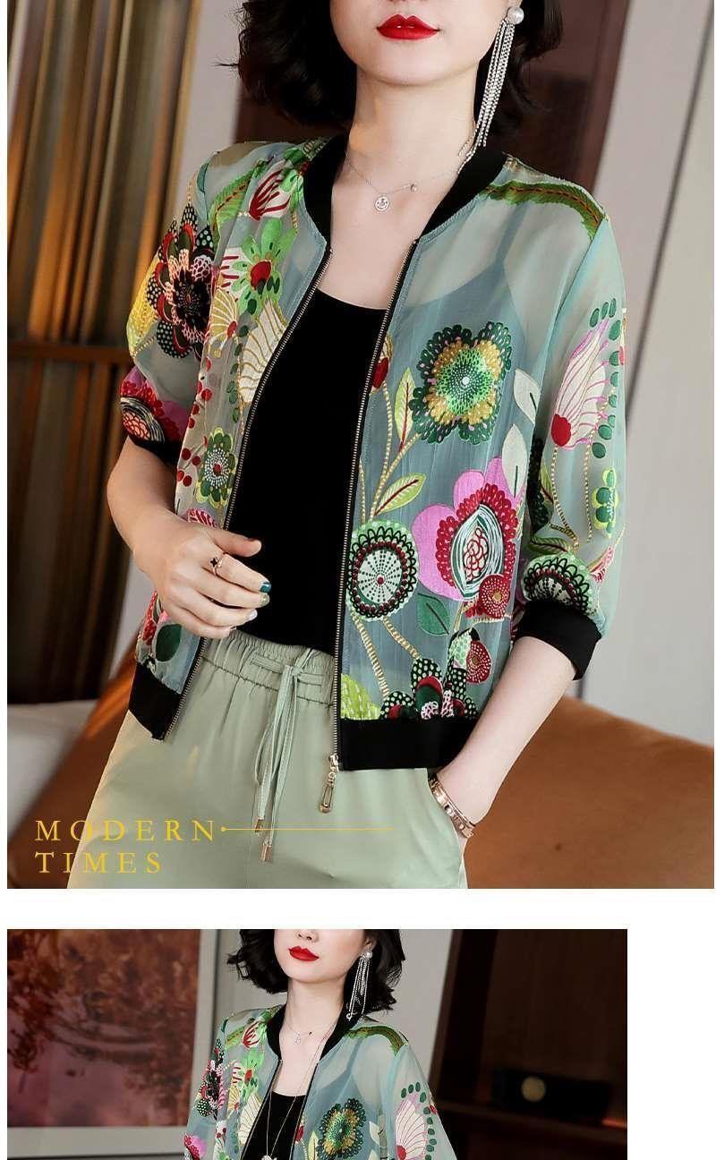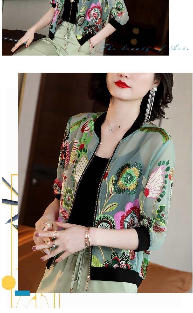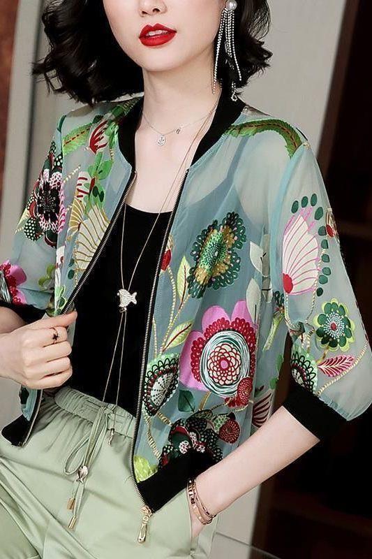 Traje de béisbol con estampado de gasa, abrigo corto para mujer, novedad de verano 2025, chaqueta informal holgada de talla grande, protección solar