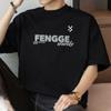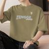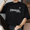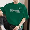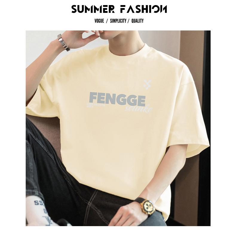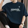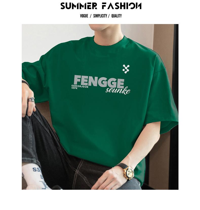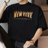 Camiseta americana de algodón de manga corta con cuello redondo y estampado de marca de moda para hombre, 260 g, de algodón pesado, de media manga.