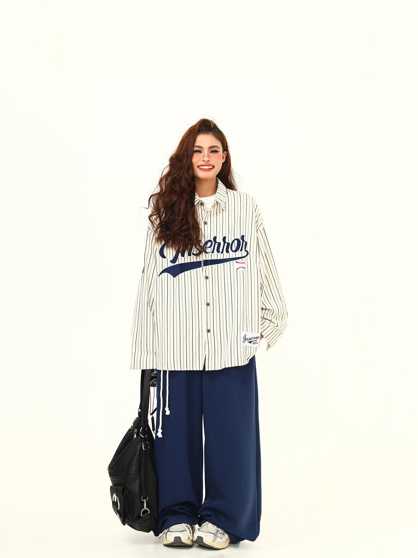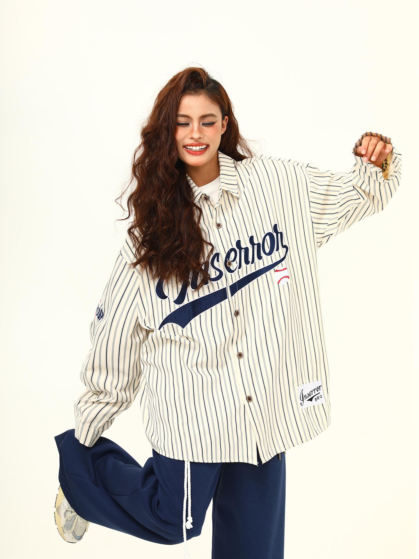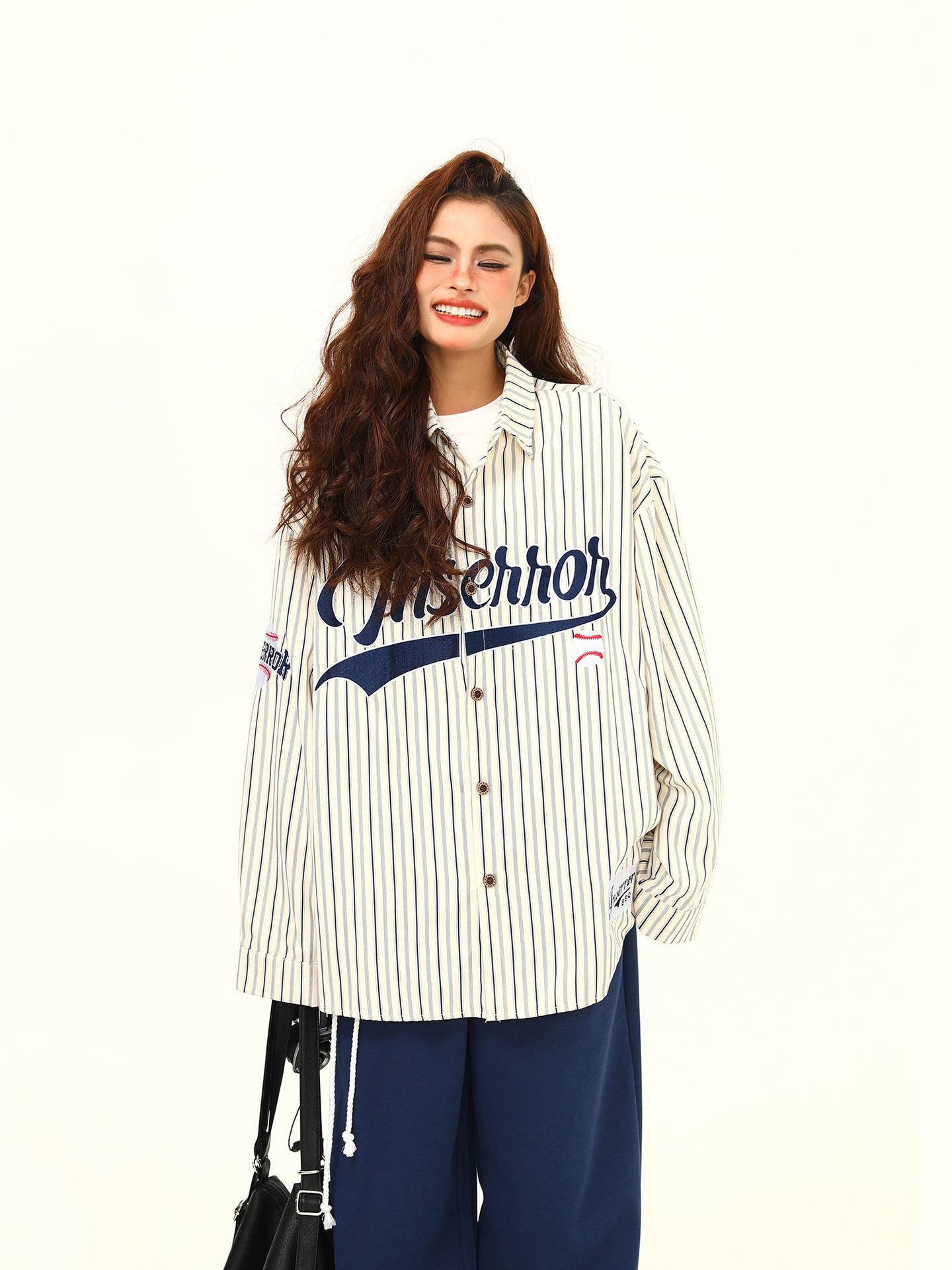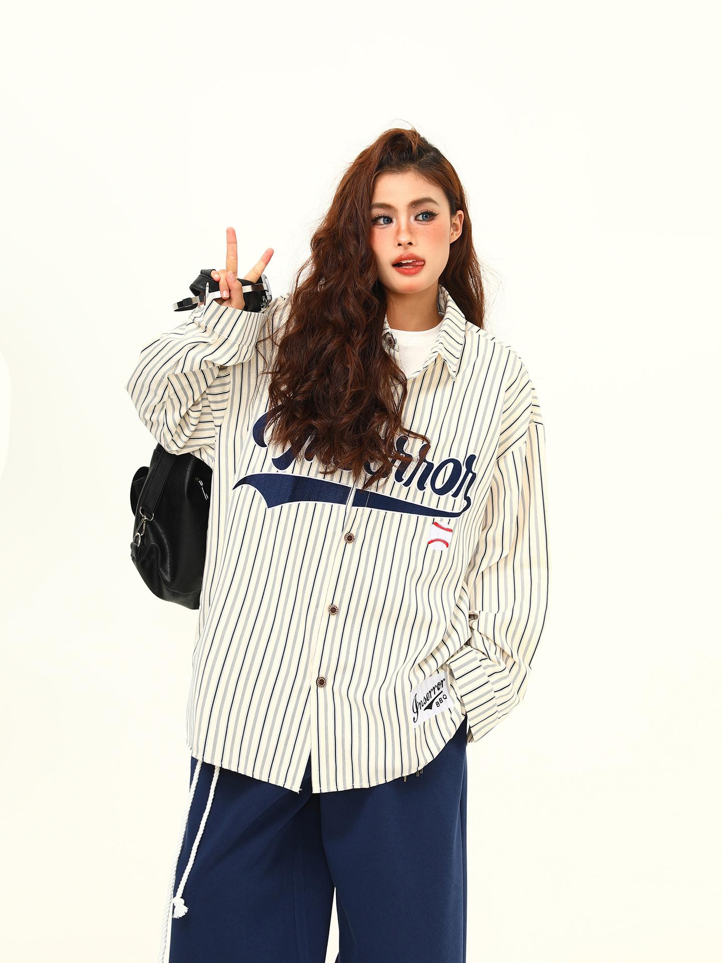 Camisa de manga larga con rayas verticales estilo retro americano para hombre y mujer, primavera y otoño, holgada y combinable, para parejas.
