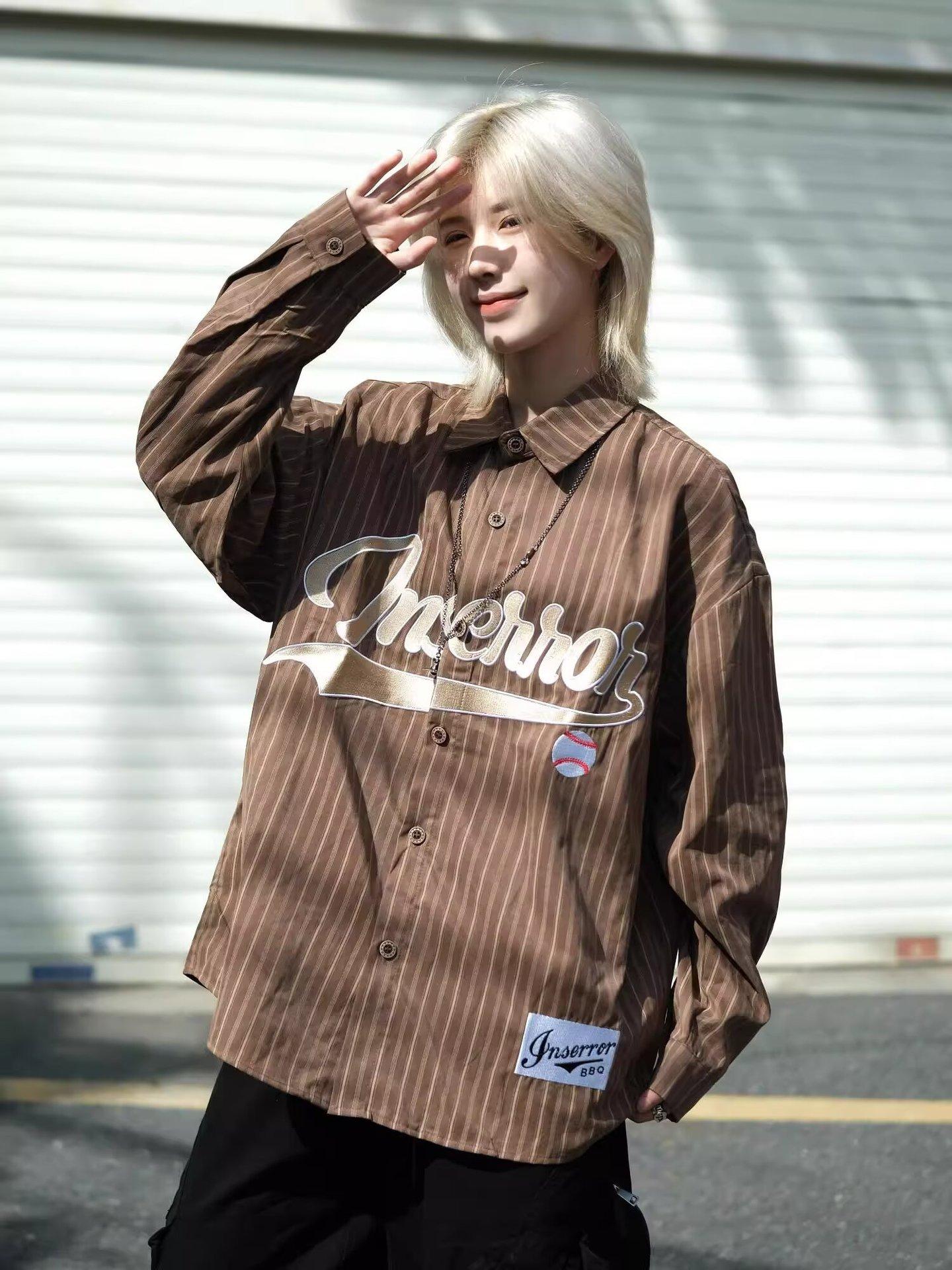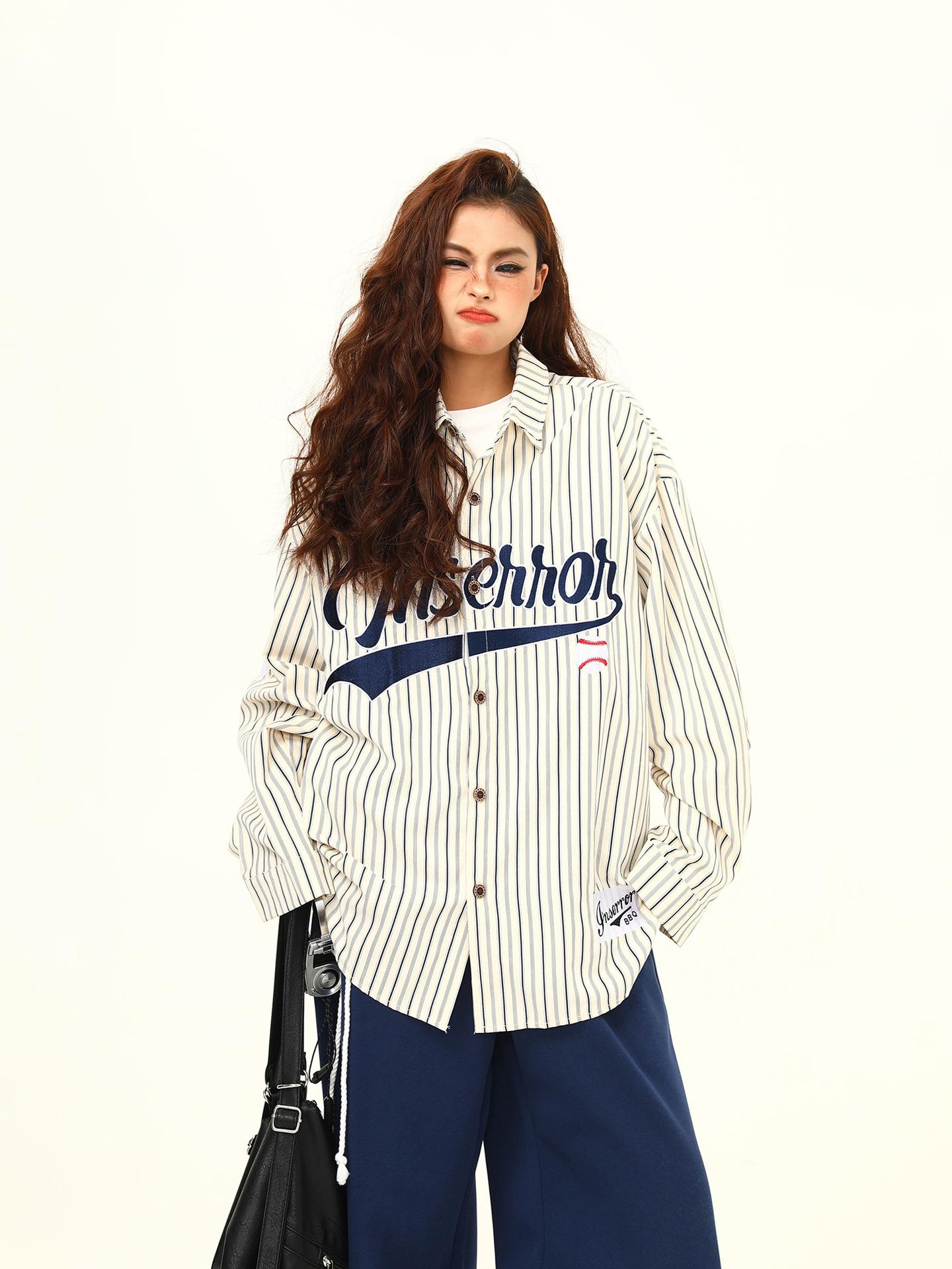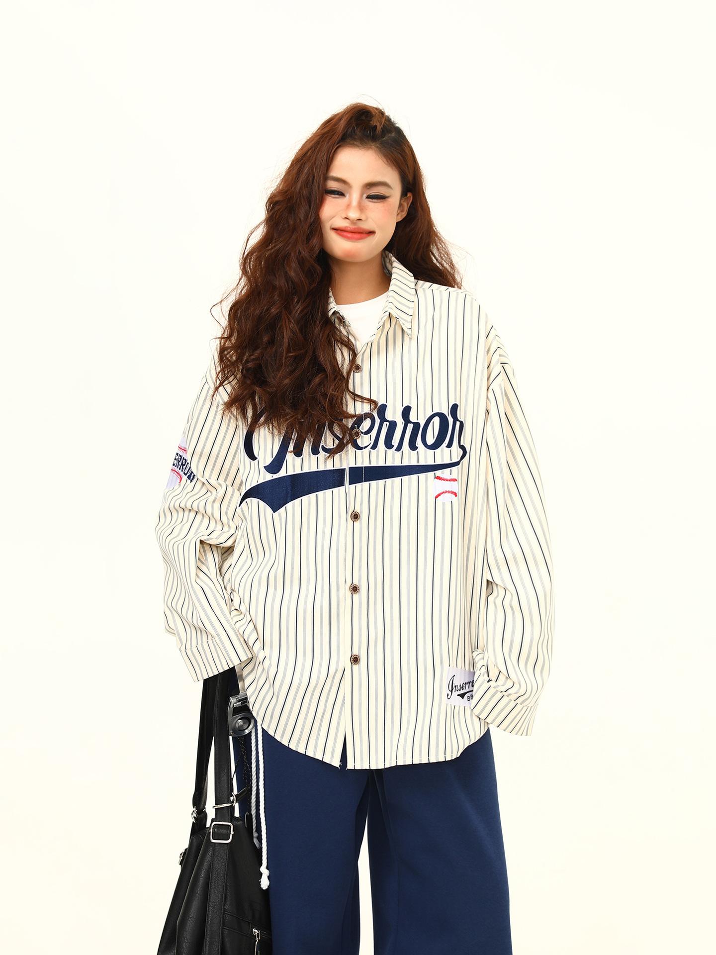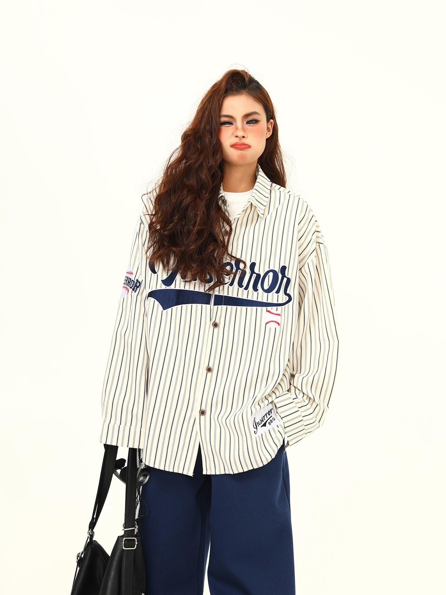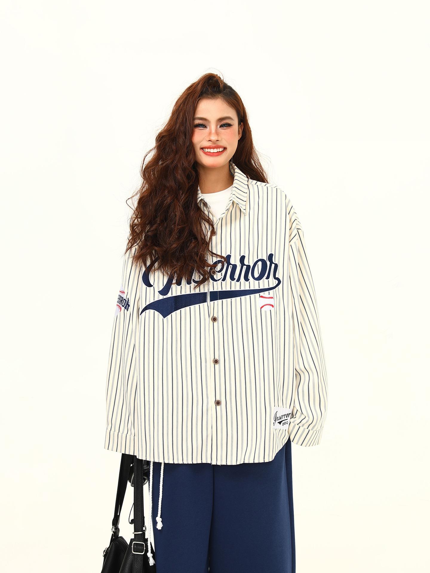 Camisa de manga larga con rayas verticales estilo retro americano para hombre y mujer, primavera y otoño, holgada y combinable, para parejas.