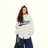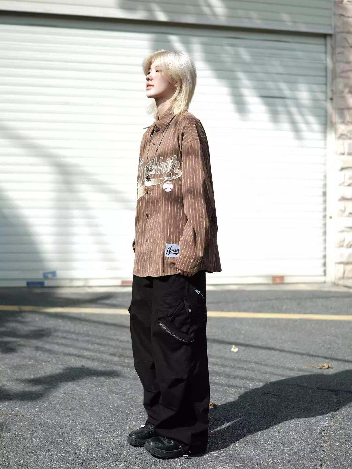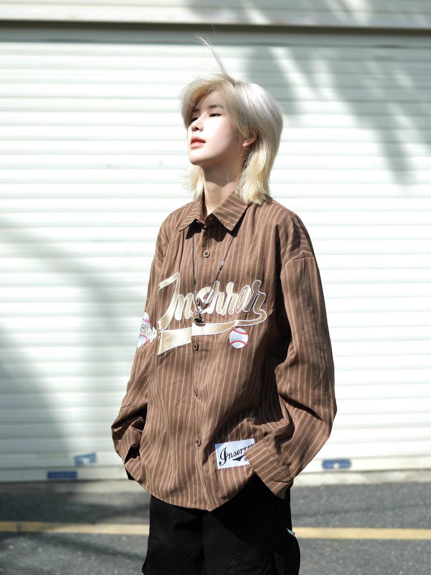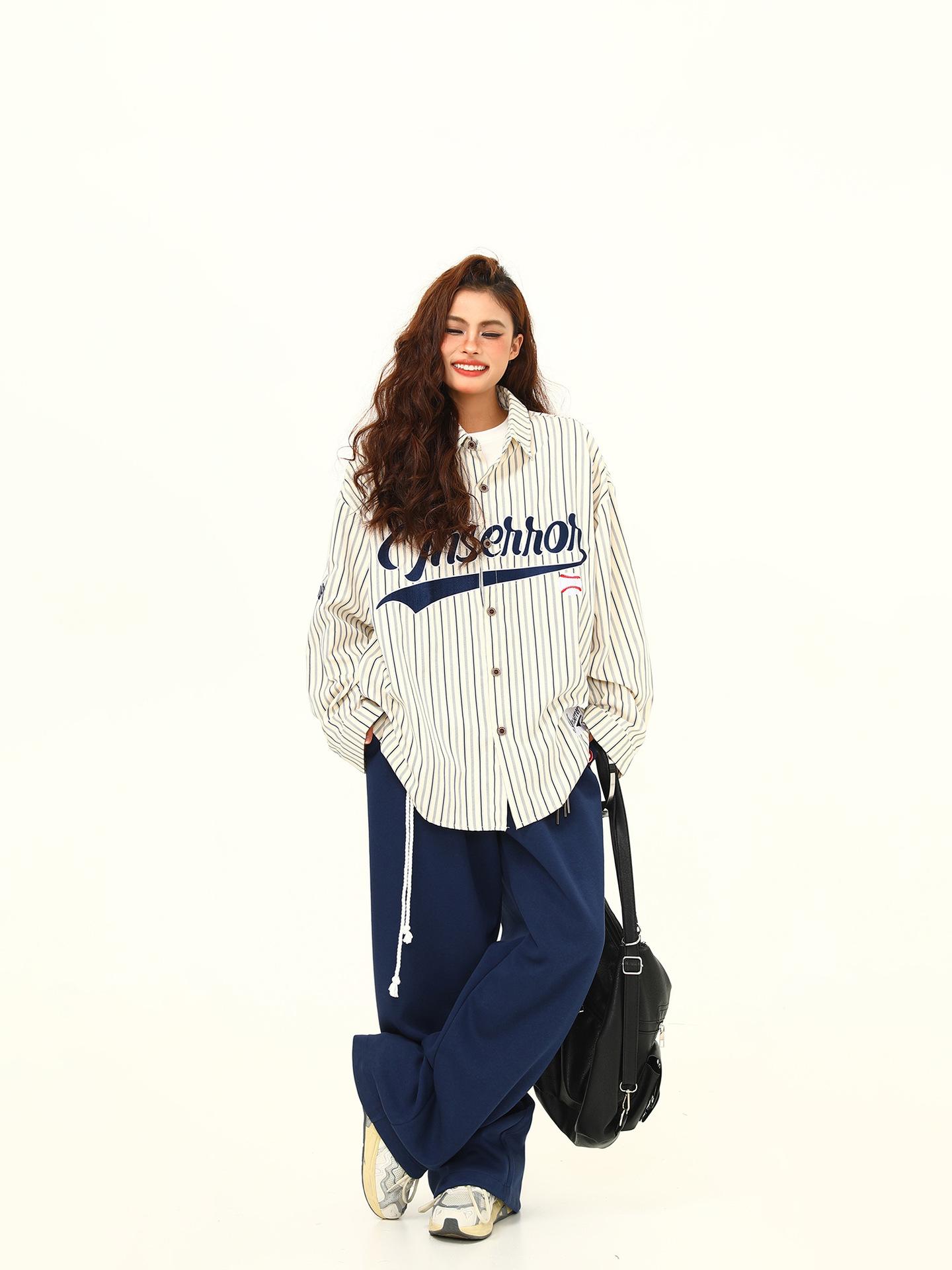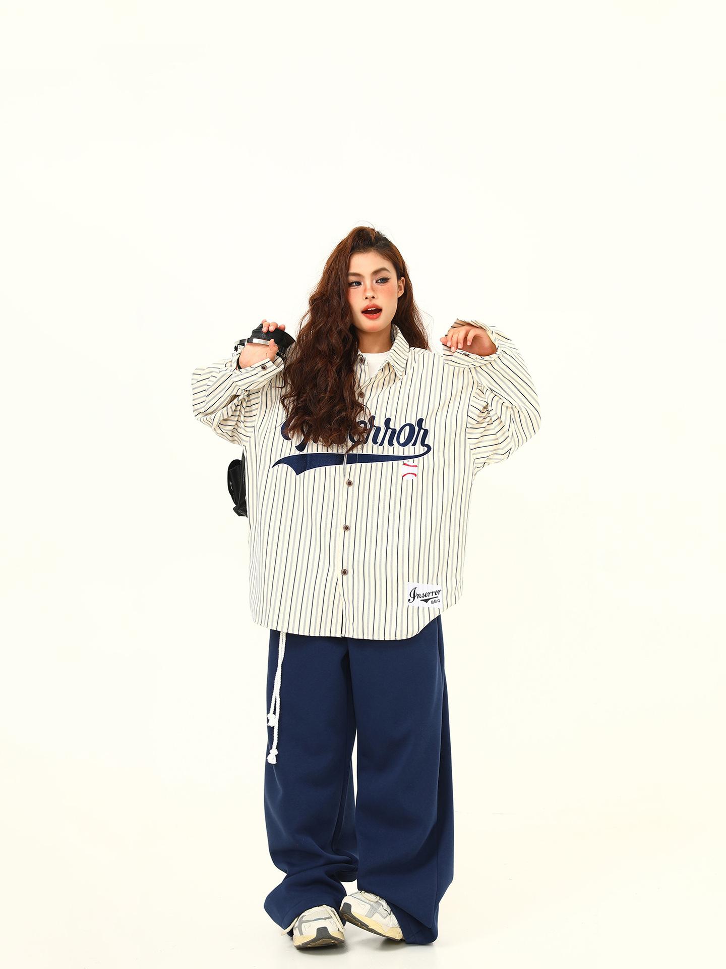 Camisa de manga larga con rayas verticales estilo retro americano para hombre y mujer, primavera y otoño, holgada y combinable, para parejas.