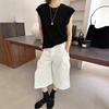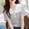 Camiseta de manga corta con cuello alto, informal, versátil, de color sólido, con parche de bolsillo, para primavera y verano de 2025.