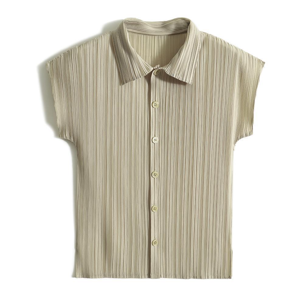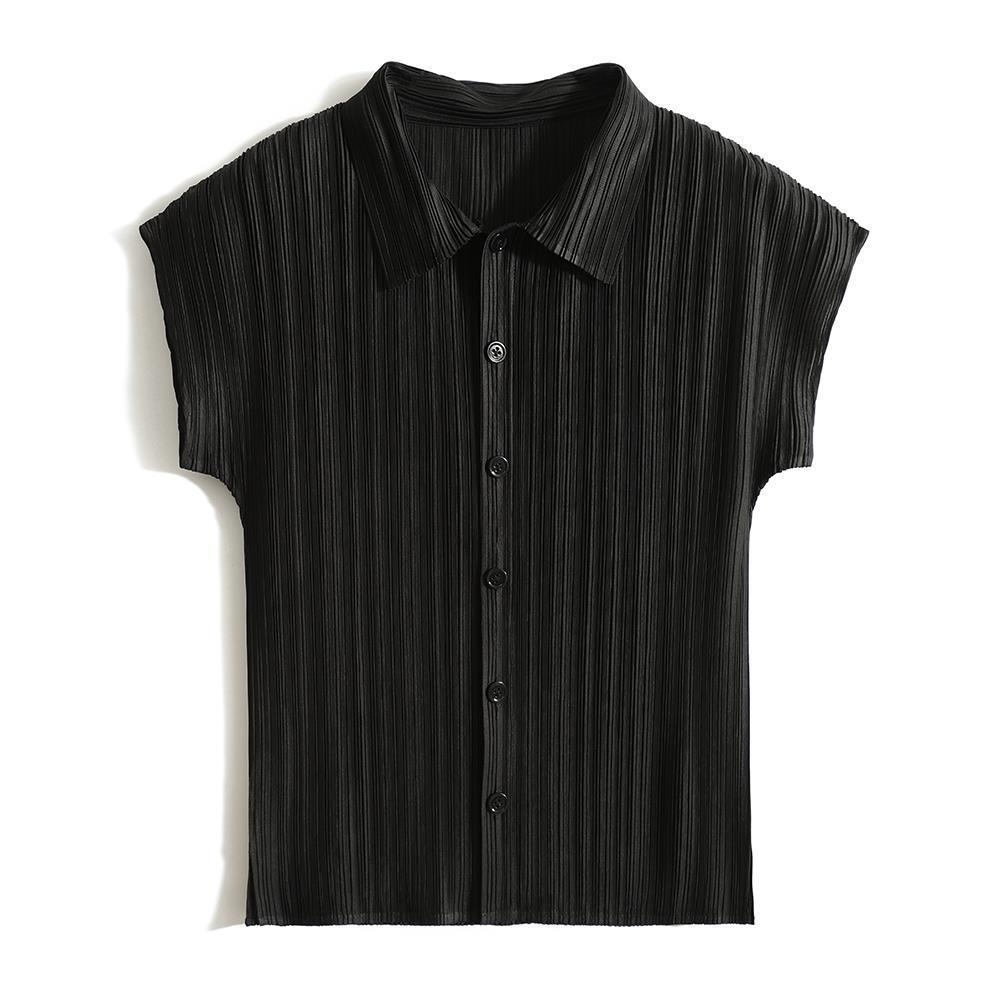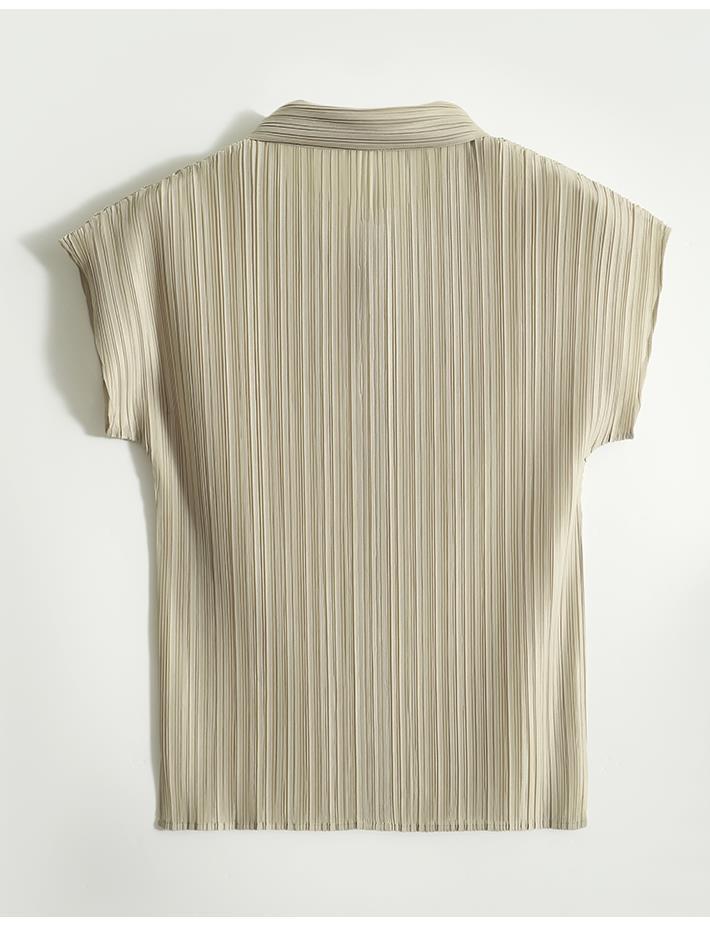 Camisa plisada de manga corta con hombros descubiertos de verano 2024