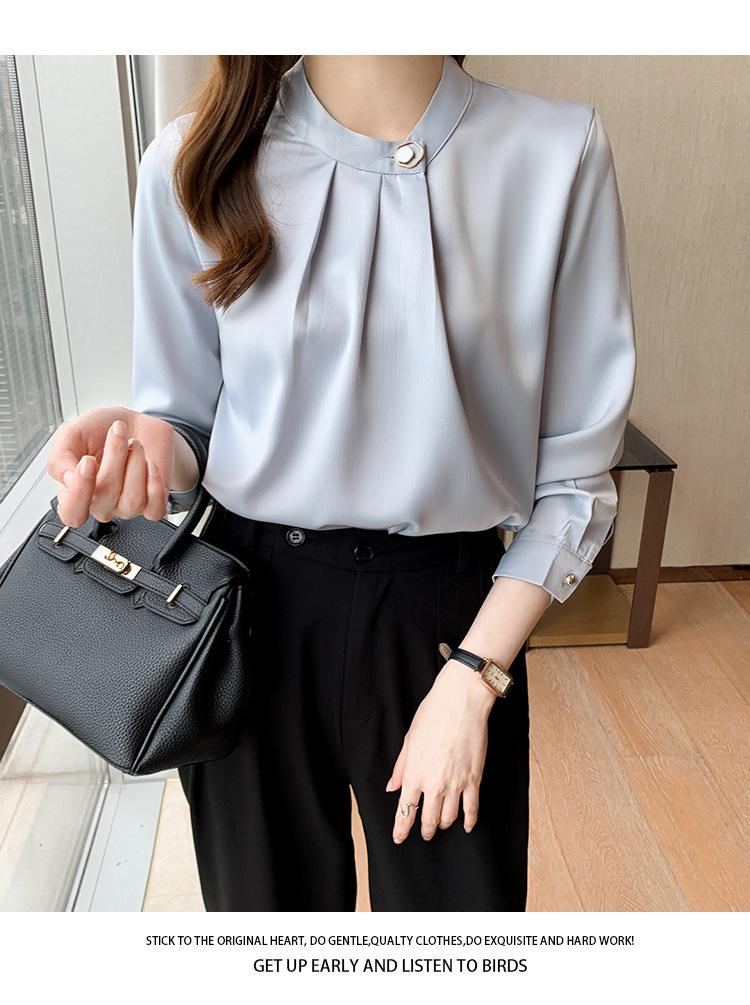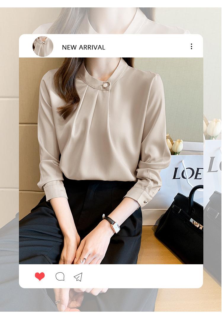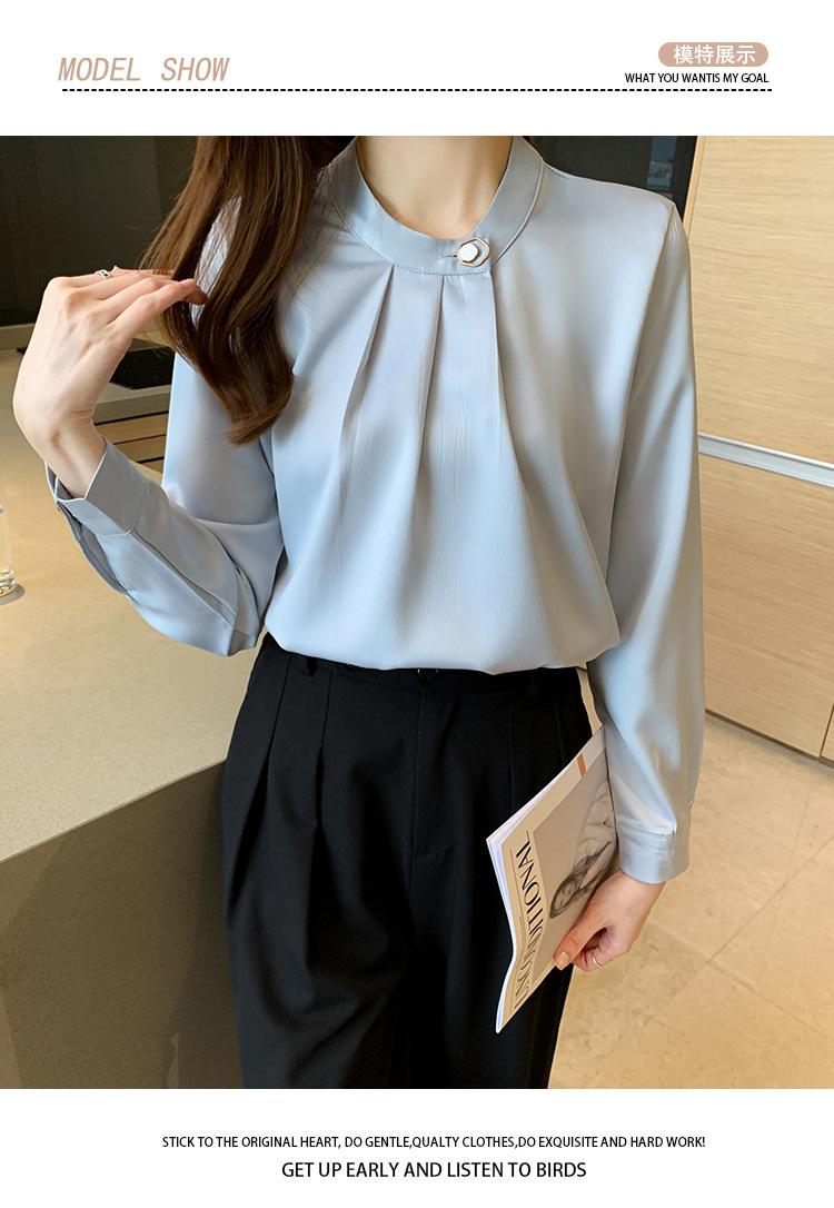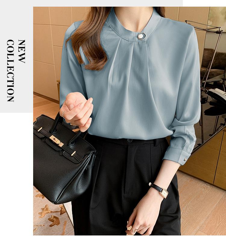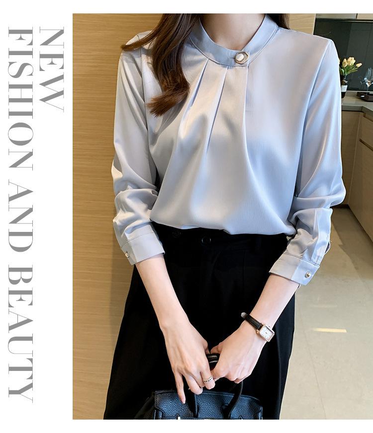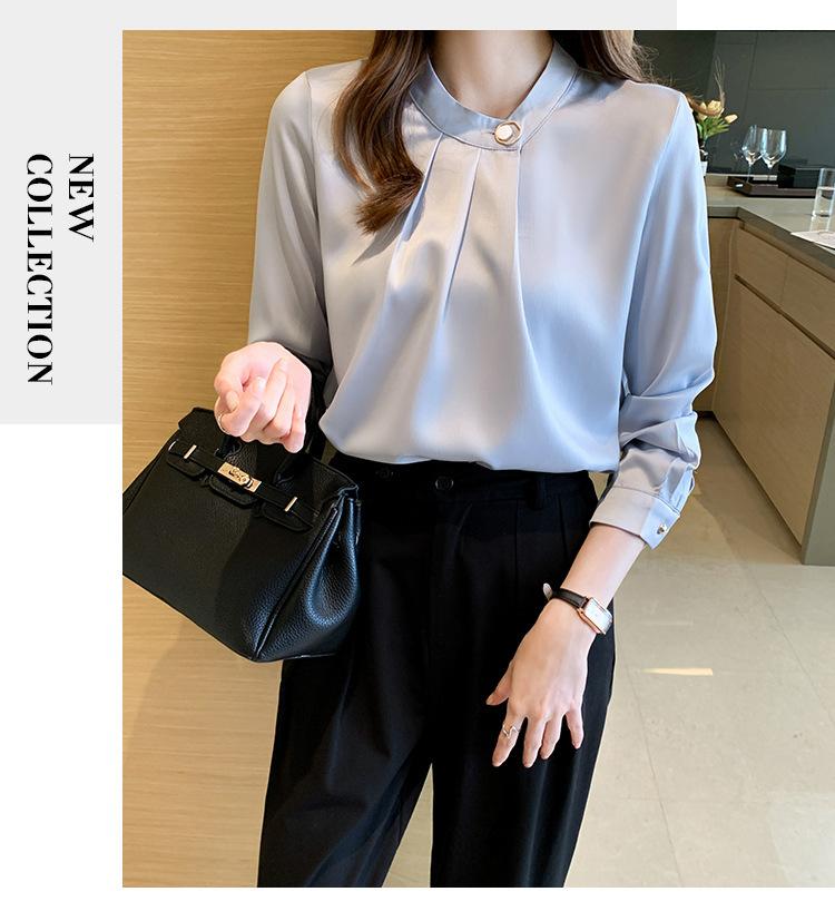 Camisa Plisada Real para Mujer 2021 Otoño Vestido Estilo Occidental Sentido del Diseño Manga Larga Satén Profesional Combinable Entrevista Top Manga Larga