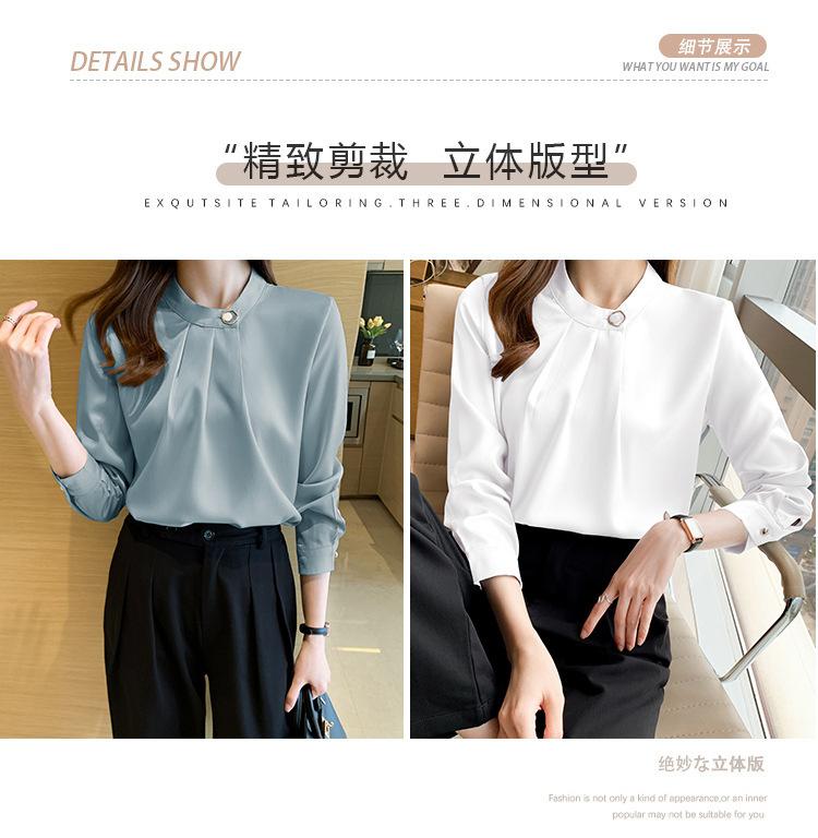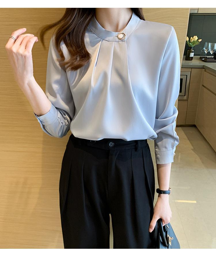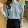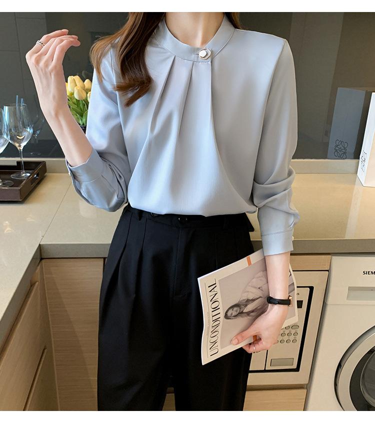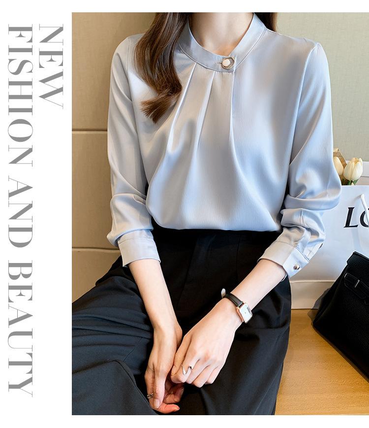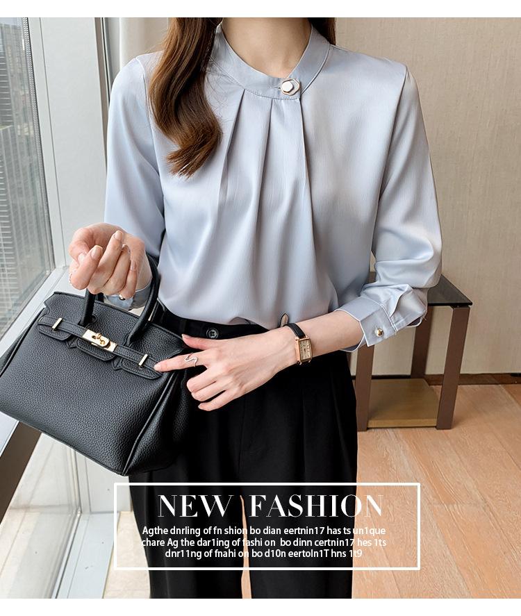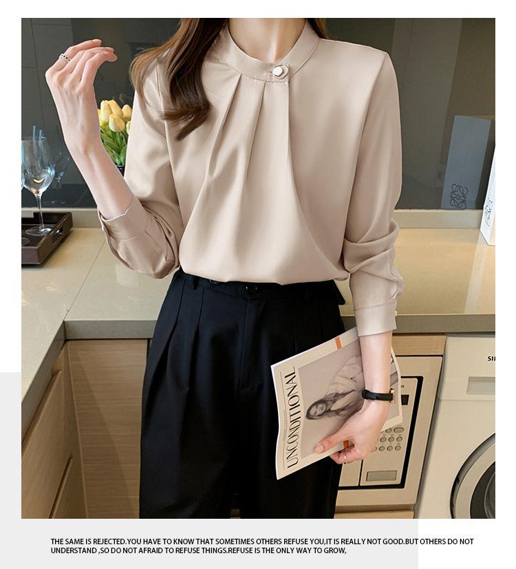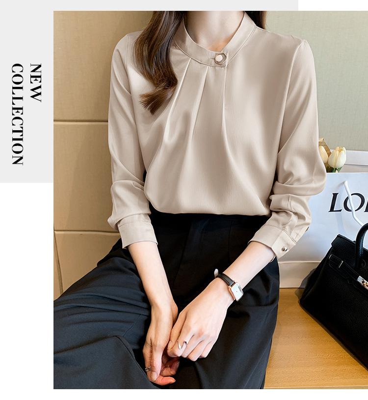 Camisa Plisada Real para Mujer 2021 Otoño Vestido Estilo Occidental Sentido del Diseño Manga Larga Satén Profesional Combinable Entrevista Top Manga Larga