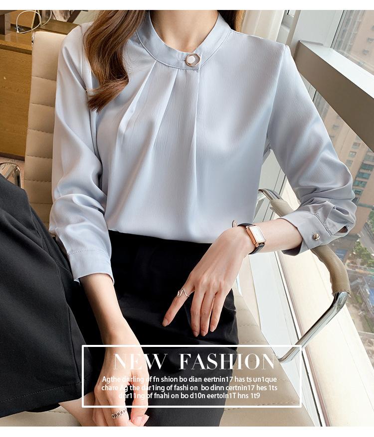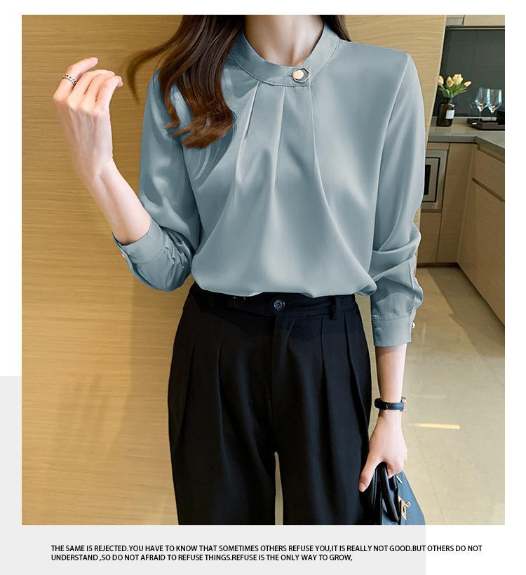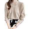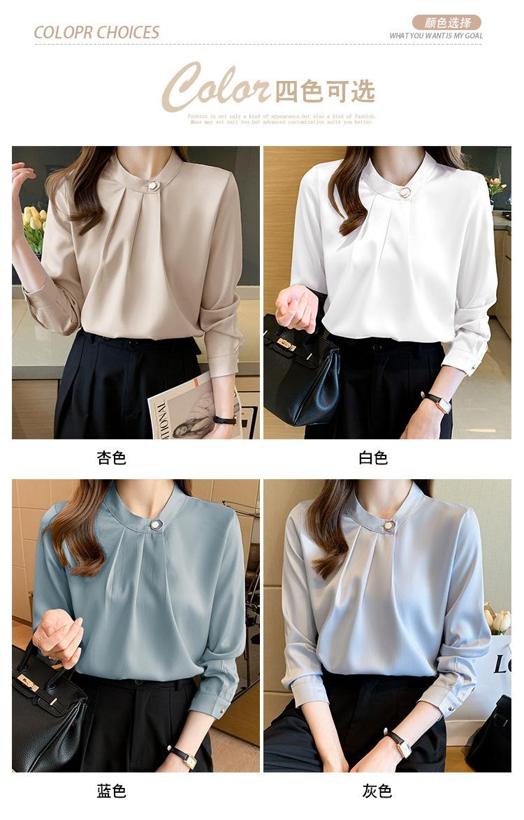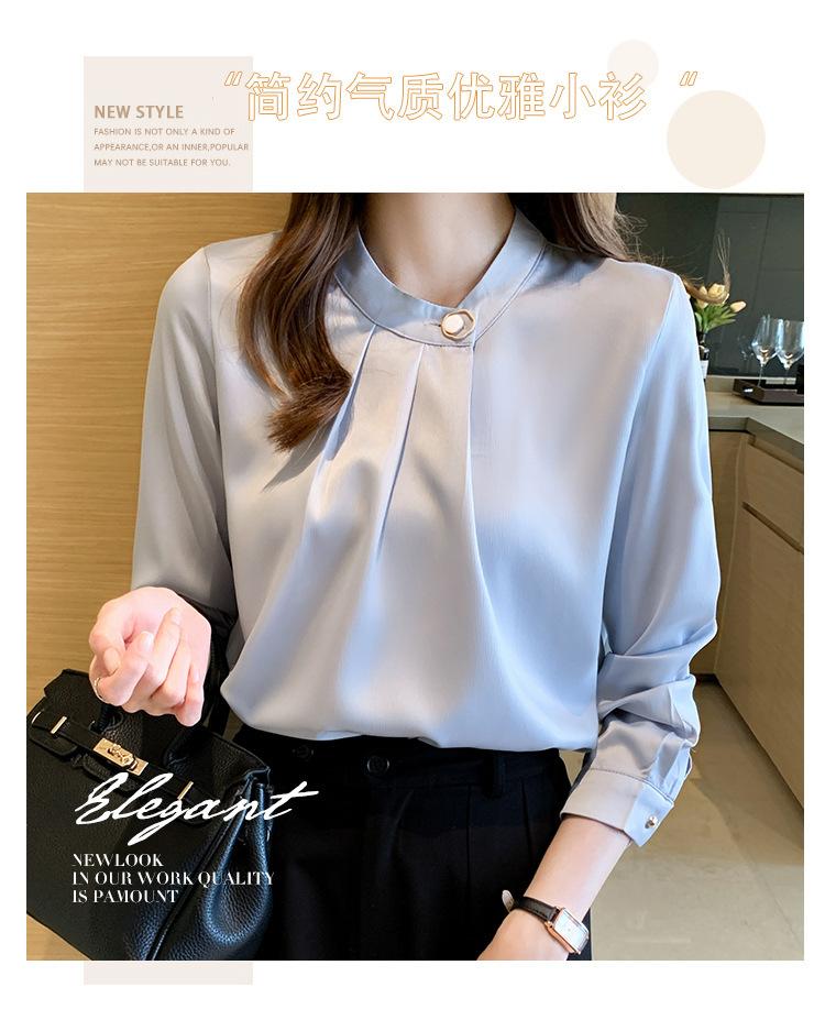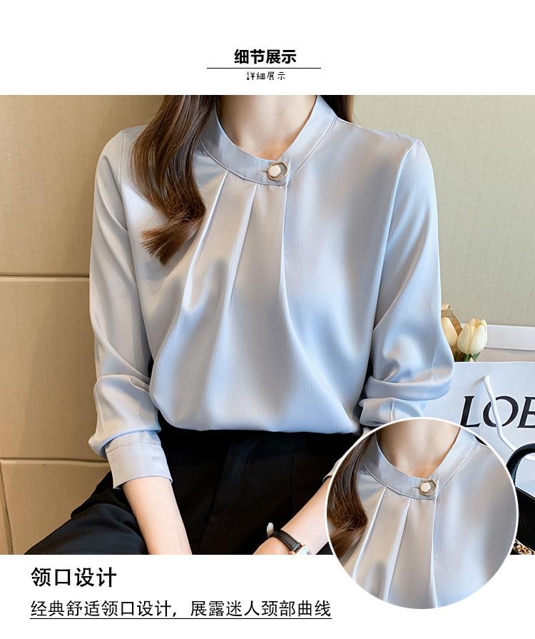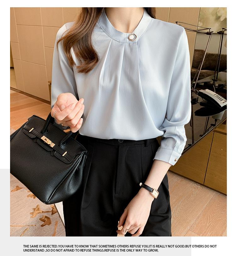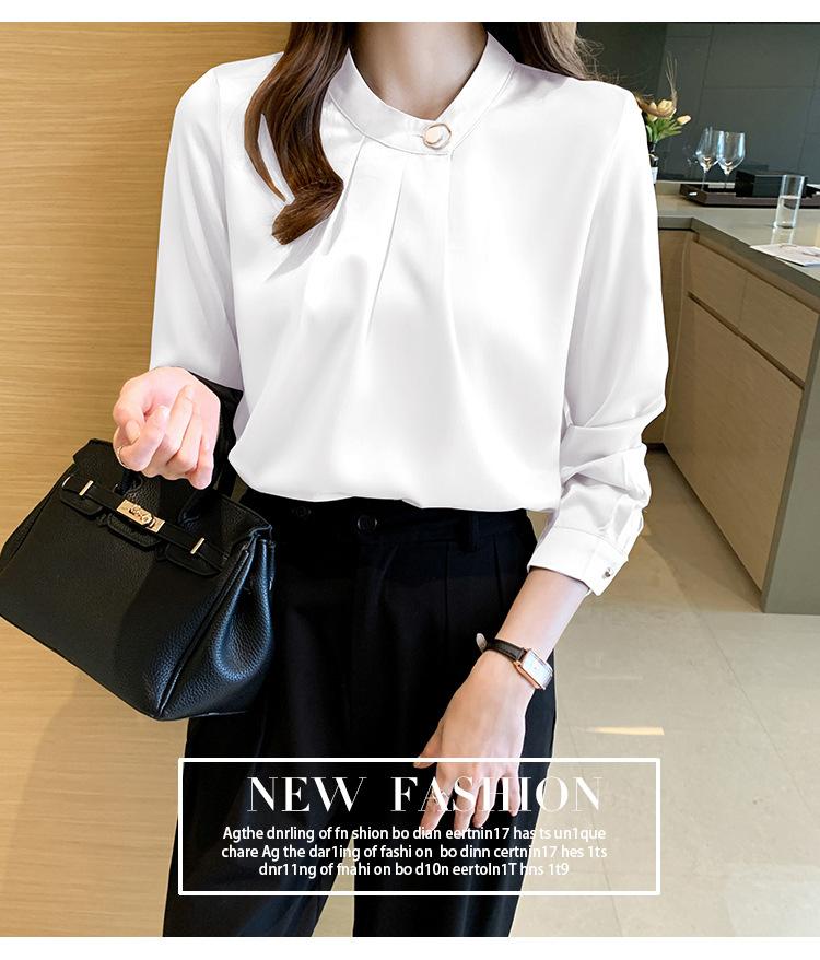 Camisa Plisada Real para Mujer 2021 Otoño Vestido Estilo Occidental Sentido del Diseño Manga Larga Satén Profesional Combinable Entrevista Top Manga Larga
