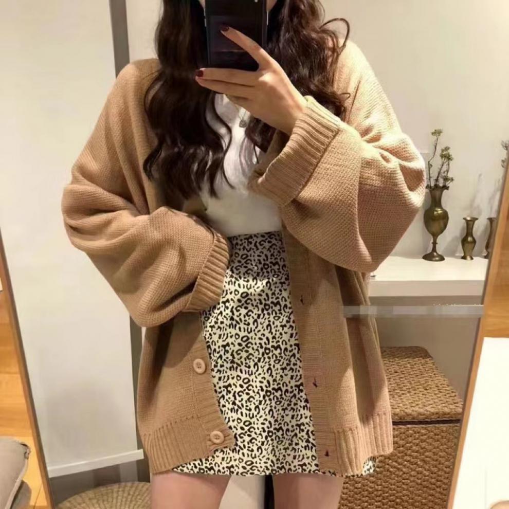Cárdigan de punto con cuello en V, estilo japonés y coreano, otoño e invierno 2023, suéter holgado de color liso que combina con todo, abrigo de estilo informal, ropa de mujer