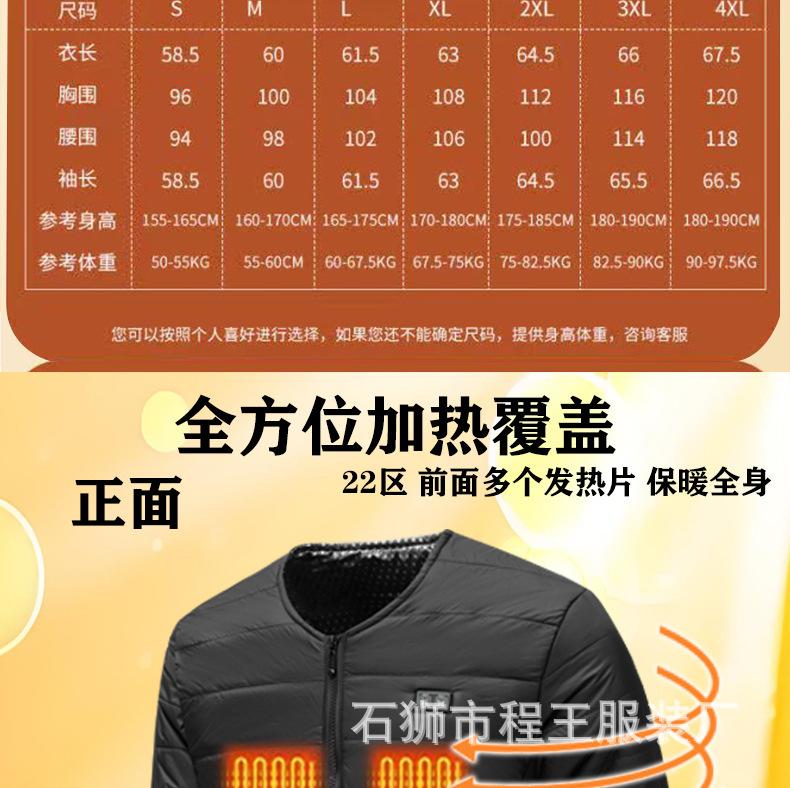 Chaqueta acolchada de algodón con calefacción transfronteriza para invierno, nueva chaqueta acolchada de algodón con cuello en V y carga, chaqueta acolchada de algodón con calefacción eléctrica cálida y resistente al frío.