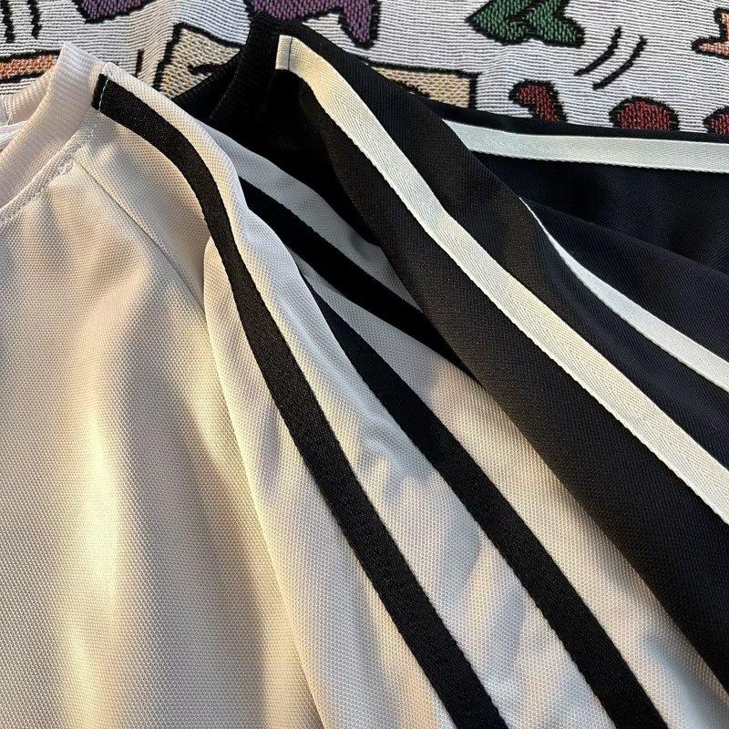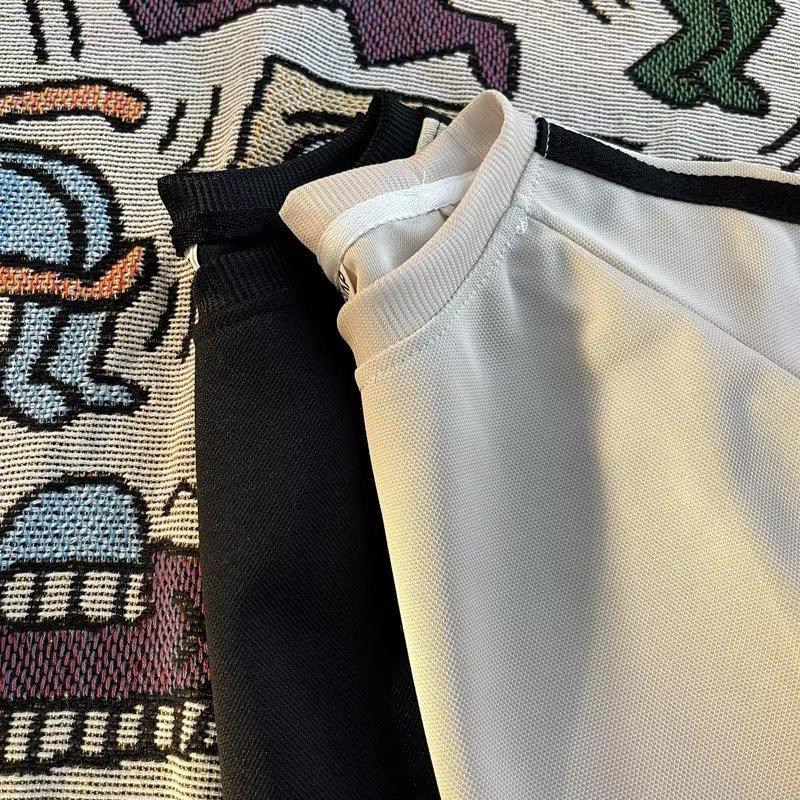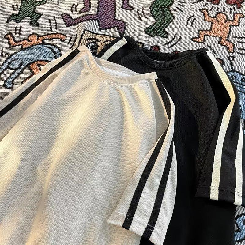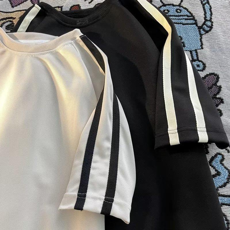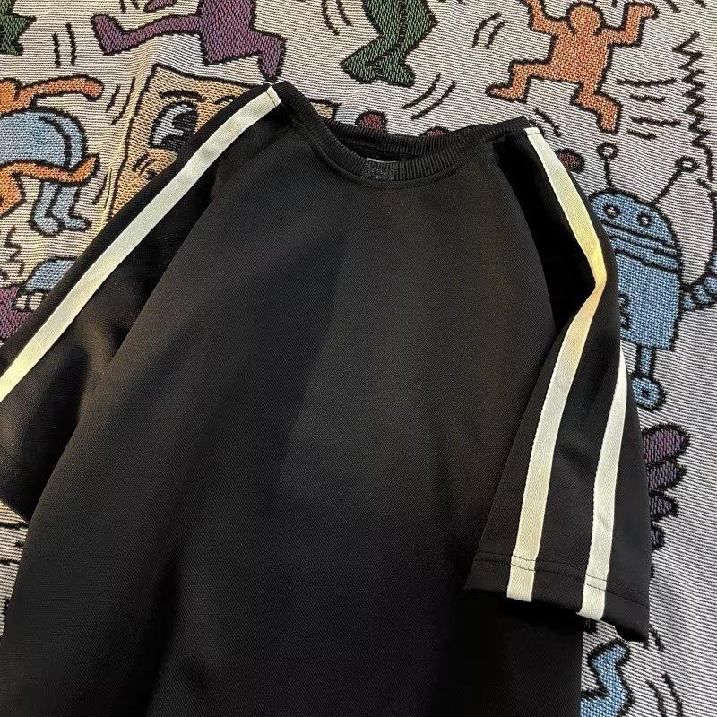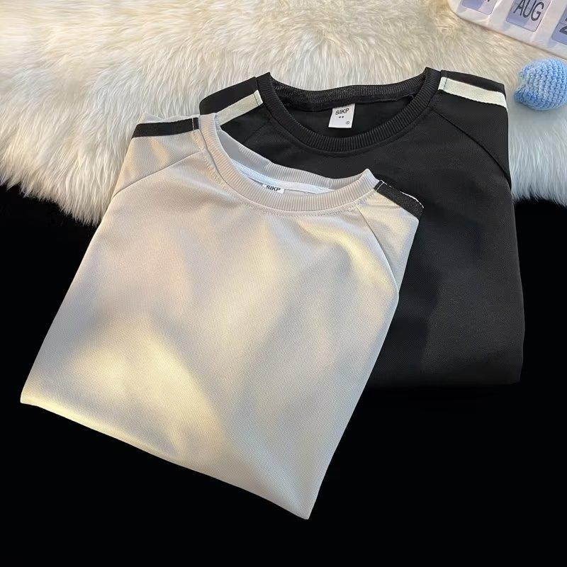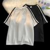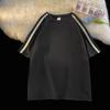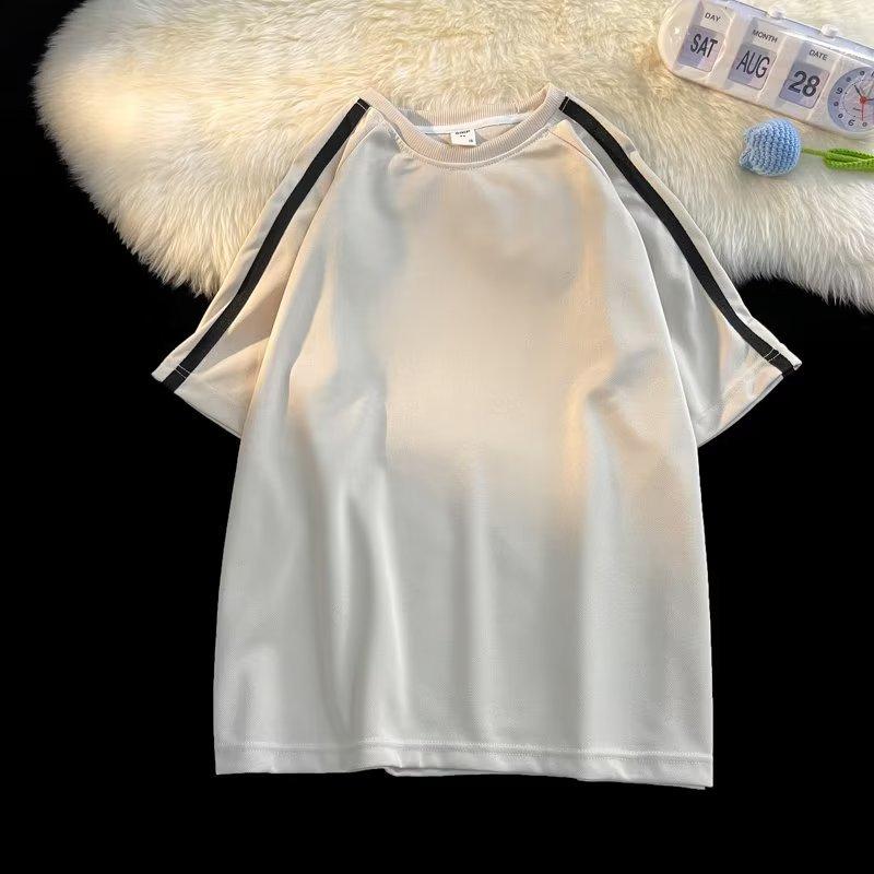Camiseta de Manga Corta para Hombre de Nicho Americano de Gama Alta con Costuras Sensoriales, Color Sólido, Verano, Simple, Combinable con Todo, Holgada, a Rayas, 2024