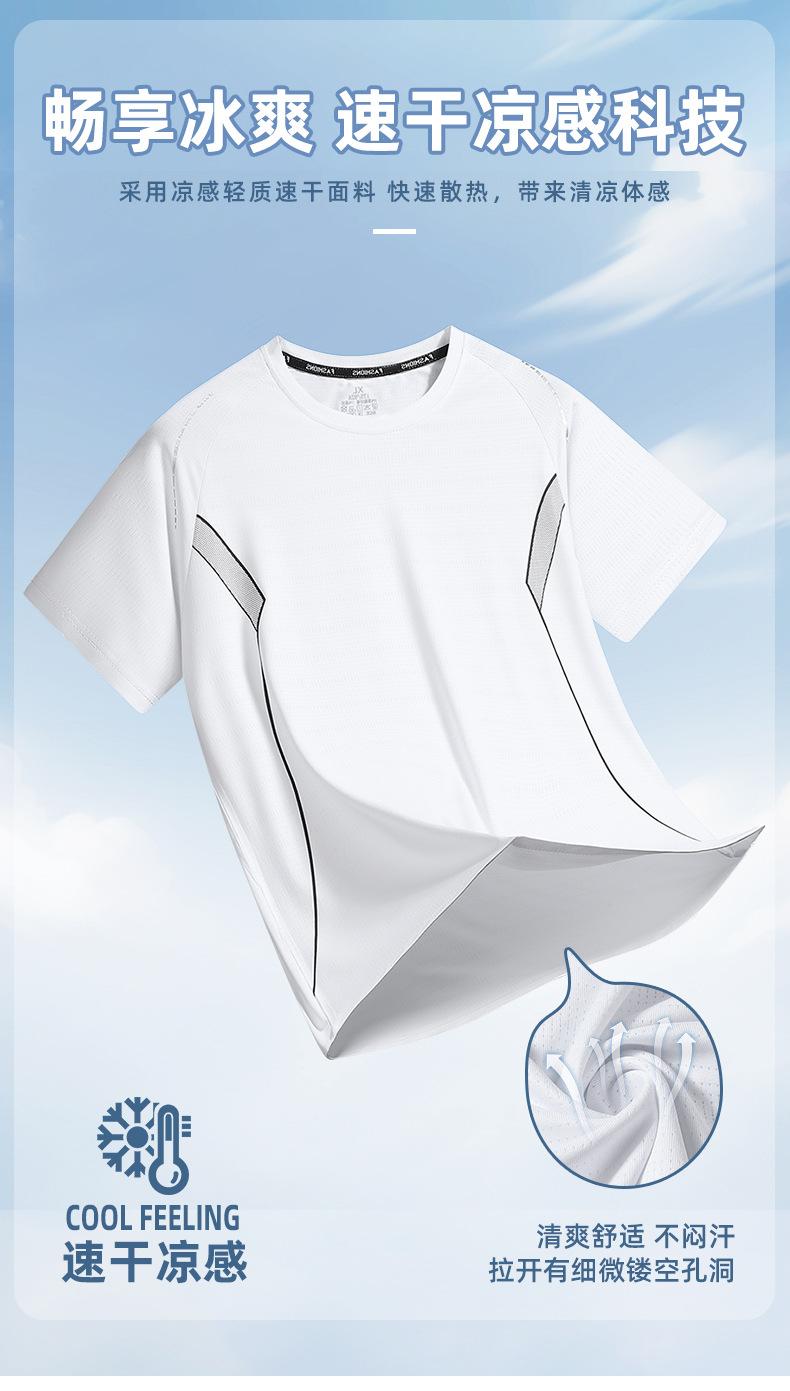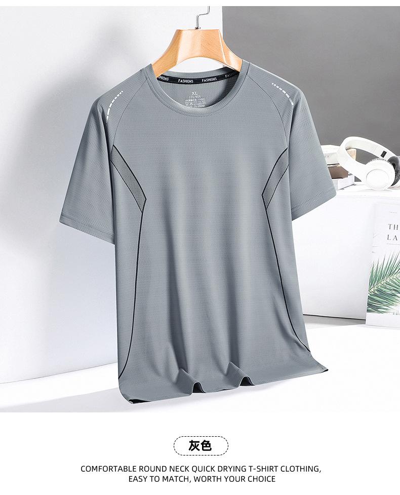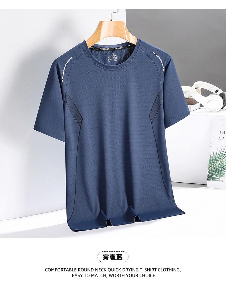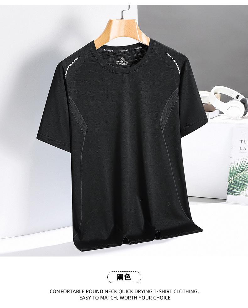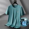 Camiseta deportiva de manga corta para hombre, de verano 2025, de secado rápido, transpirable, de seda helada, con cuello redondo, para correr y fitness.