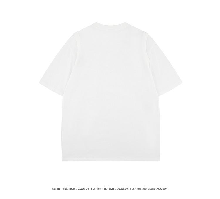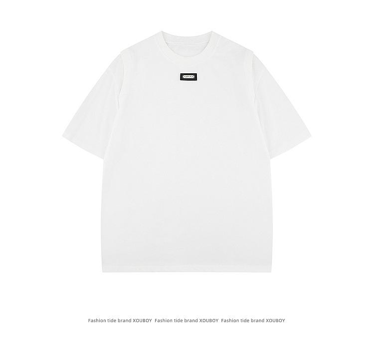 Camiseta de manga corta con diseño de etiqueta de calle principal de estilo americano de Simple Wear, camiseta de chaqueta holgada de marca de moda para hombre de nicho para pareja