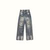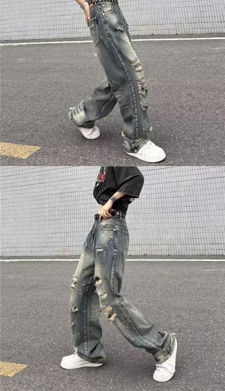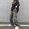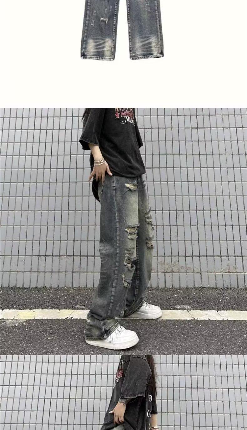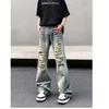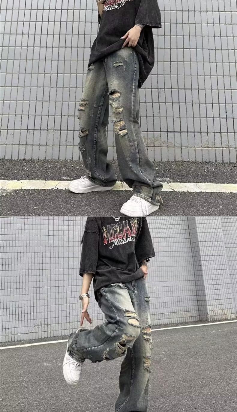 2024 Estilo Americano Vintage Lavado Viejo Corte de Cuchillo Jeans Rotos para Hombre Ins Europeo y Americano High Street Pantalones Rectos