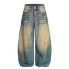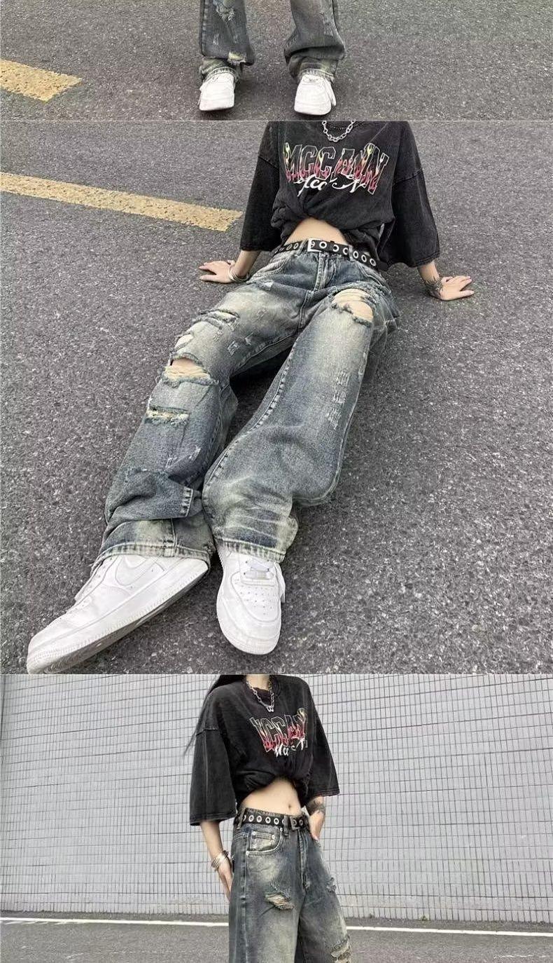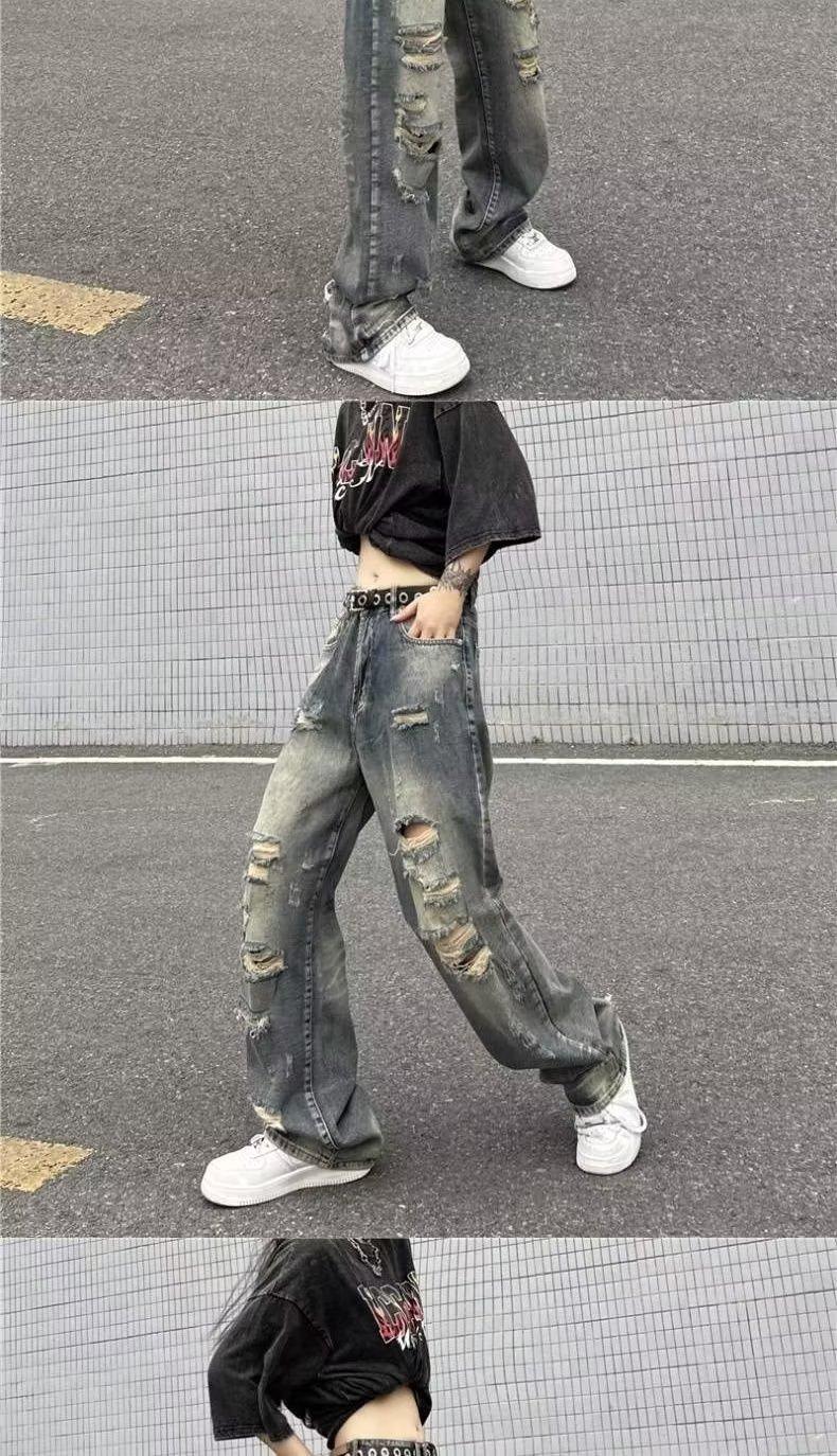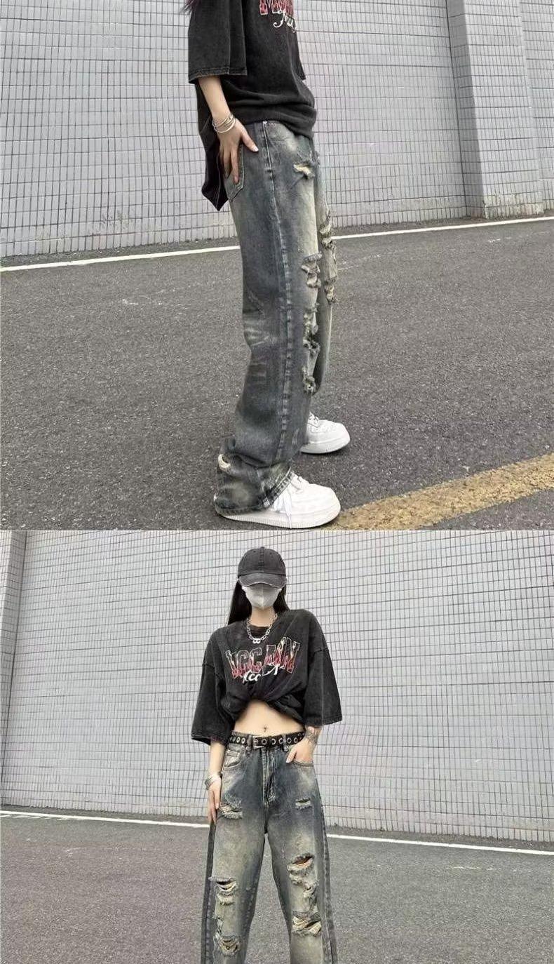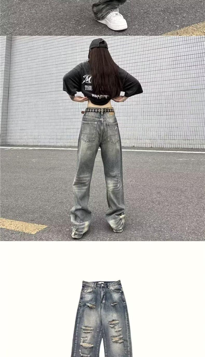 2024 Estilo Americano Vintage Lavado Viejo Corte de Cuchillo Jeans Rotos para Hombre Ins Europeo y Americano High Street Pantalones Rectos