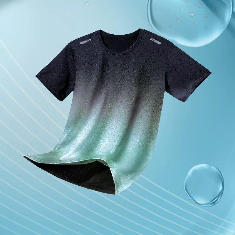 Camiseta de secado rápido para hombre, ropa deportiva holgada de verano, fina, de seda de hielo, de manga corta, informal, para correr