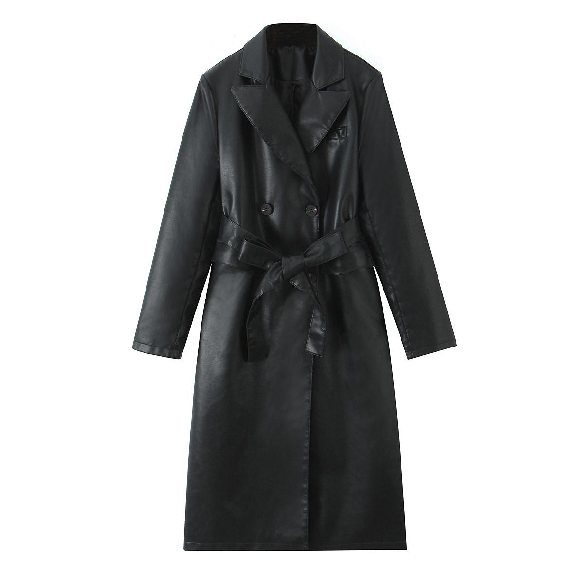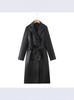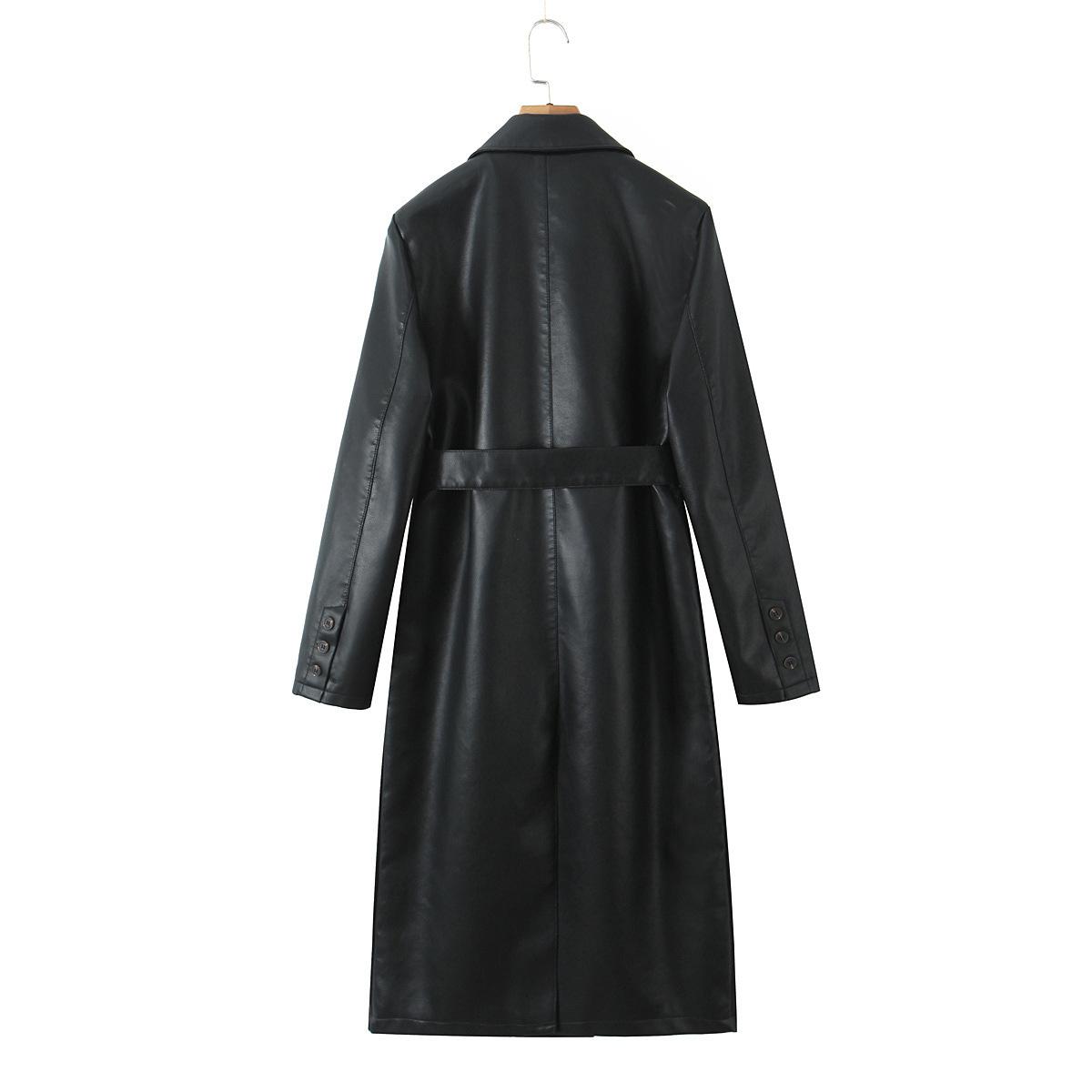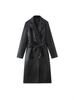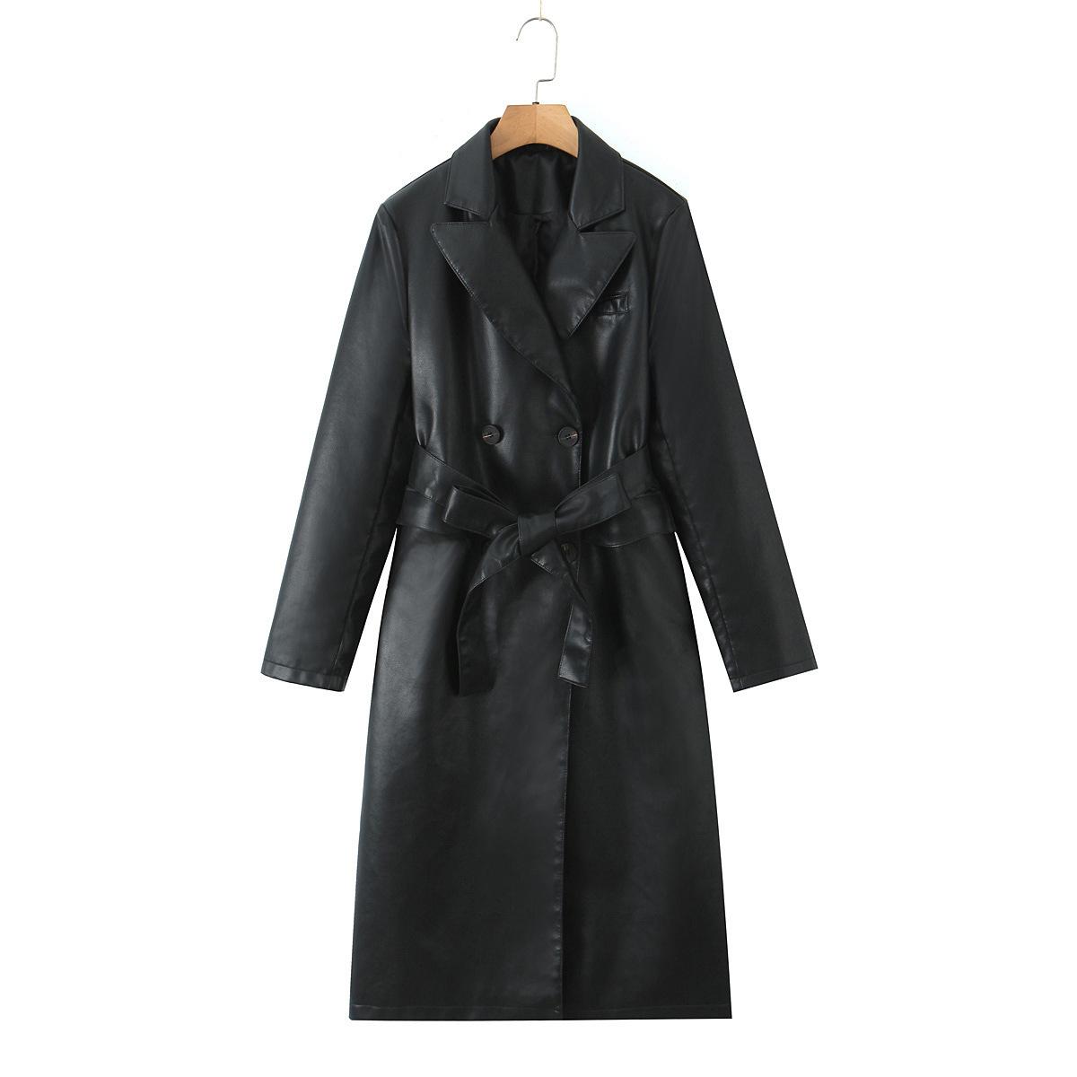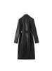 Suministro Transfronterizo Venta al Mayoreo Invierno Ropa Europea y Americana Estilo Europeo y Americano Moda Casual Imitación Cuero Pu Negro Cortavientos Largo Exterior