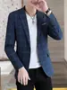 Traje pequeño de primavera y otoño para hombre, nuevo, estilo coreano, ajustado, elegante, chaqueta a cuadros, traje individual informal de moda que combina con todo.