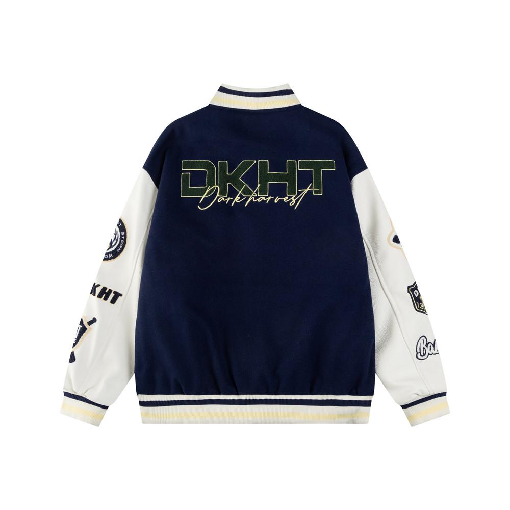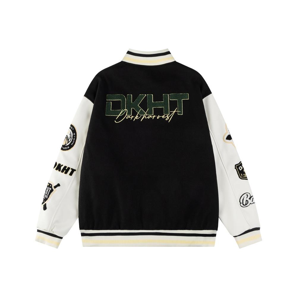 Chaqueta de béisbol acolchada con bordado de letras y colores contrastantes para hombre, estilo americano, holgada, con cuello de moda urbana, para invierno