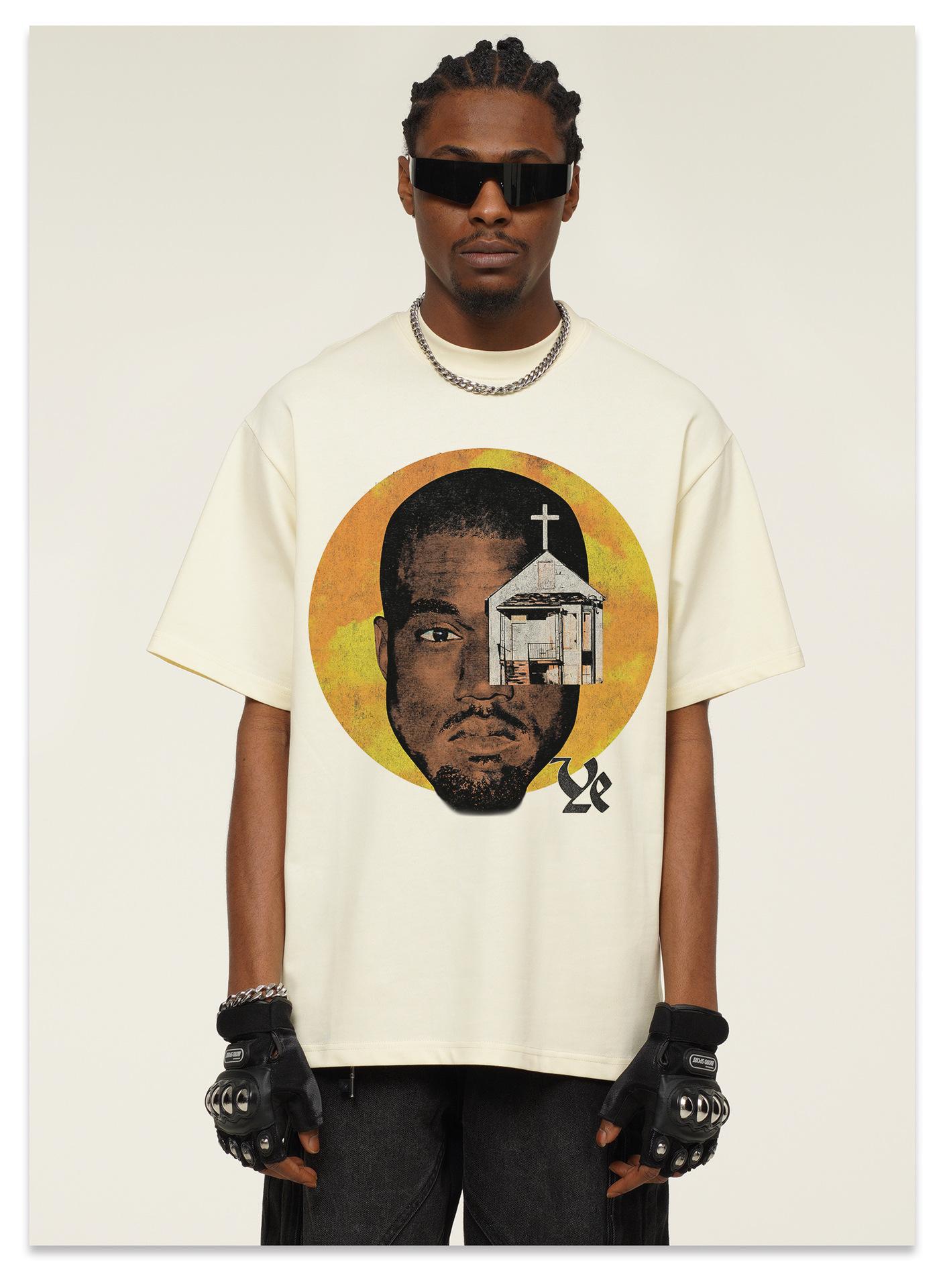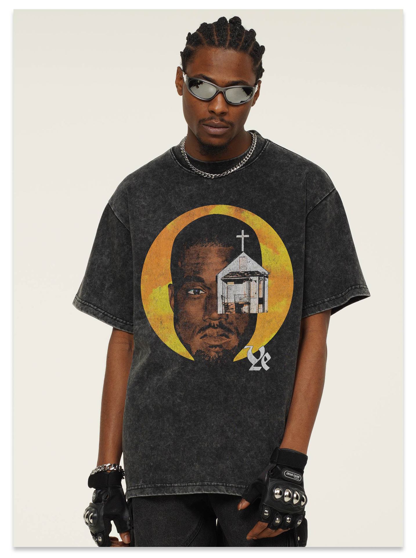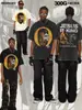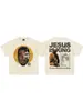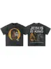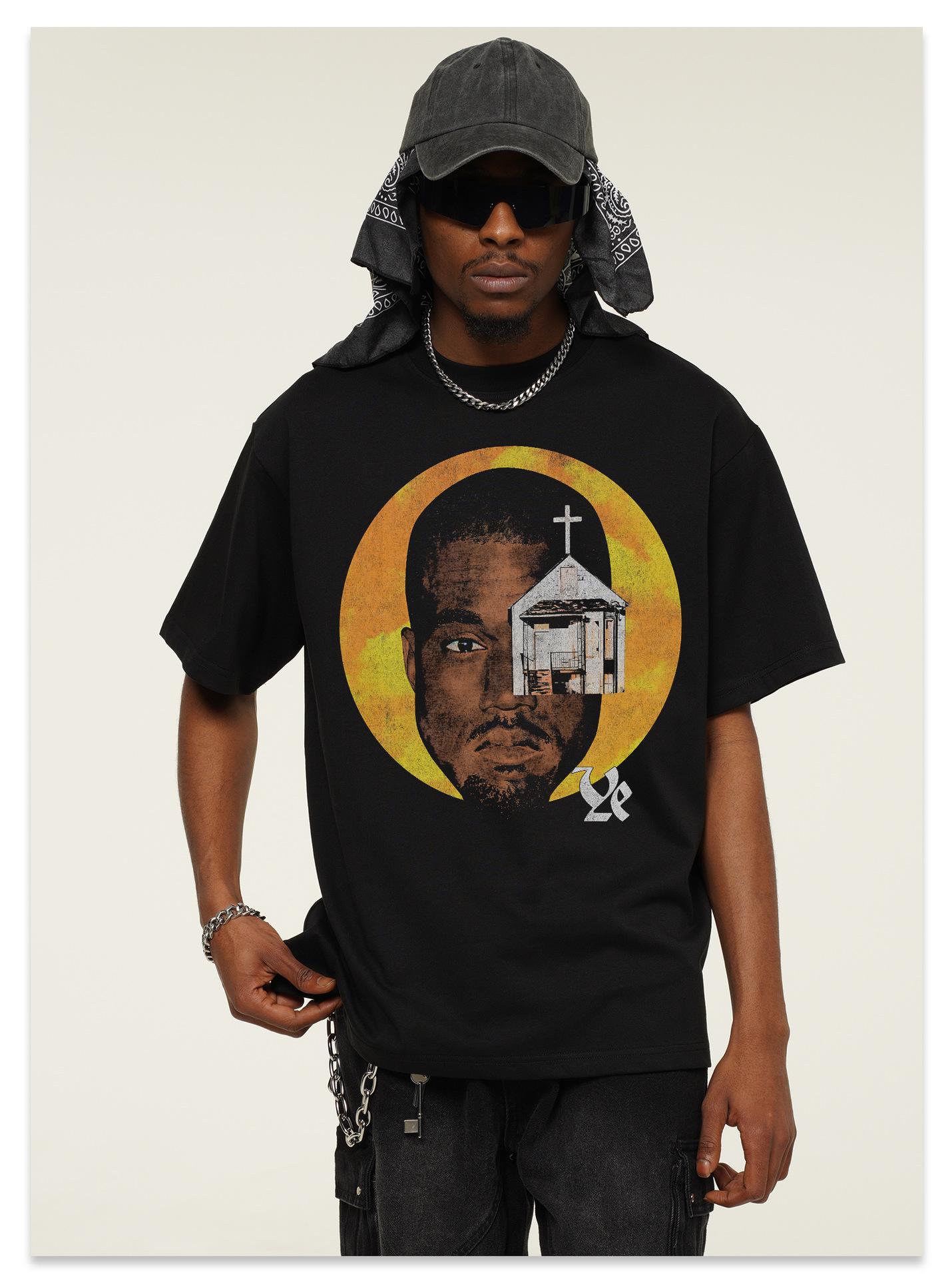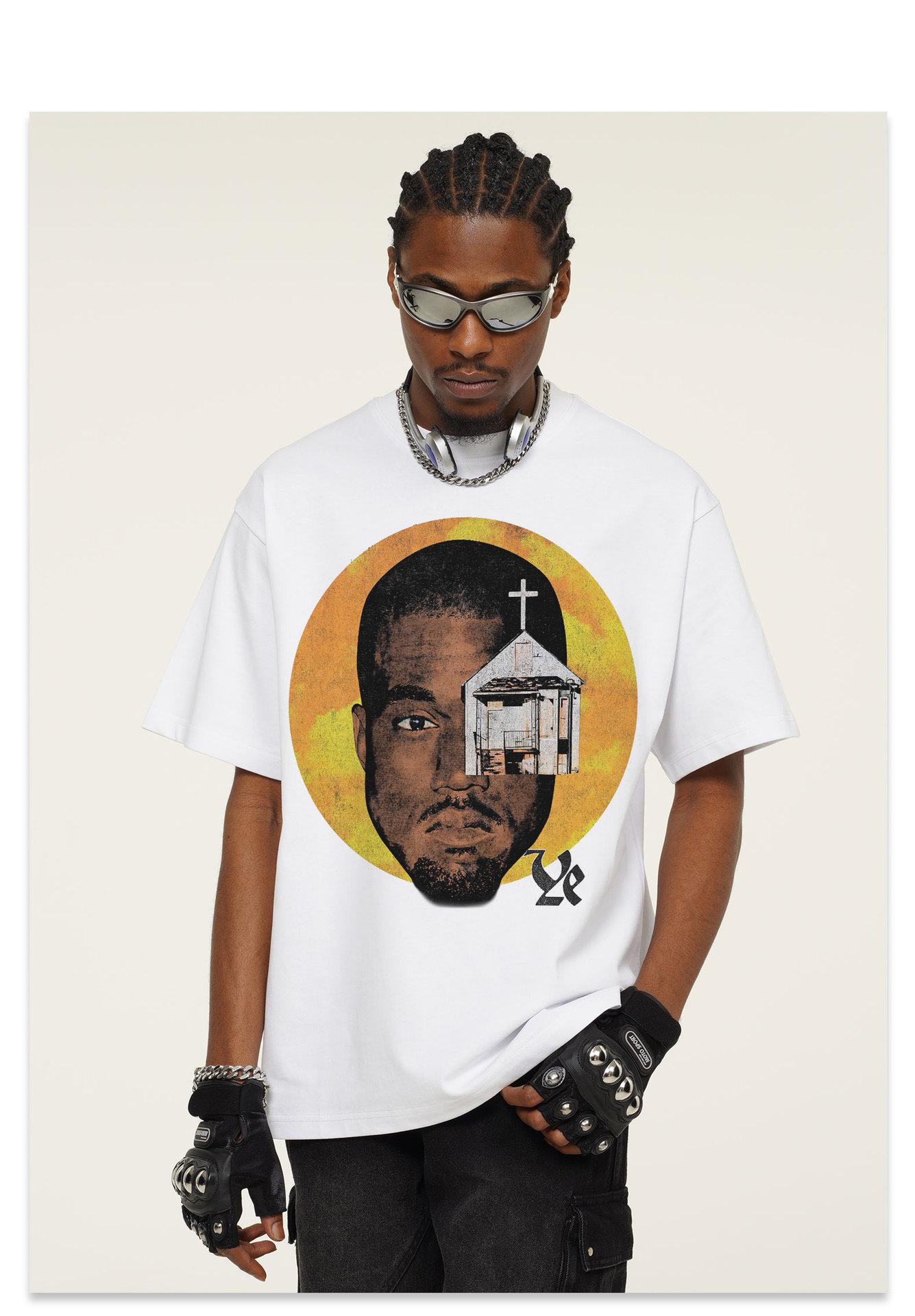 Camiseta de verano 2025 para hombre, estilo americano Kanye, estilo retro callejero, de manga corta, de algodón puro, gruesa, estampada, holgada y de manga corta.