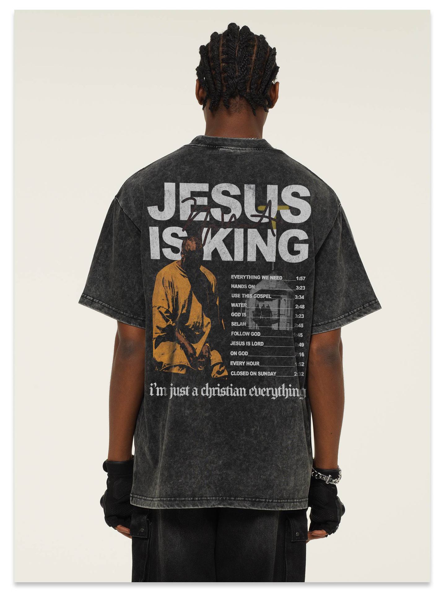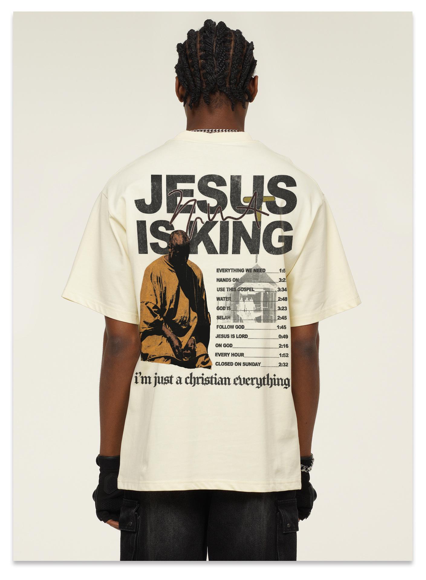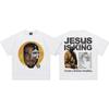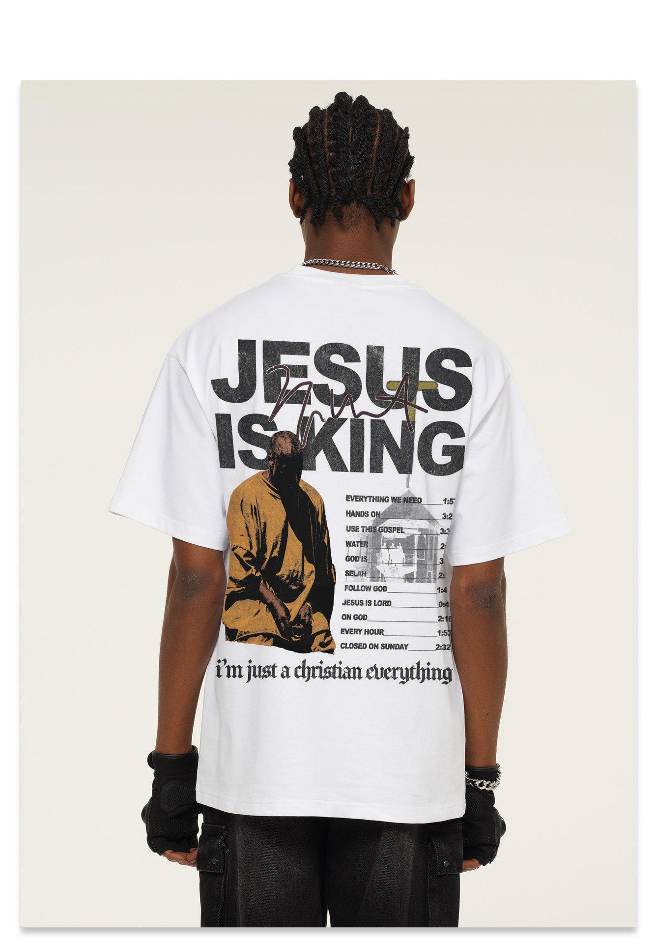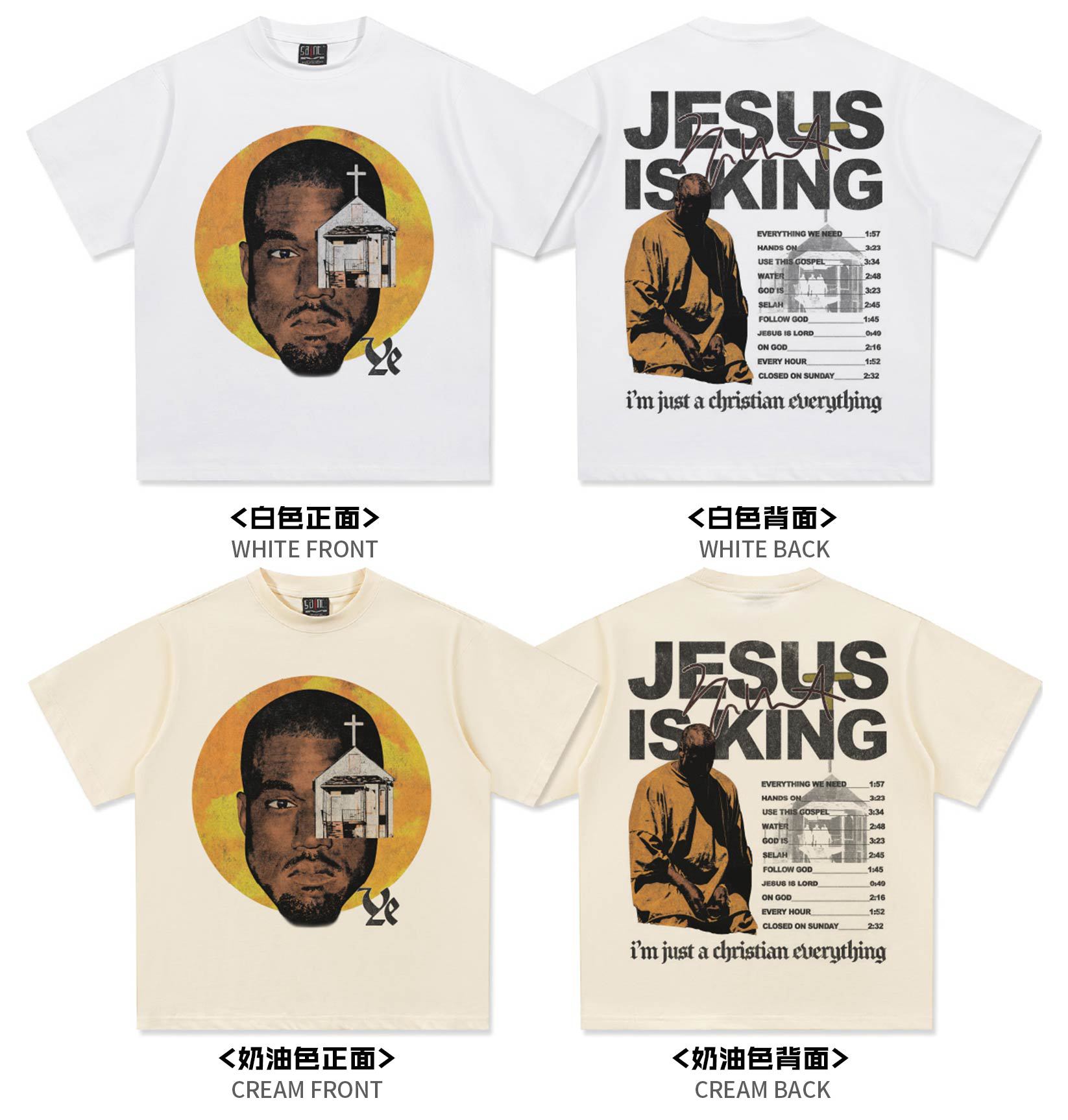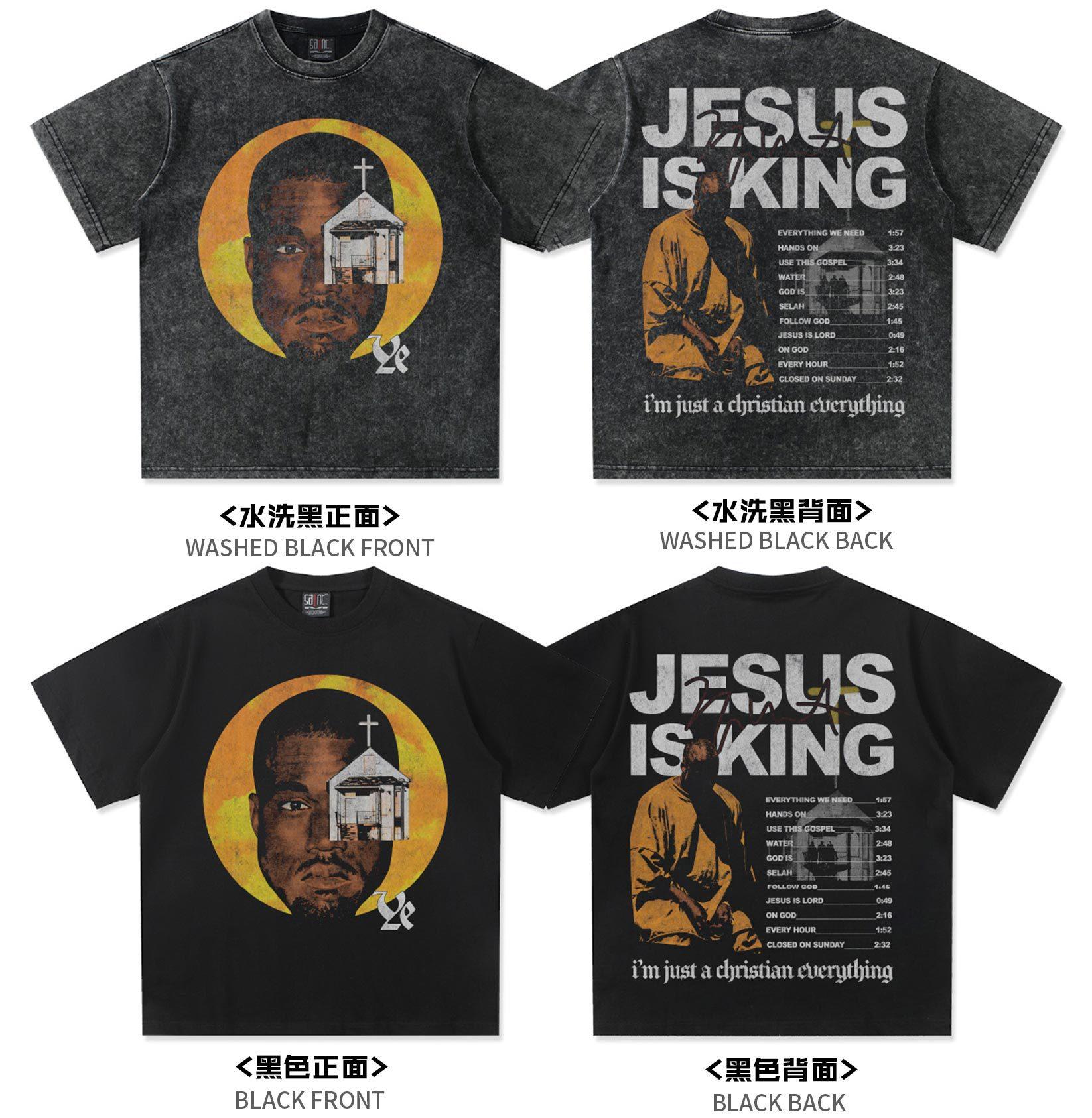 Camiseta de verano 2025 para hombre, estilo americano Kanye, estilo retro callejero, de manga corta, de algodón puro, gruesa, estampada, holgada y de manga corta.