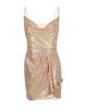 Vestido de moda sexy con hombros descubiertos y cinturón, sin mangas, con lentejuelas, largo medio y cuello redondo, exportación europea y americana, 2023