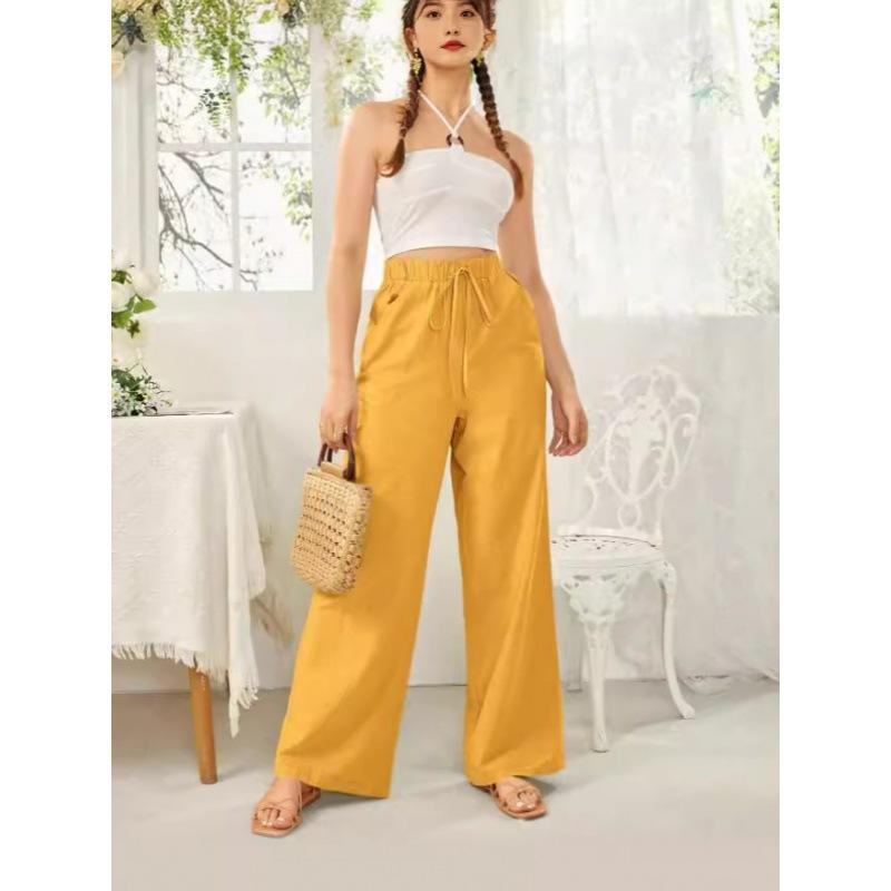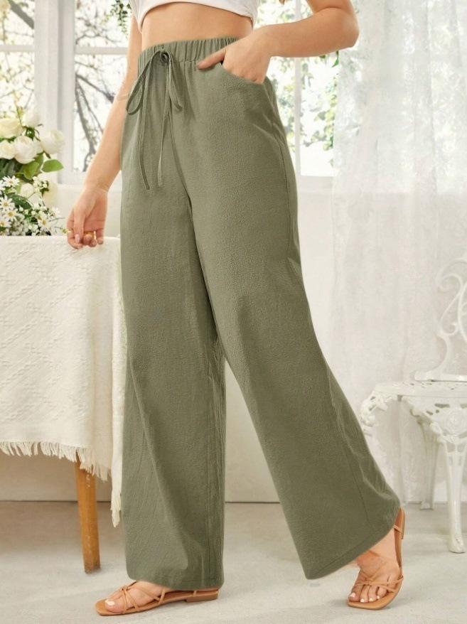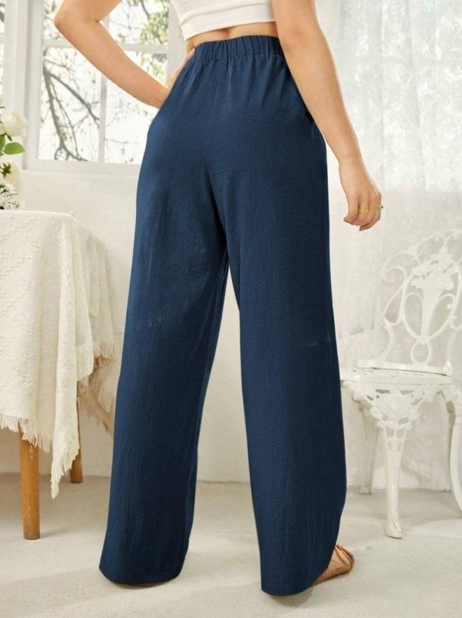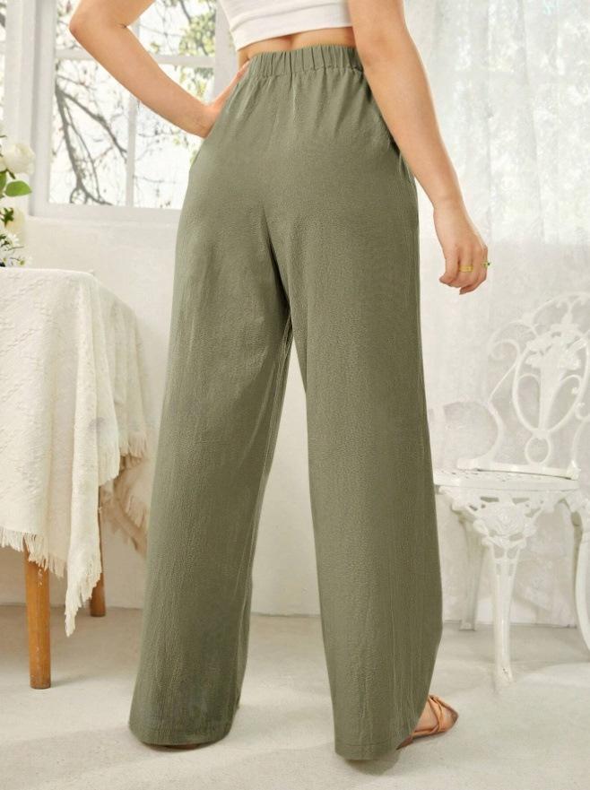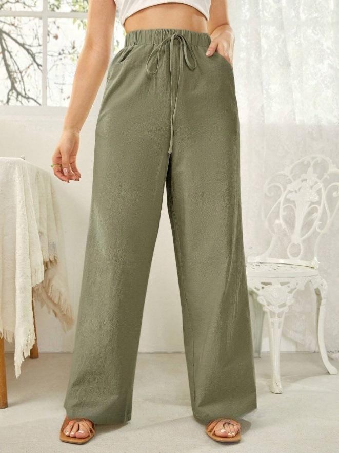 Pantalones rectos de cintura media para mujer, holgados, de color liso, con bolsillos, informales, para comercio exterior transfronterizo europeo y americano, 2024