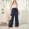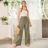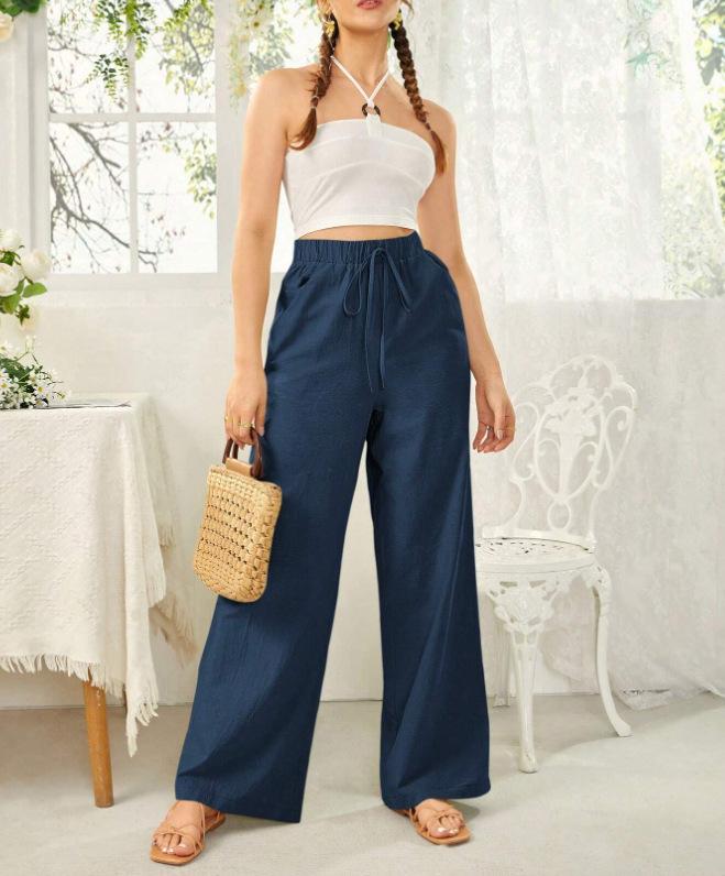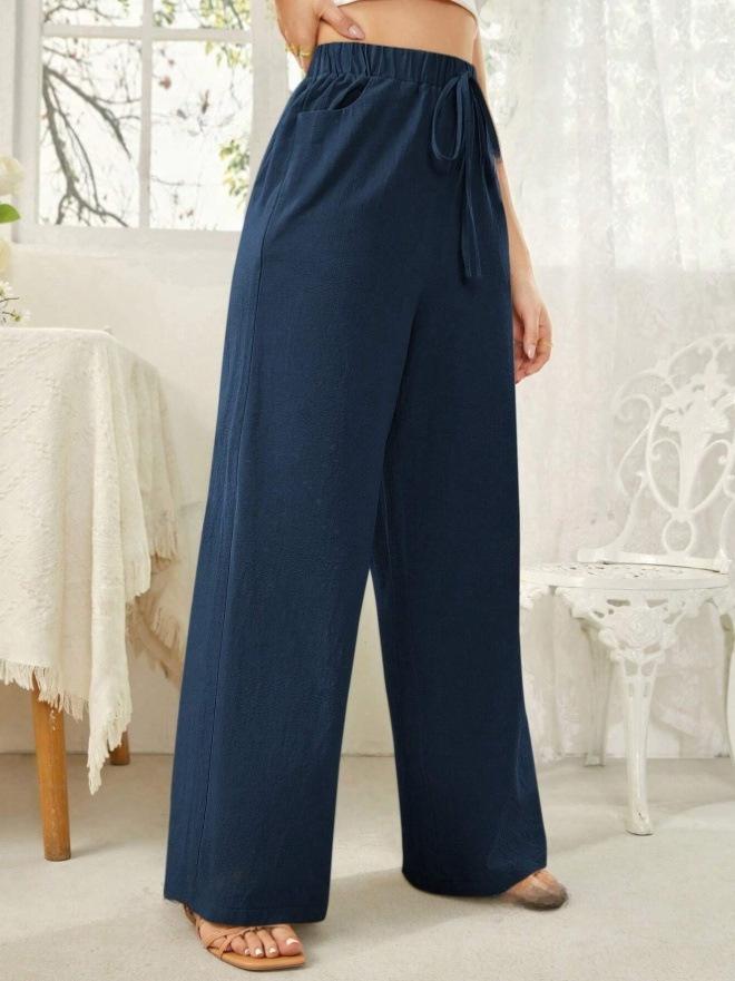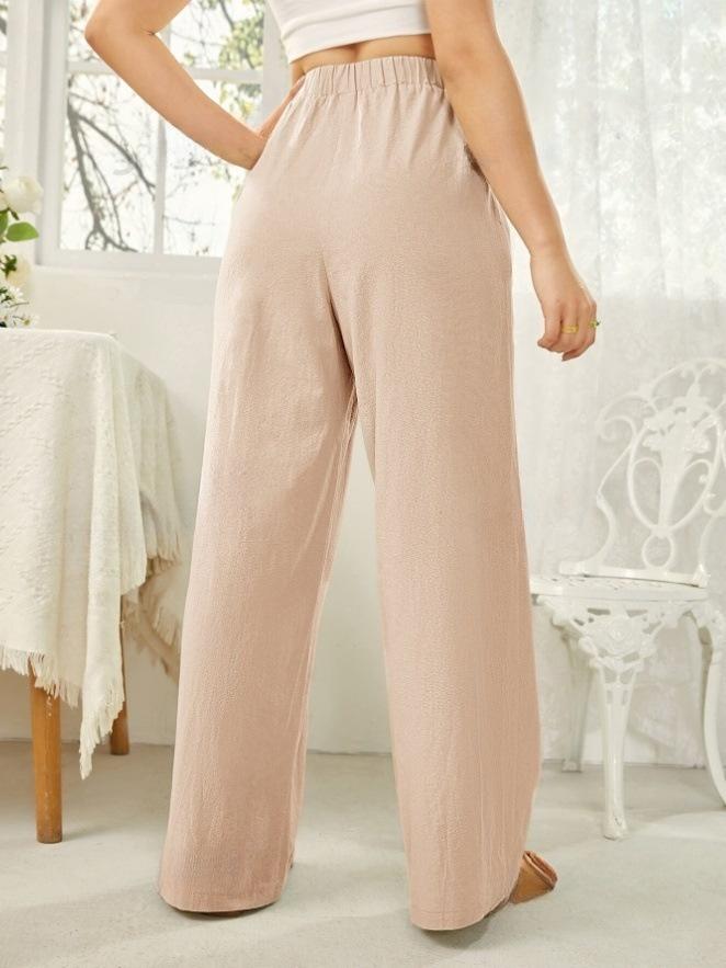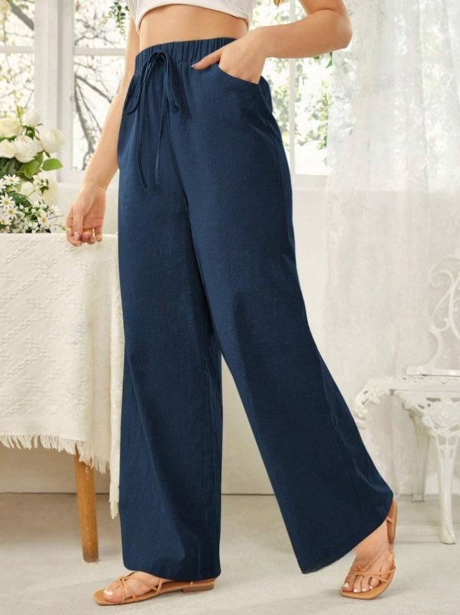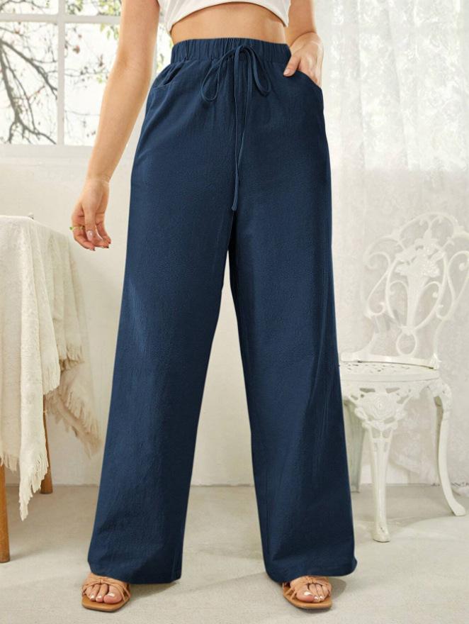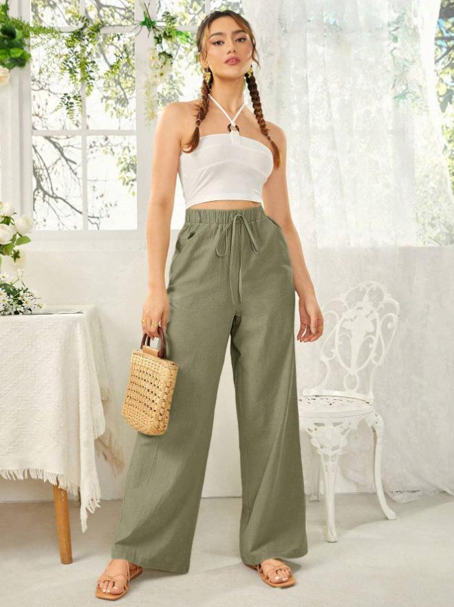 Pantalones rectos de cintura media para mujer, holgados, de color liso, con bolsillos, informales, para comercio exterior transfronterizo europeo y americano, 2024