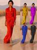 Otoño 2023 Nuevo Vestido Europeo y Americano de Encaje con Cordones de Cintura Alta y Abertura hasta el Piso de Manga Larga con Solapa Vestido Sexy