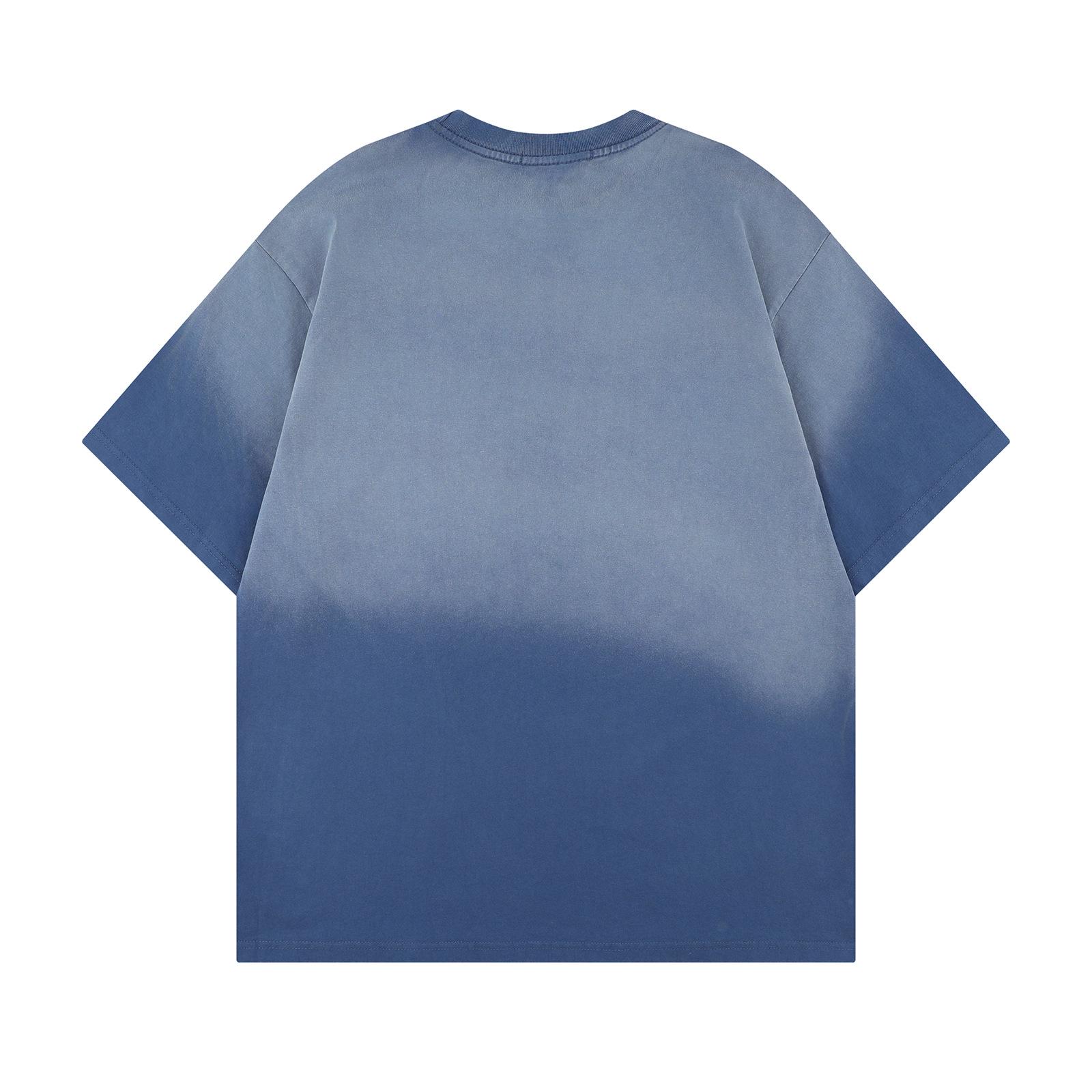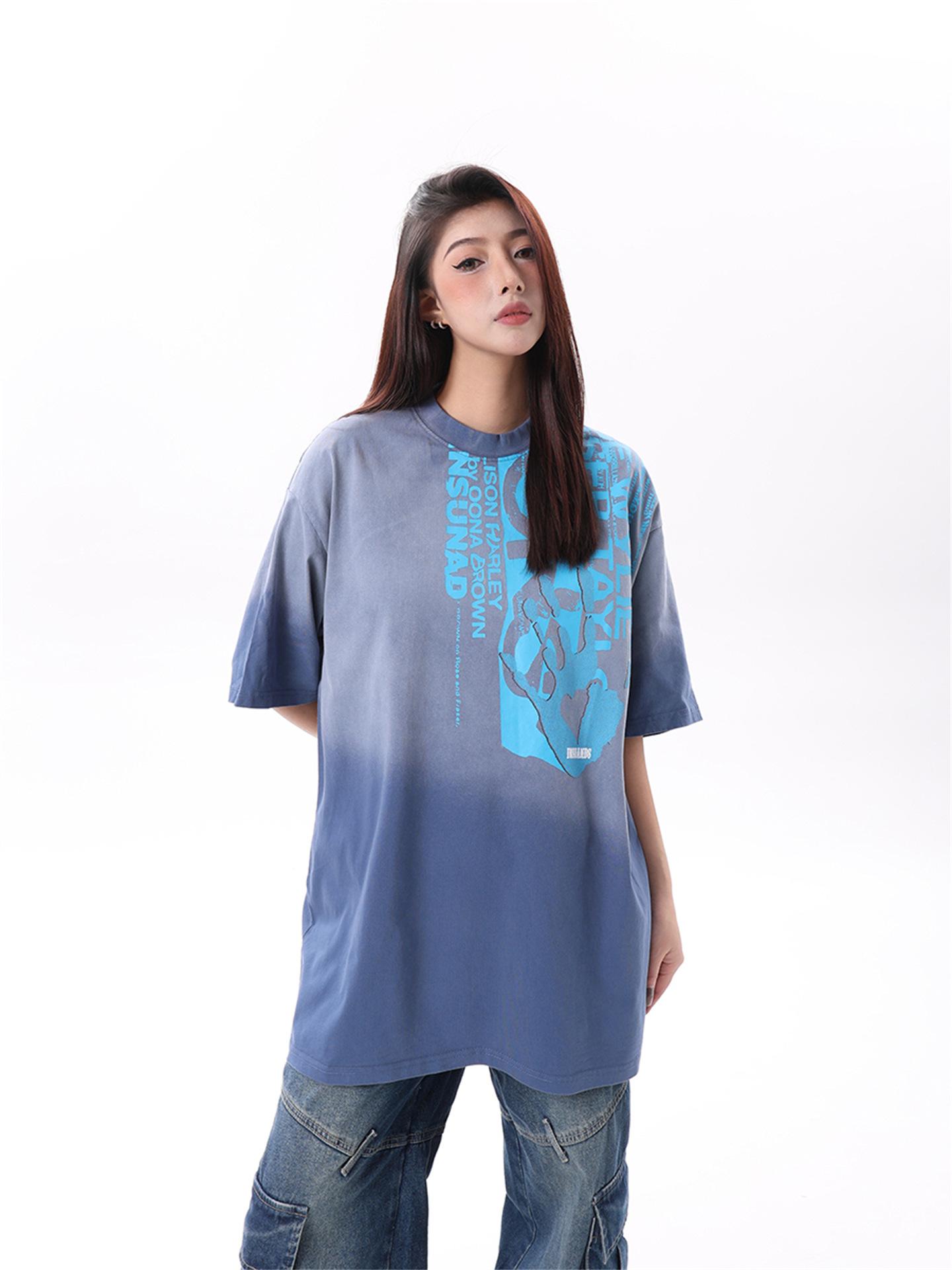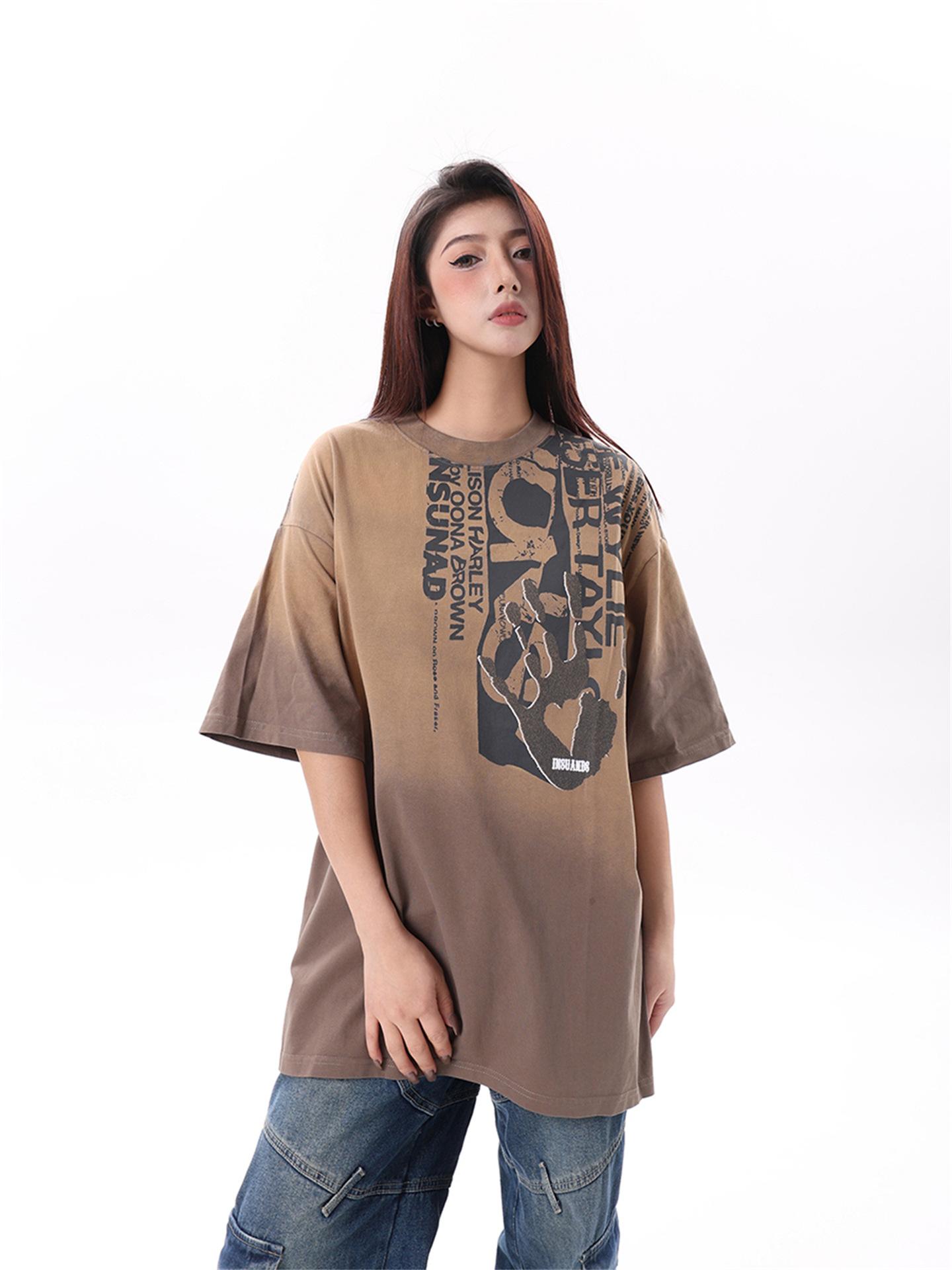 Camiseta de manga corta con estampado de letras degradadas retro de estilo americano para hombre y mujer, nueva camiseta de verano holgada informal que combina con todo para parejas