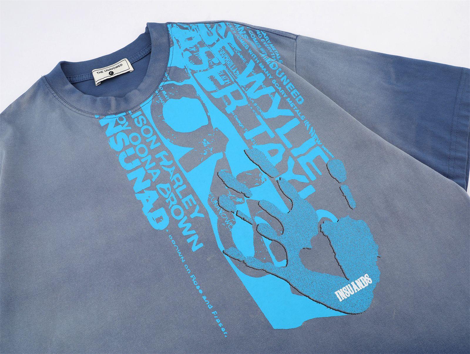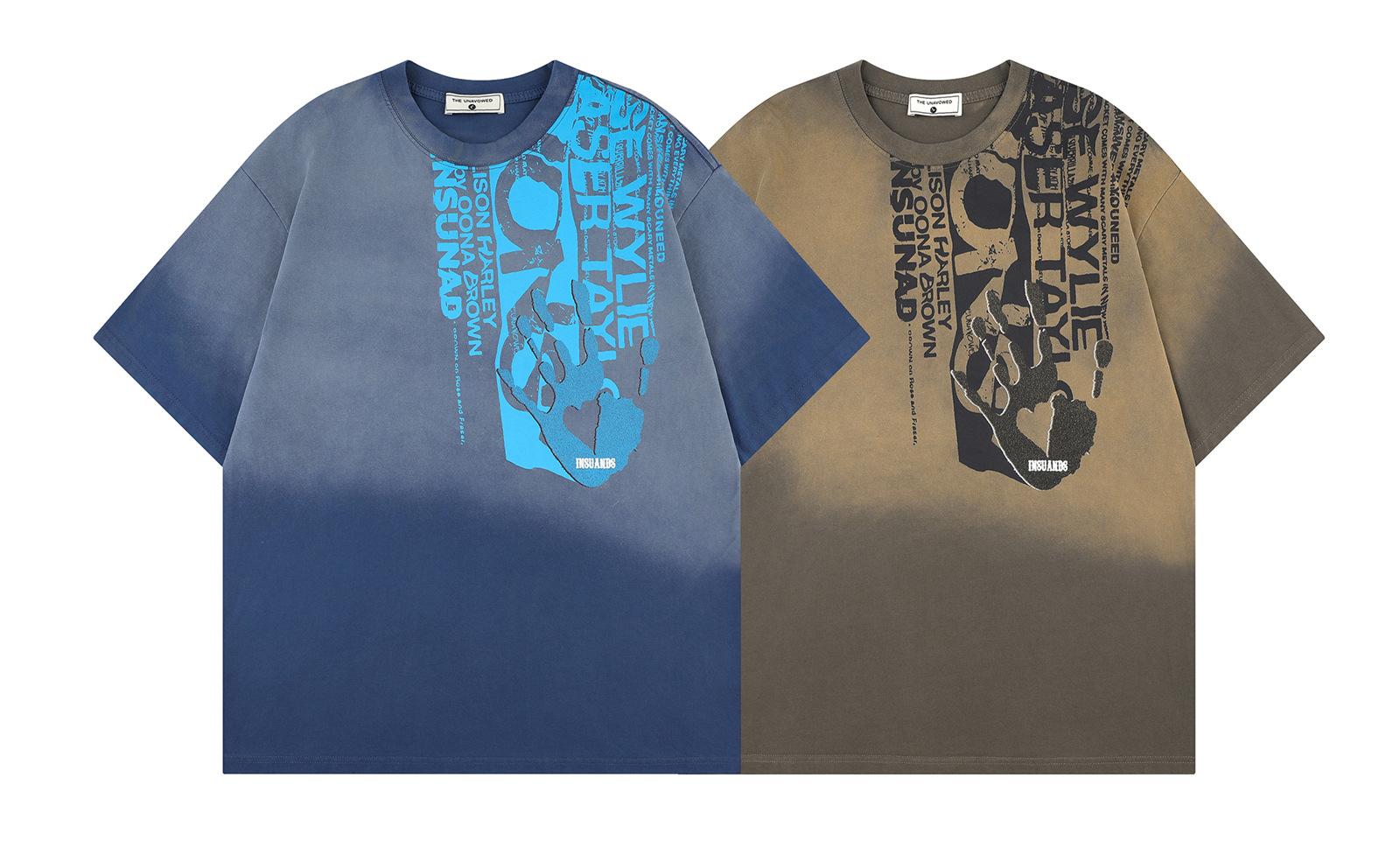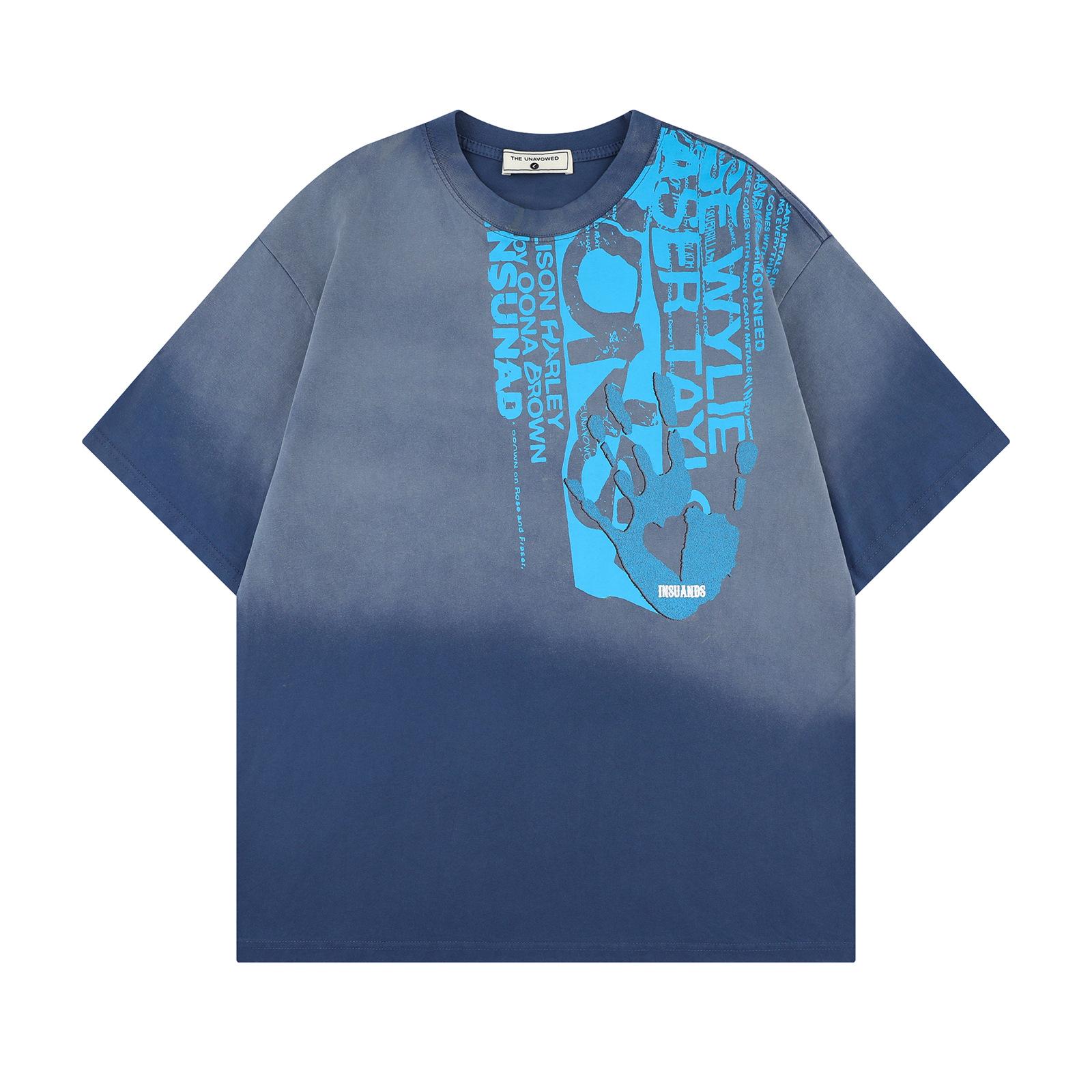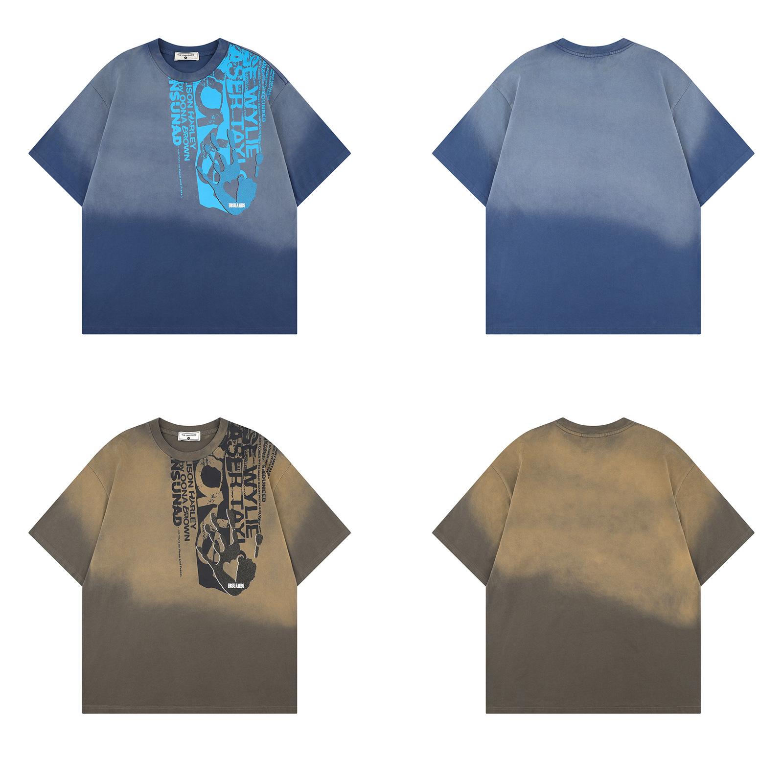Camiseta de manga corta con estampado de letras degradadas retro de estilo americano para hombre y mujer, nueva camiseta de verano holgada informal que combina con todo para parejas