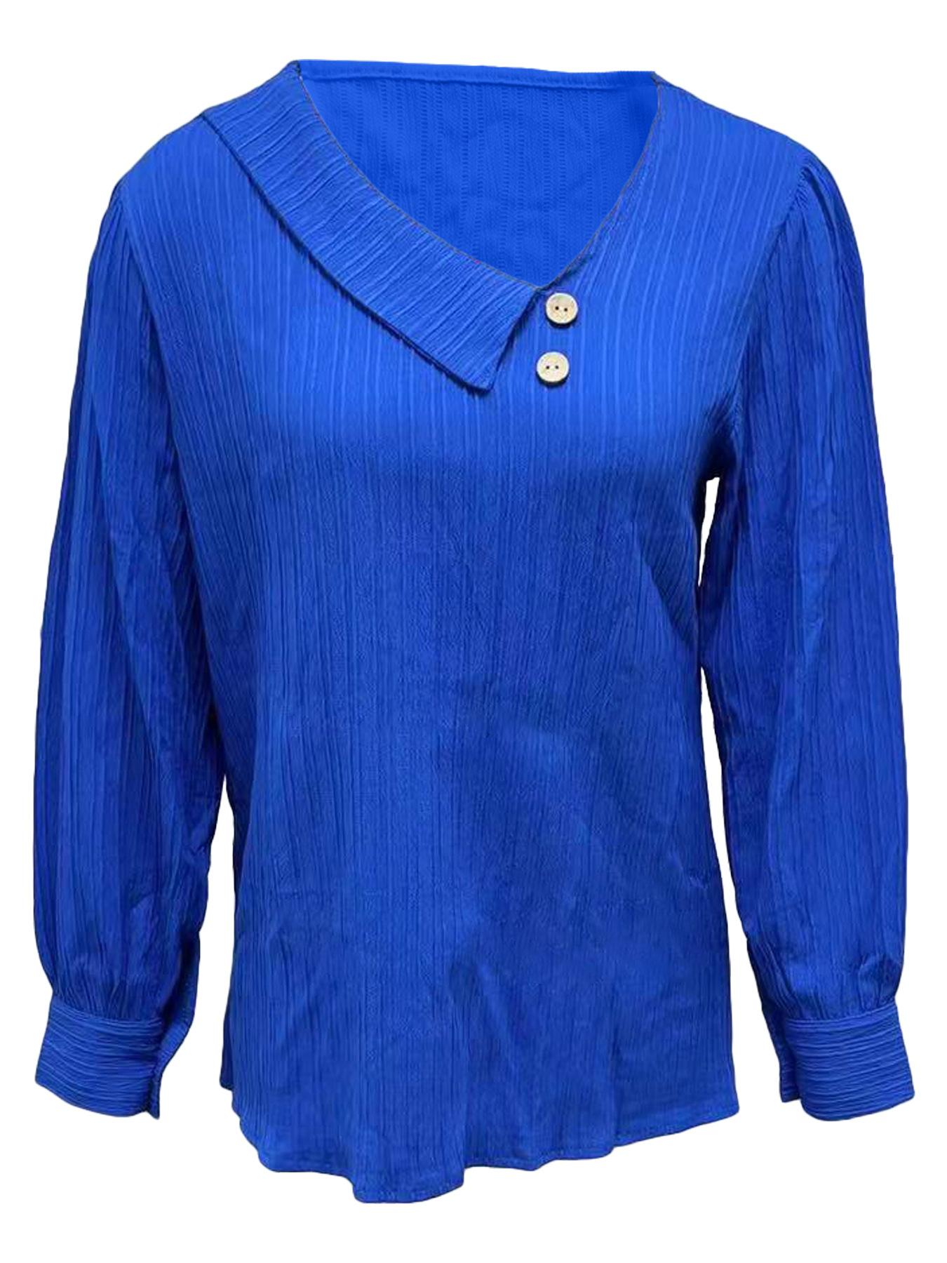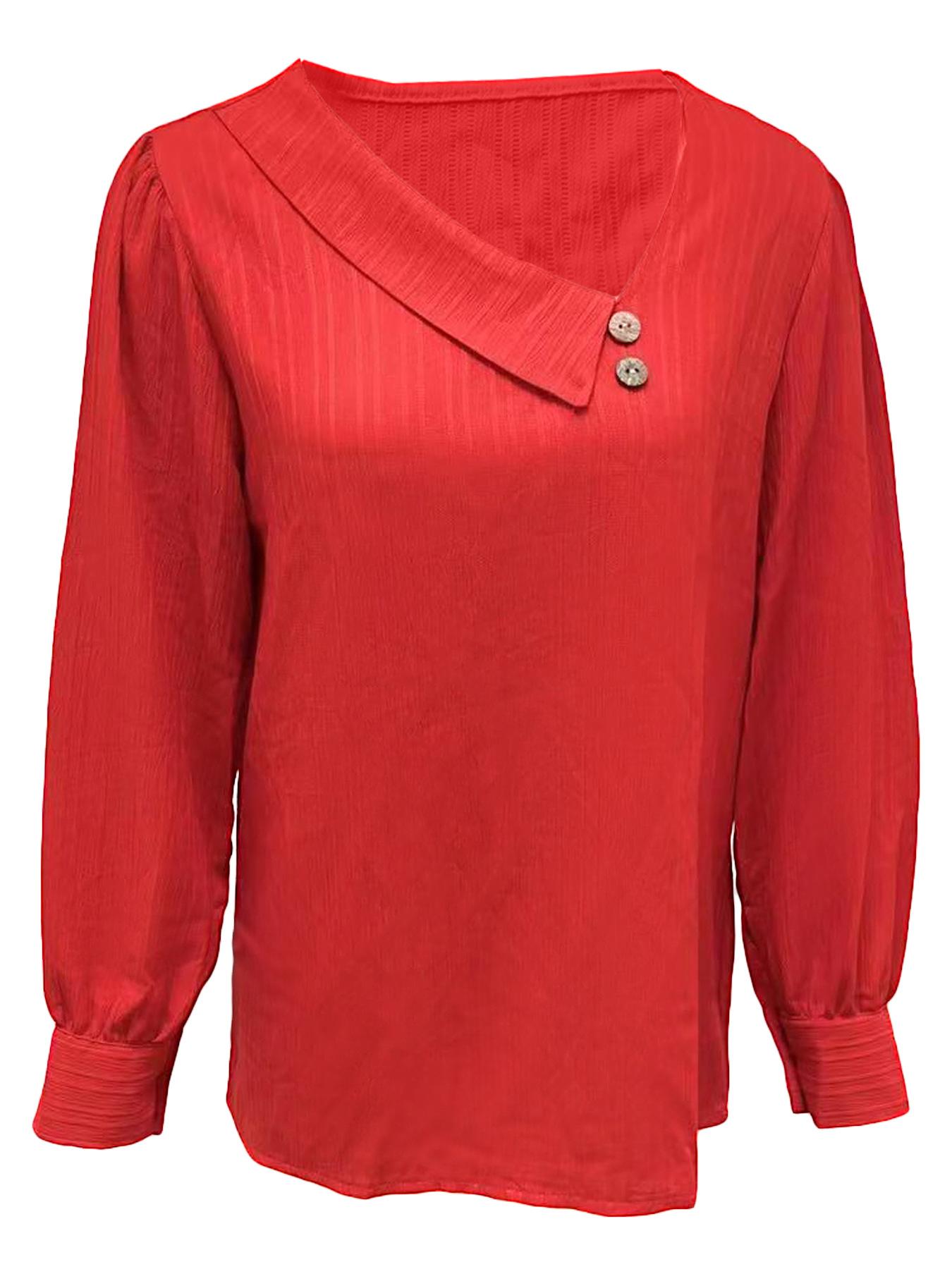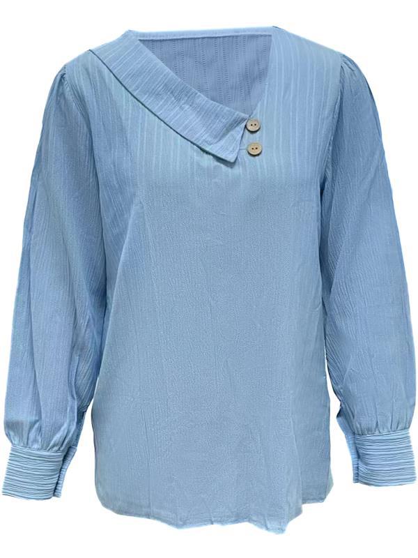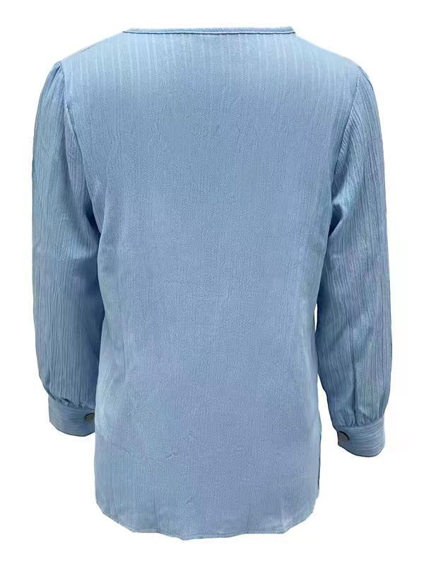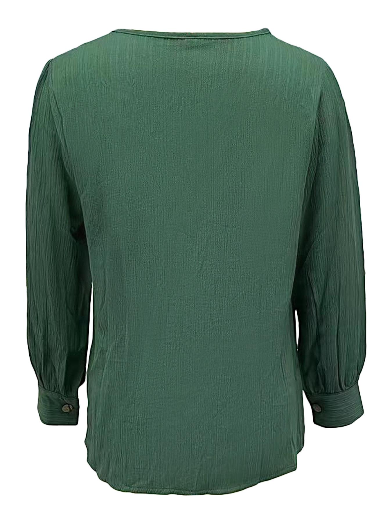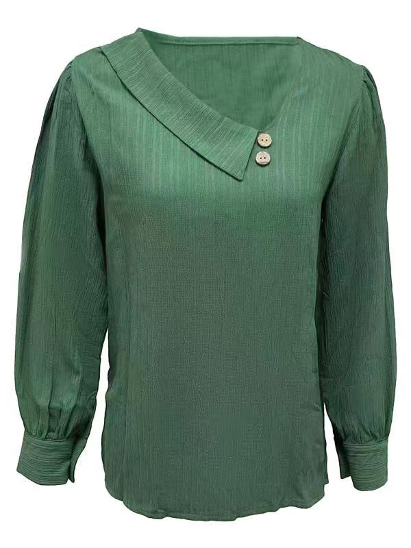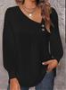 Camisa de manga larga de color liso con cuello en V y botones para mujer, estilo estación independiente, Amazon, verano 2024