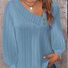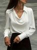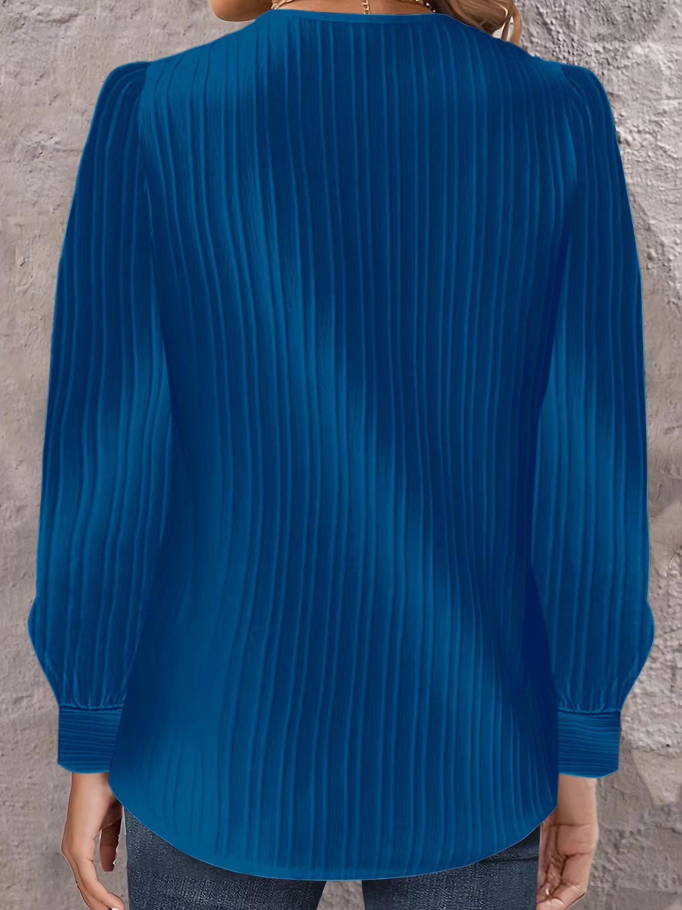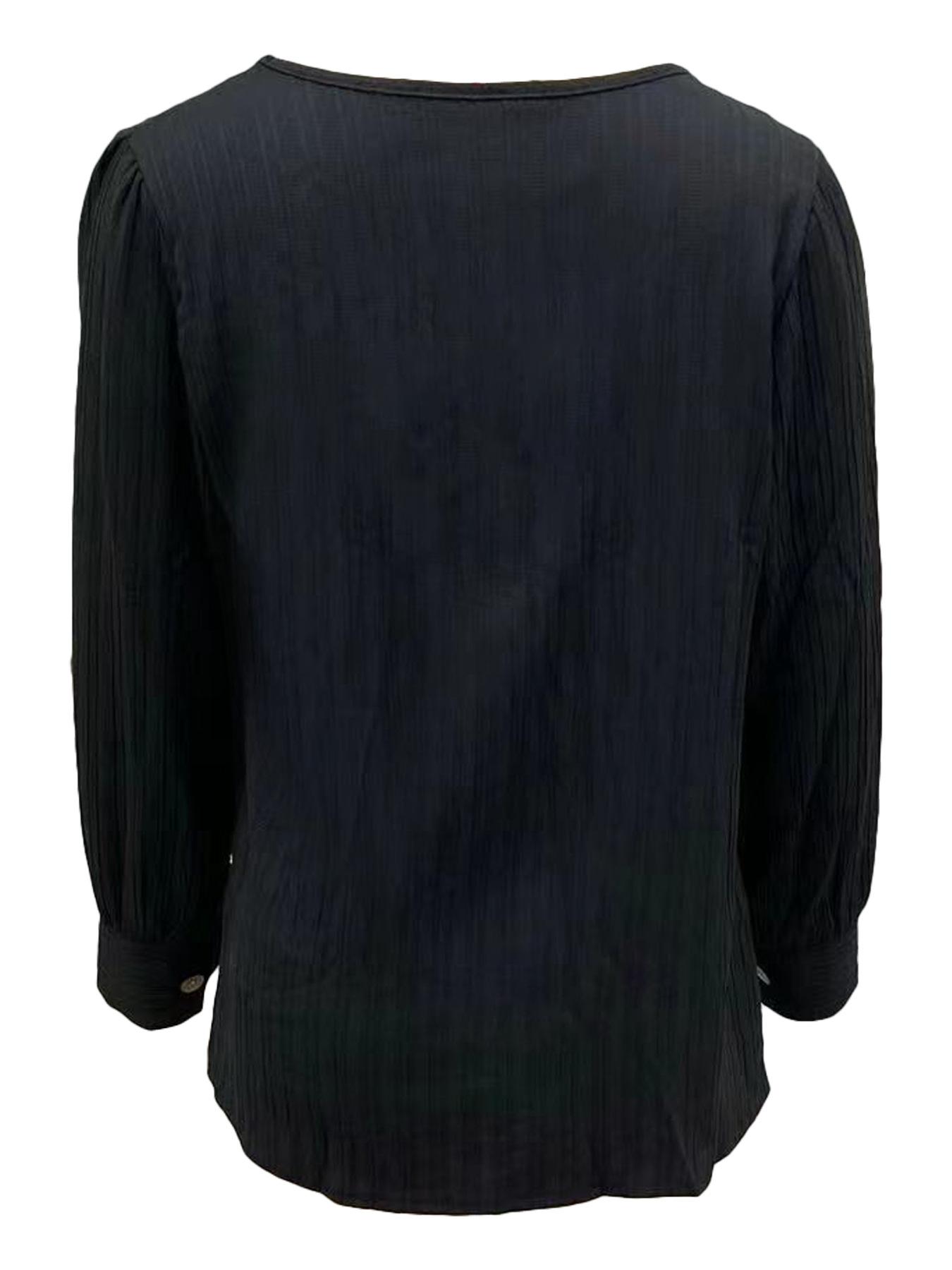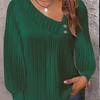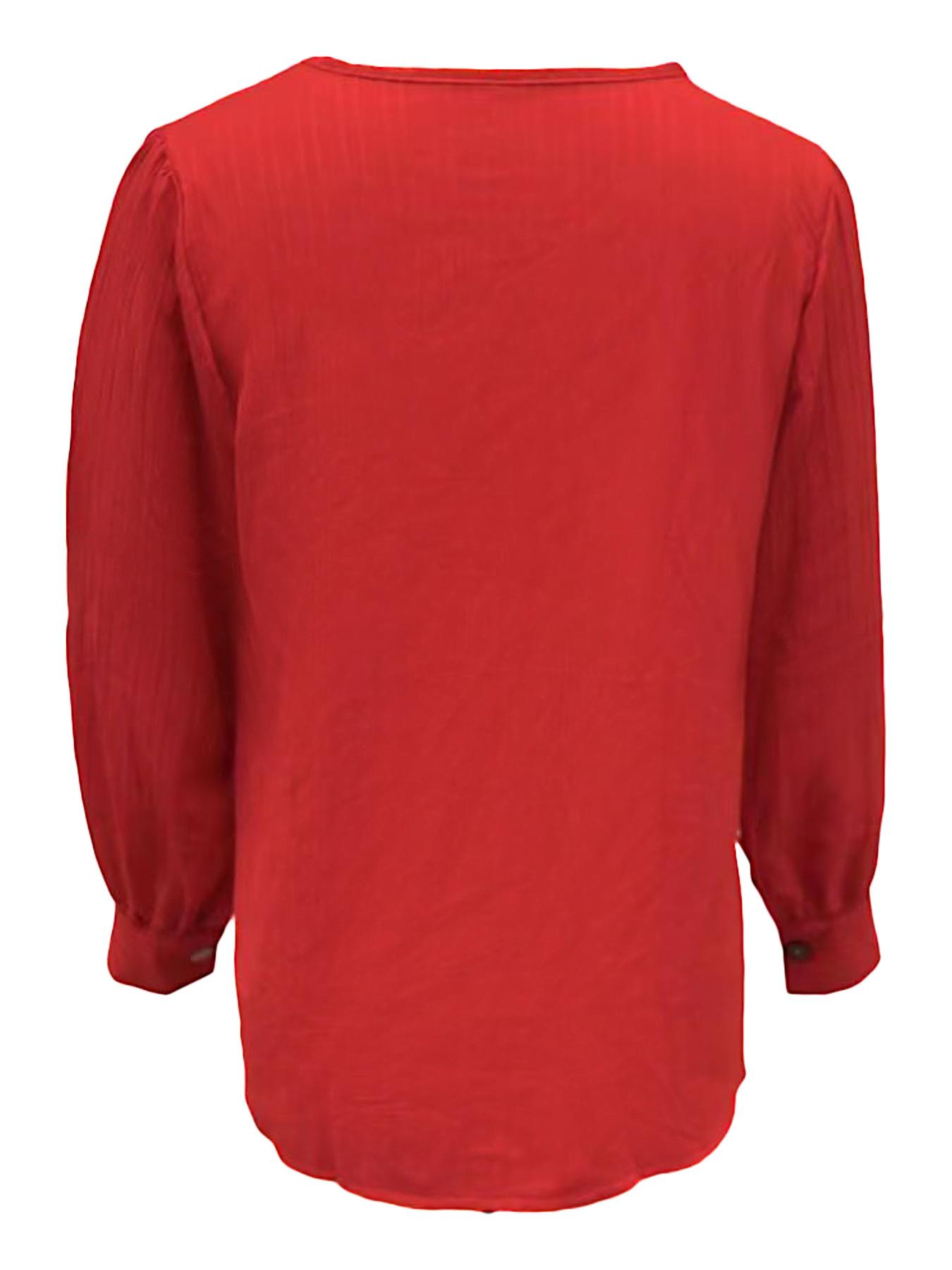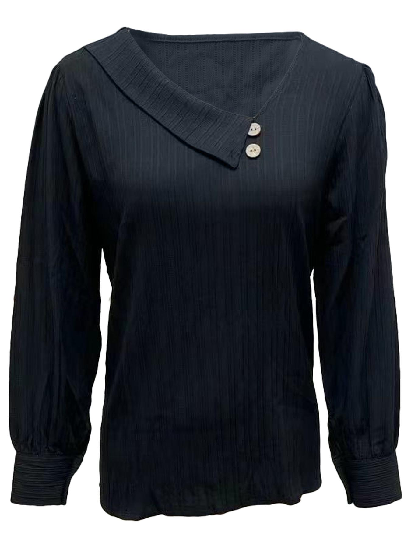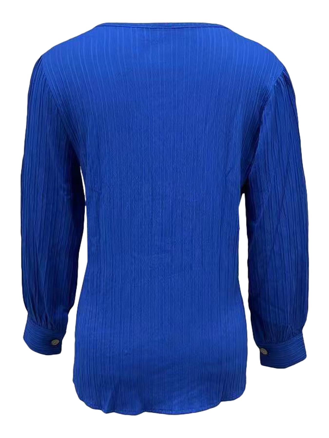 Camisa de manga larga de color liso con cuello en V y botones para mujer, estilo estación independiente, Amazon, verano 2024