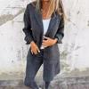 Cárdigan de otoño e invierno 2024 con solapa y bolsillo de color liso para mujer, largo y de un solo pecho, con exterior transfronterizo de Amazon