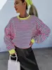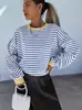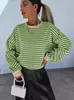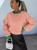Otoño e Invierno Nueva Moda Sudadera de Cuello Redondo a Rayas para Mujer 2025 Europea y Americana Casual Versátil Cálido Jersey de Manga Larga