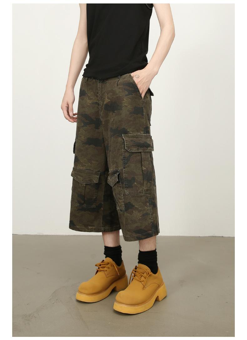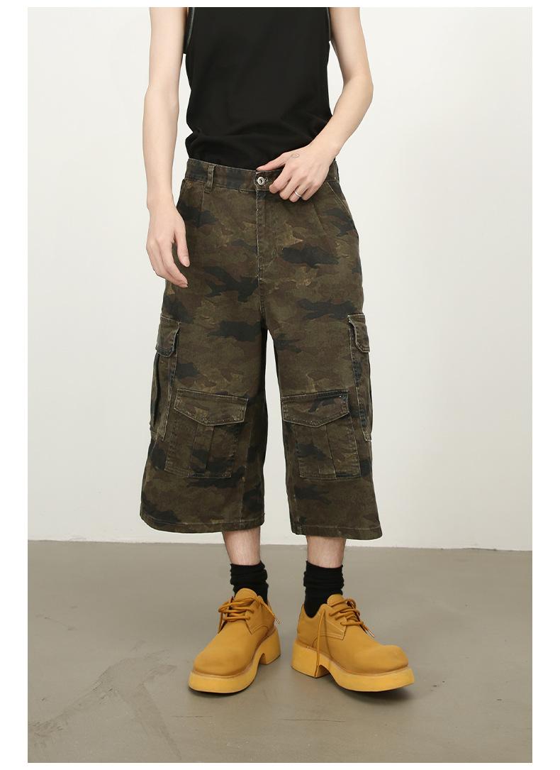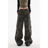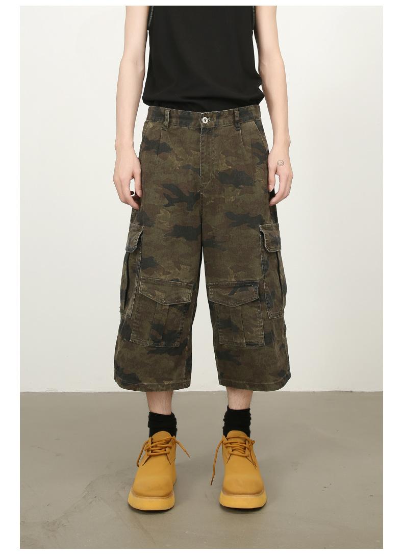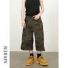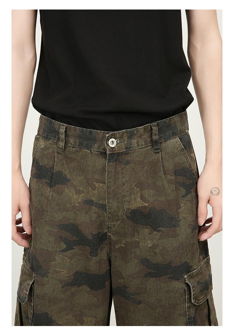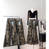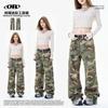 Nirben Denim | Pantalones cropped de pierna ancha camuflaje retro americano, overol microelástico multibolsillos, pantalones rectos Joker