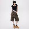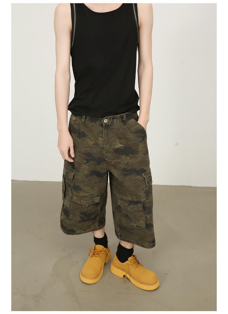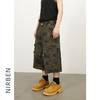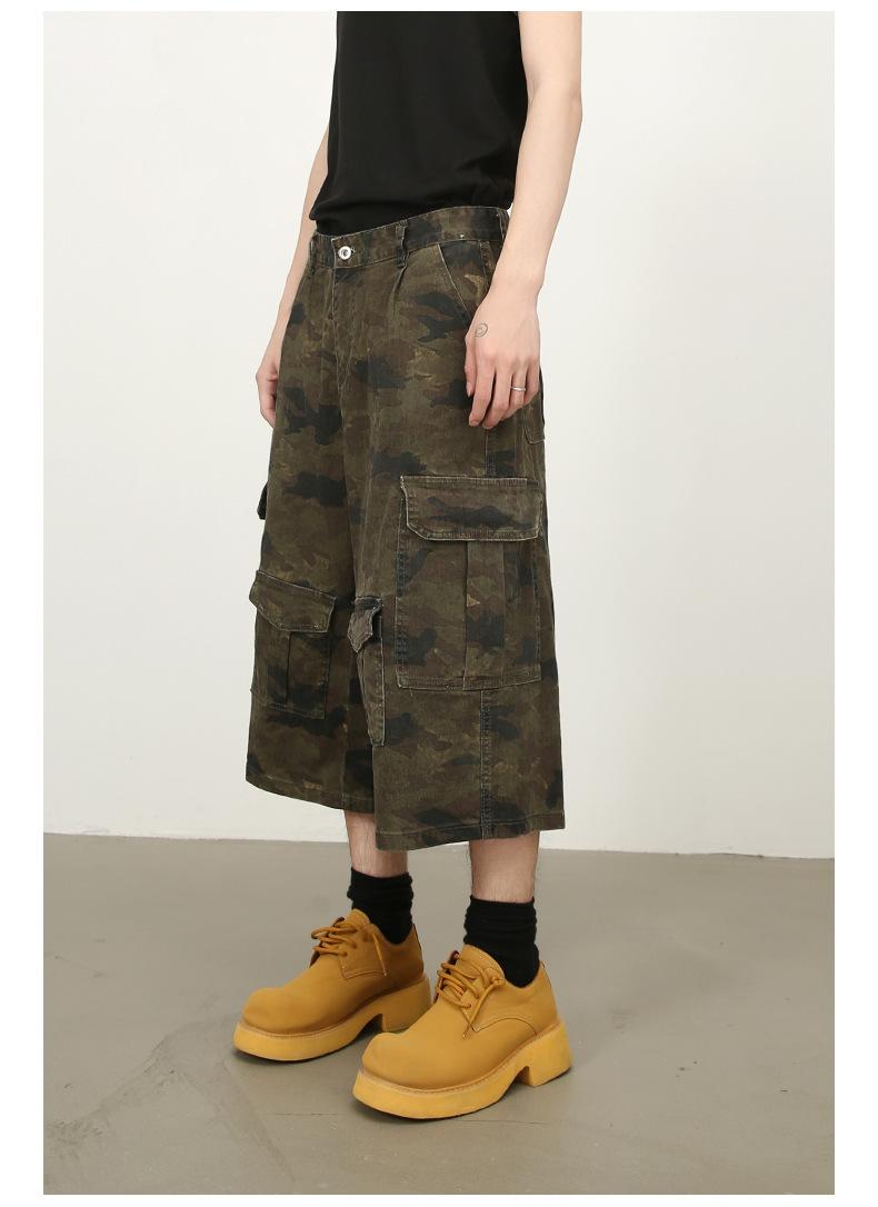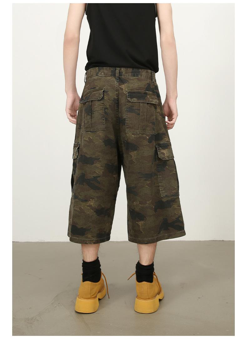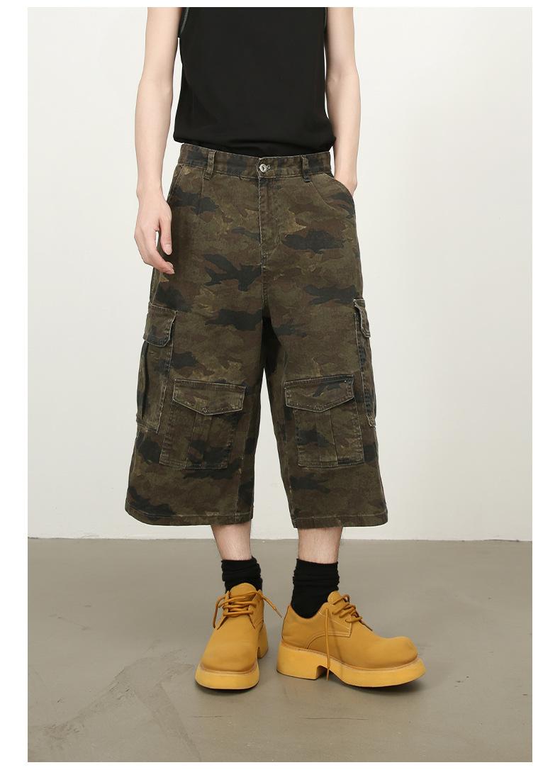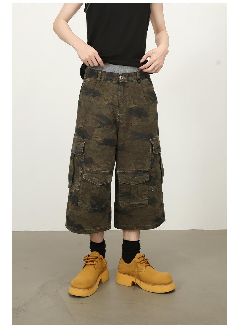 Nirben Denim | Pantalones cropped de pierna ancha camuflaje retro americano, overol microelástico multibolsillos, pantalones rectos Joker