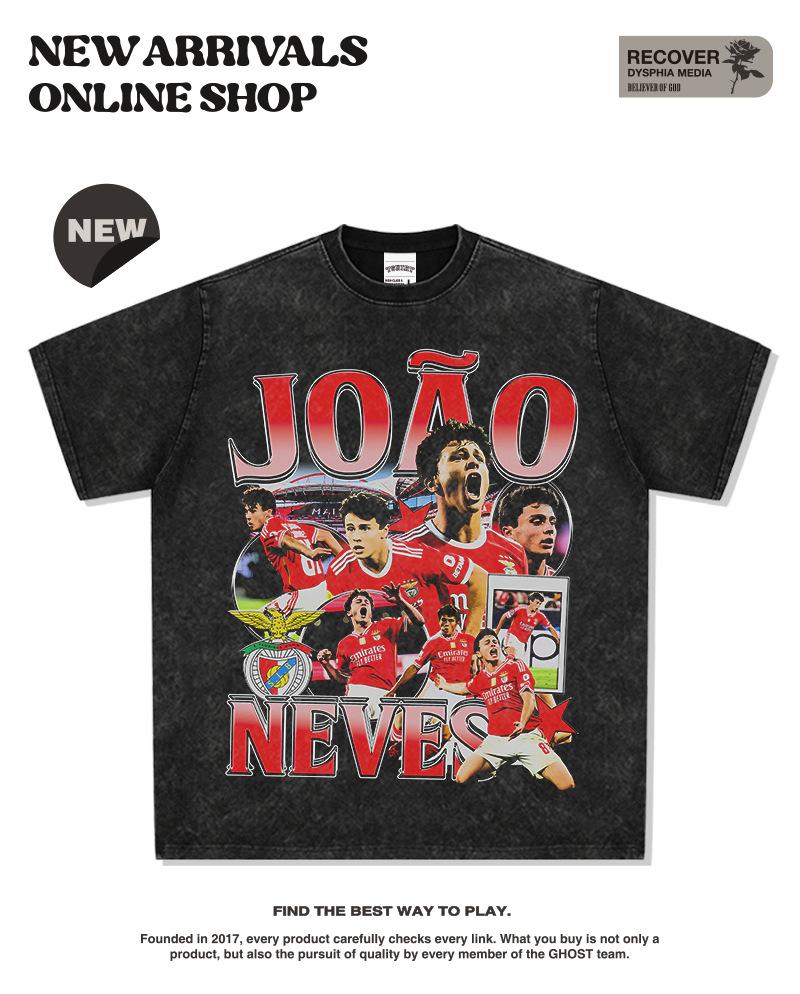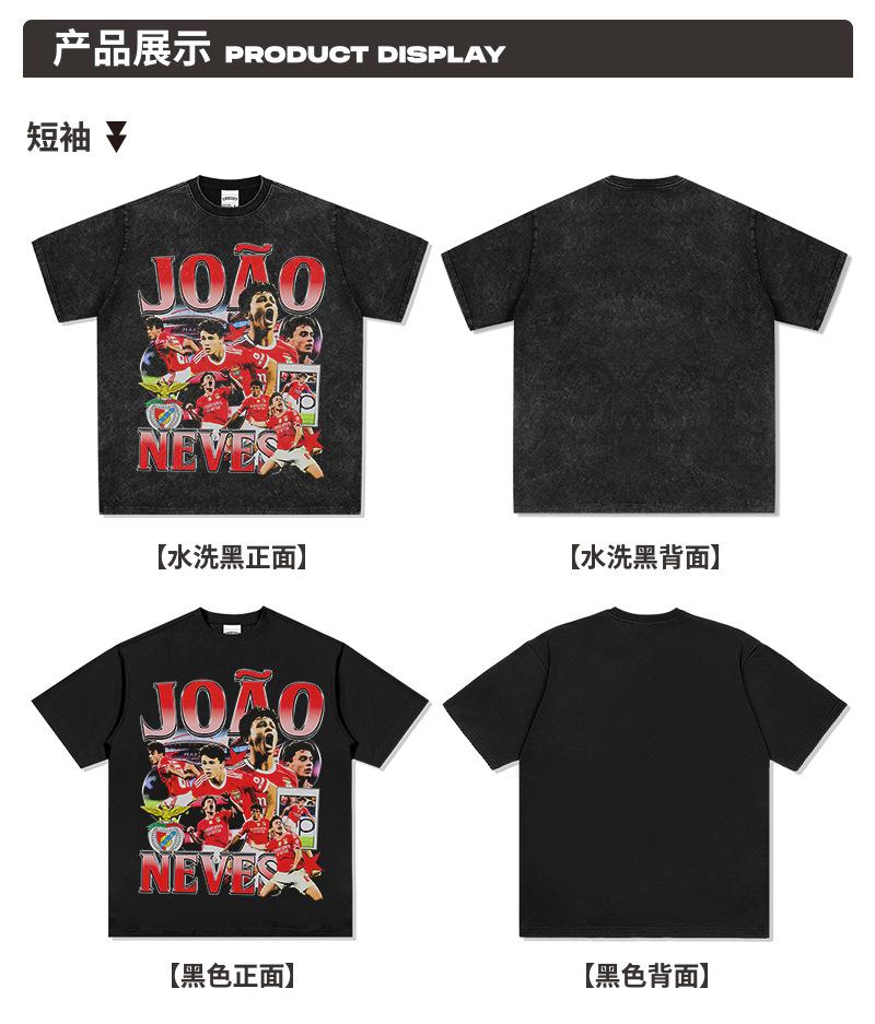 Camiseta de Manga Corta Estampada de Fútbol Transfronterizo Ruyon Neves Joao Neves Sudadera con Capucha Pesada de Cuello Redondo